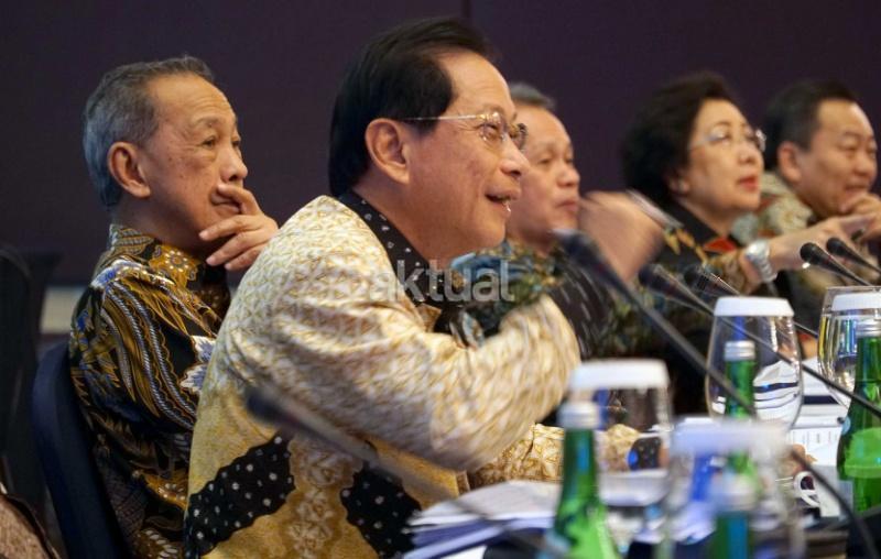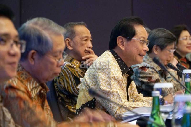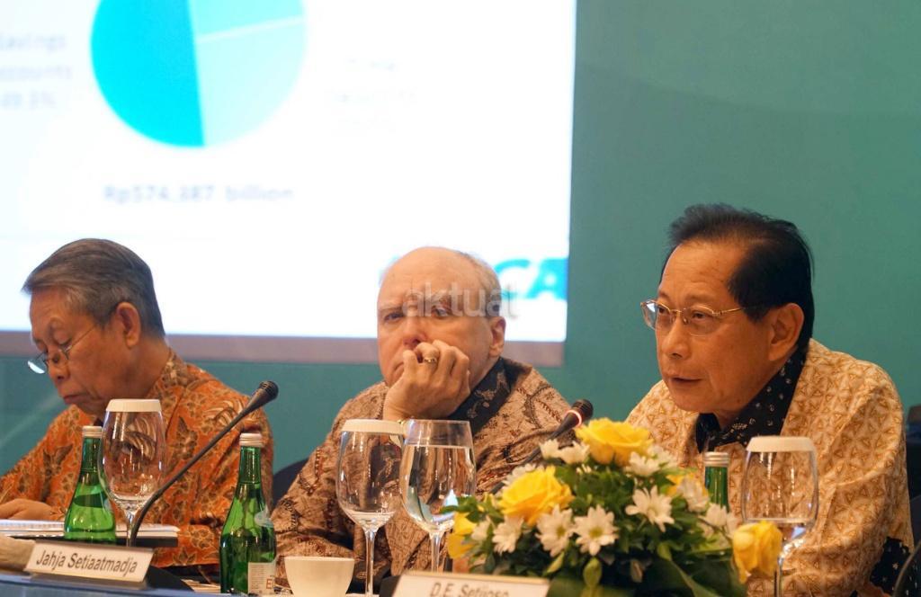 Presiden Direktur PT Bank Central Asia Tbk (BCA) Jahja Setiaatmadja (kiri) bersama jajaran Direksi dan Komisaris saat memberikan keterangan pers Hasil Kinerja Sembilan Bulan Pertama 2017 BCA di Jakarta, Kamis (26/10). Kinerja keuangan BCA sepanjang sembilan bulan pertama tahun 2017 mengalami peningkatan laba bersih sebesar 11,3 persen menjadi Rp16,8 triliun, dari Rp15,1 triliun pada periode yang sama tahun sebelumnya. AKTUAL/Eko S Hilman