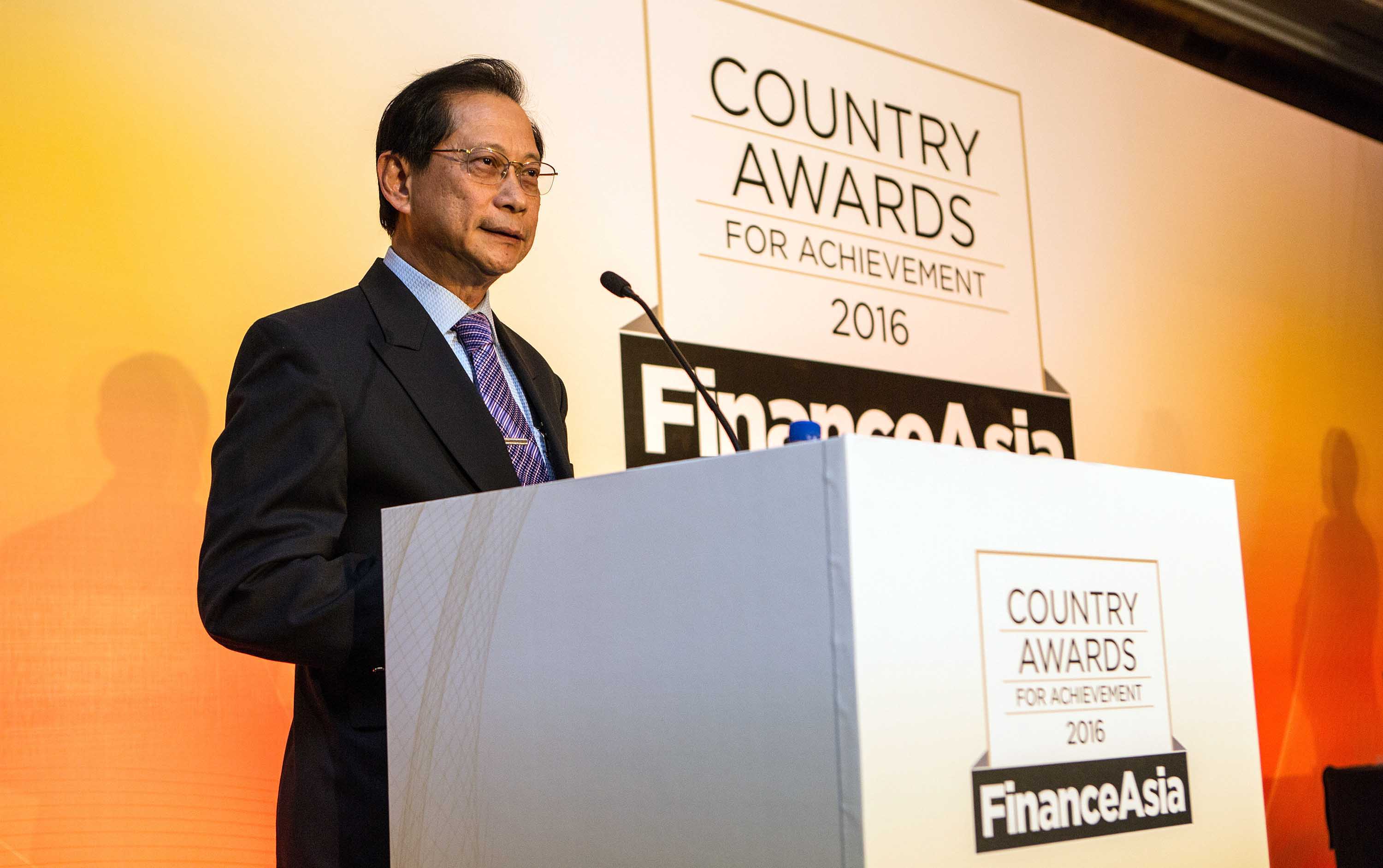 Presiden Direktur PT Bank Cantral Asia Tbk (BCA),Jahja Setiaatmadja(kiri) saat memberikan sambutan seusai menerima penghargaan Best Asian Bank dalam FinanceAsia Country Awards for Achievement 2016 di Singapura, Kamis (1/9).Selain predikat tersebut, BCA juga berhasil meraih penghargaan sebagai Best Bank in Indonesia.Penghargaan ini diberikan kepada perusahaan di bidang perbankan yang berhasil mencapai kinerja perusahaan terbaik di dalam negeri maupun tingkat Asia.Pemenang pada penghargaan ini dinilai berdasarkan pencapaian kinerja perusahaan yang berhasil menjawab tantangan dari kondisi perekonomian perbankan saat ini.