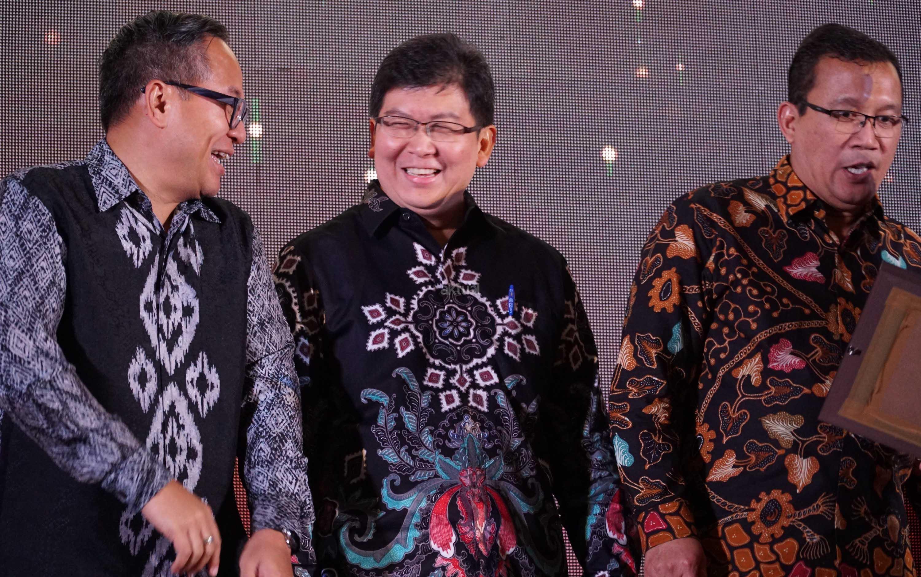 Senior Executive Vice President Finance, Corporate Planning and Corporate Secretariat BCA Raymon Yonarto (tengah) usai menerima penghargaan Country Contributor dalam ajang Tempo Country Contribution Award 2018 di Jakarta, Senin (6/8) malam. Penghargaan ini diberikan sebagai apresiasi atas kerja keras dan upaya perusahaan yang berhasil menerapkan mekanisme transparansi dan akuntabilitas termasuk perihal kewajiban perpajakan. AKTUAL/Eko S Hilman