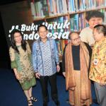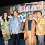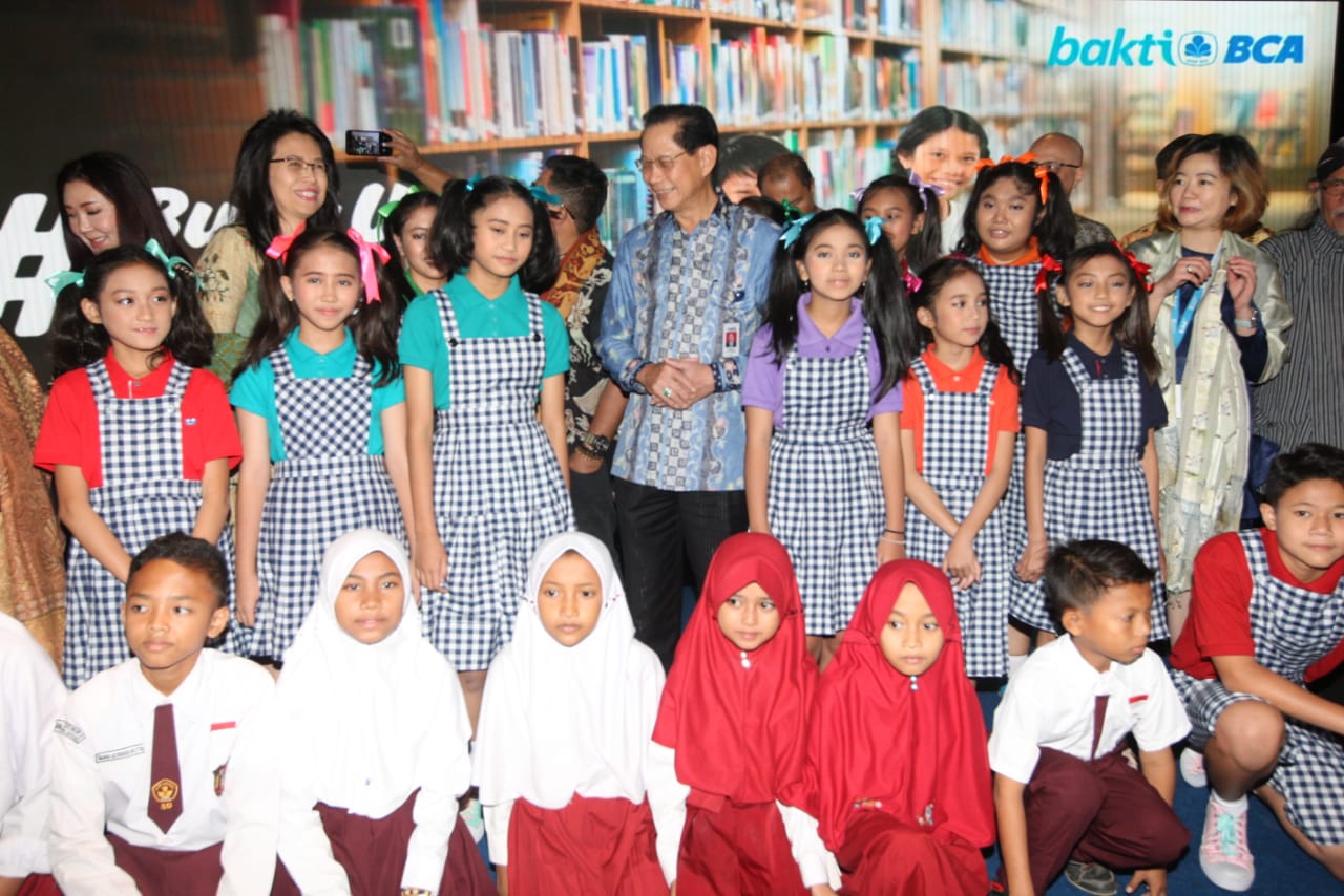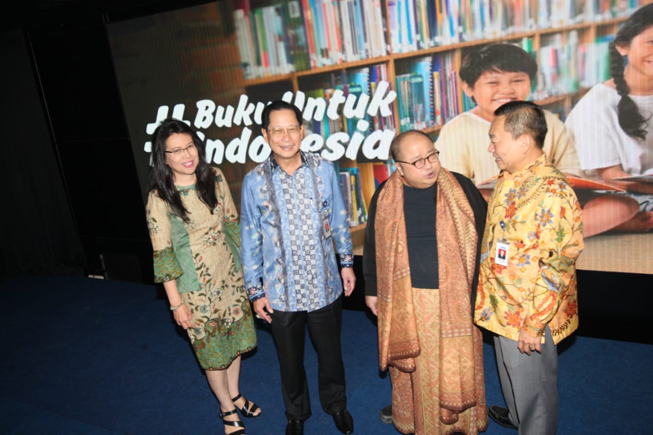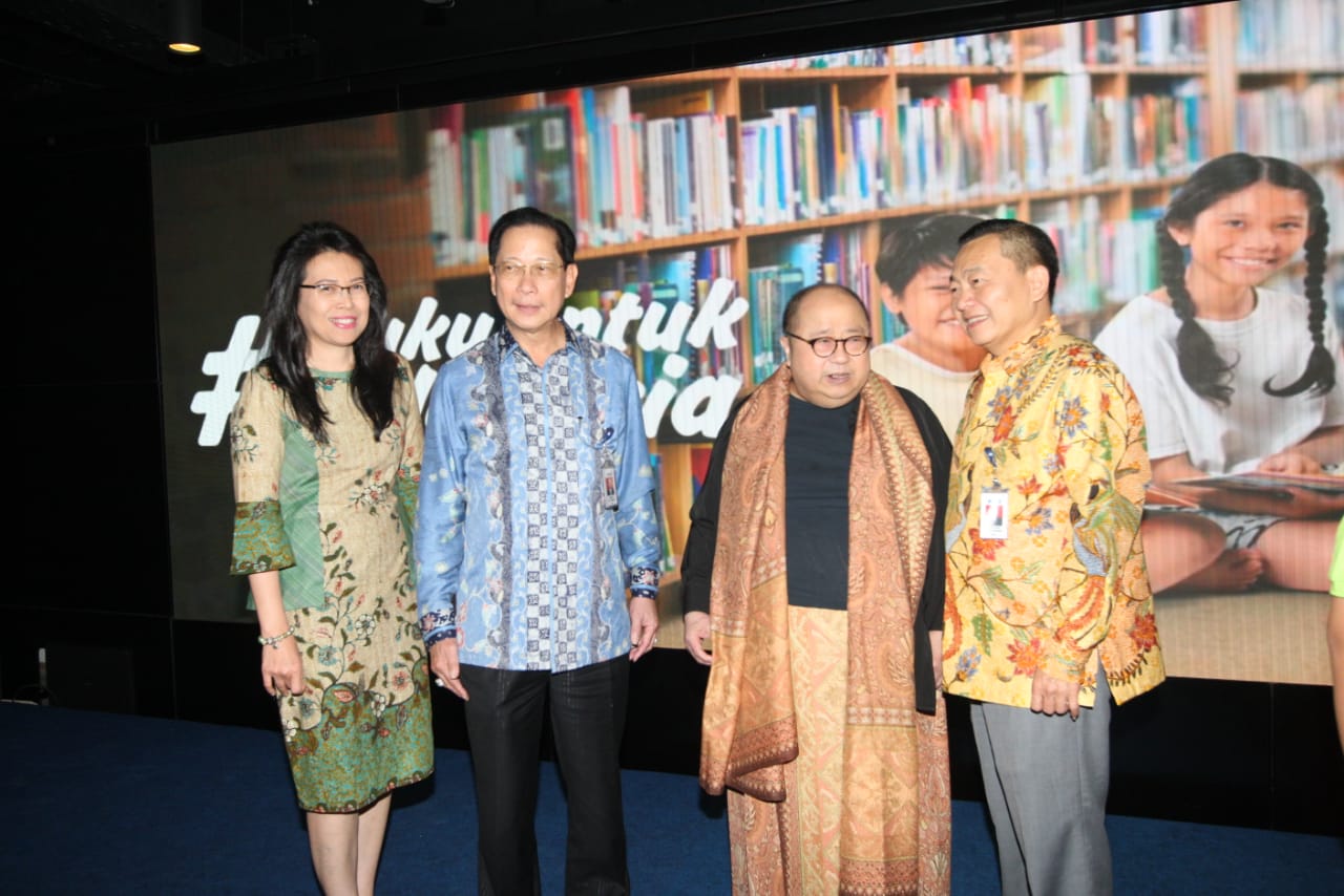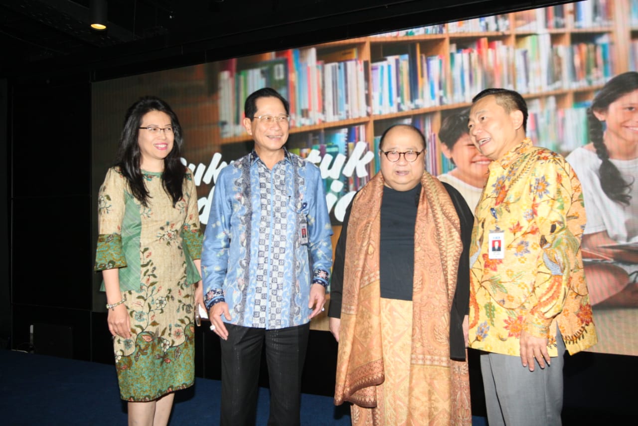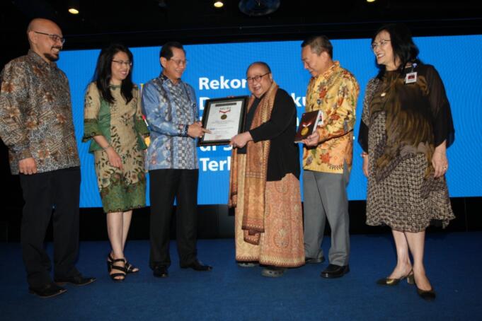 Presiden Direktur BCA Jahja Setiaatmadja didampingi Direktur BCA Santoso, Executive Vice President Corporate Social Responsibility BCA Inge Setiawati, Executive Vice President Transaction Banking Business Development BCA Mira Wibowo, Duta Baca Indonesia periode 2011 – 2015 Andy F. Noya menerima Rekor Dunia Donasi Kepada Anak di Sekolah Dasar Negeri Terbanyak untuk gerakan #BukuUntukIndonesia yang diinisiasi oleh BCA yang diberikan langsung oleh Ketua Museum Rekor Indonesia (MURI) Jaya Suprana. BCA secara resmi menggelar seremoni penutupan gerakan berbagi #BukuUntukIndonesia yang berhasil mengumpulkan donasi sebesar Rp2,452,287,951 dengan nilai total dana yang disalurkan Rp2,553,000,000 yang telah dikonversi menjadi 43.734 buku dan disalurkan ke 111 sekolah di 60 area di Indonesia. AKTUAL/Dok BCA