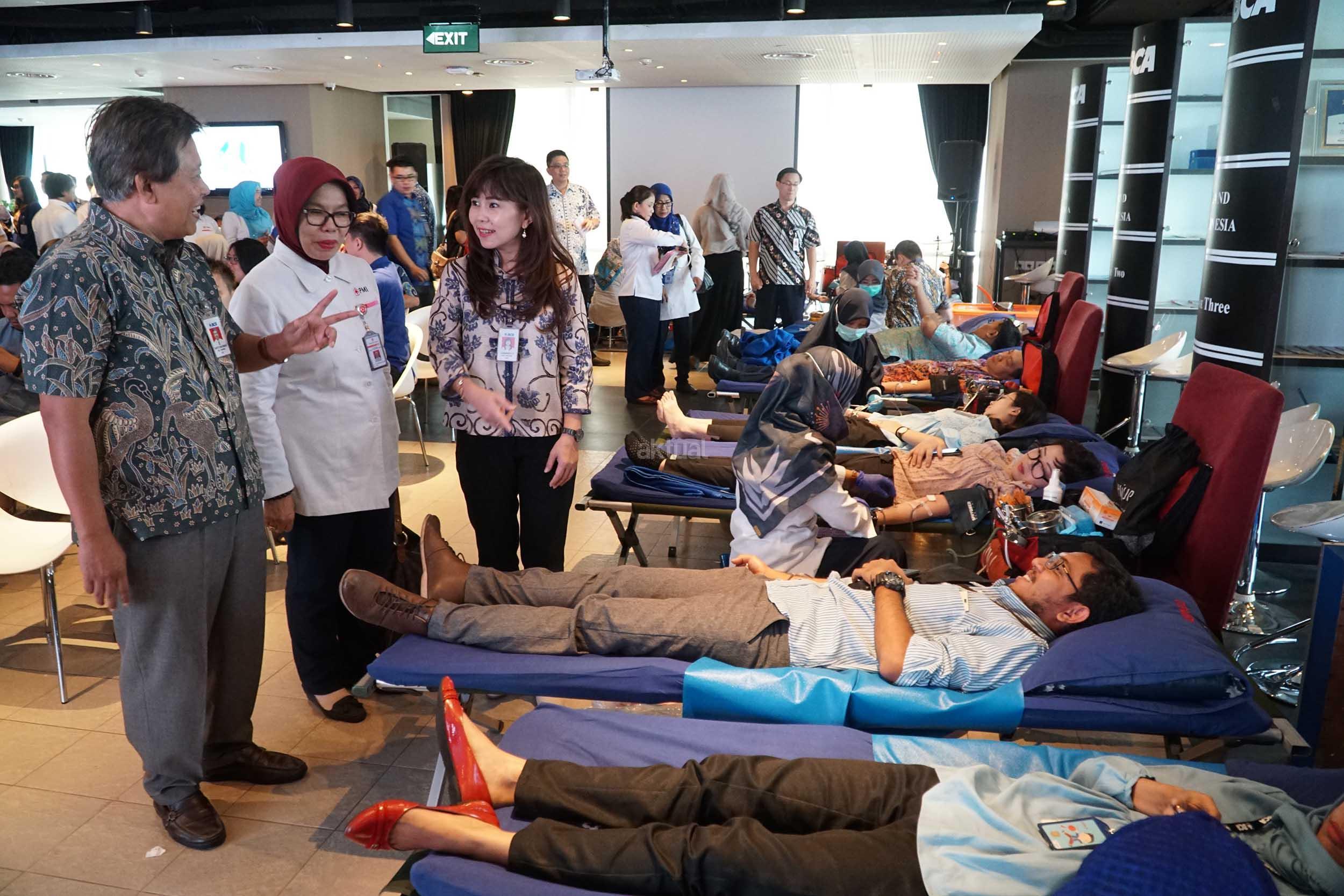 (dari kiri ke kanan) Senior Vice President Corporate Social Responsibility (CSR) BCA Sapto Rachmadi, Kepala UTD PMI DKI Jakarta dr. Salimar Salim,Direktur BCA, Lianawati Suwono MARS berbincang dengan peserta donor saat melakukan peninjauan dan penyerahan 1 unit mobil operasional untuk PMI, di Jakarta, Rabu (21/2). BCA menyerahkan 1 unit mobil operasional untuk PMI tepat di Hari Ulang Tahun yang ke-61 hari ini serta untuk memfasilitasi kegiatan donor darah setiap 3 bulan sekali. AKTUAL/Eko S Hilman