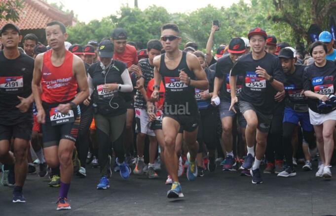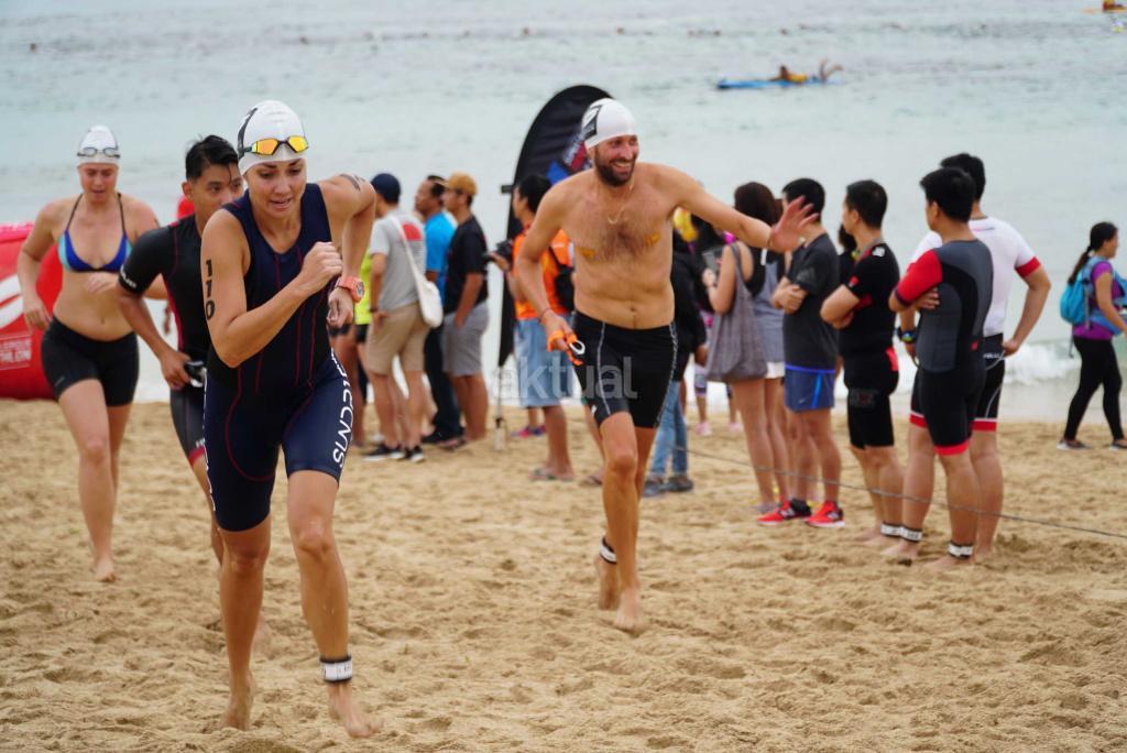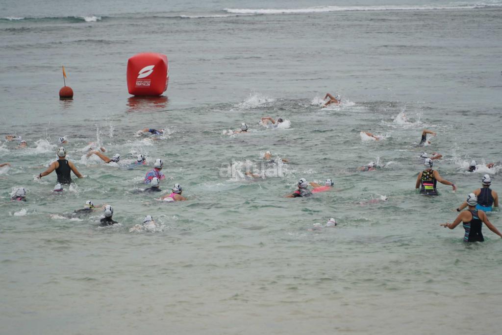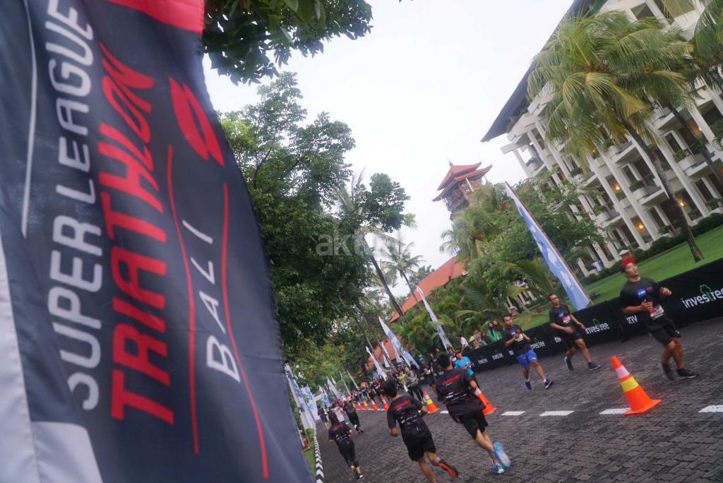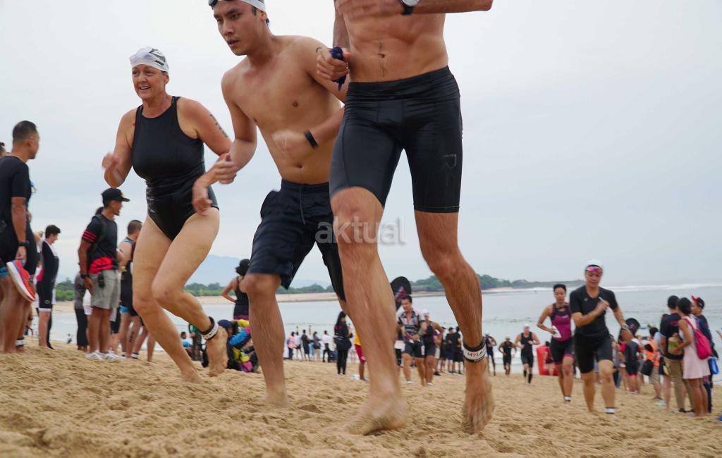Sejumlah peserta saat mengikuti salah satu rangkaian gelaran Super League Triathlon 2019 di Nusa Dua, Bali, Sabtu (23/3). AKTUAL/STR-Eko S Hilman