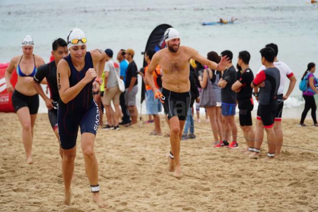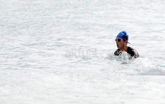 Peserta saat mengikuti salah satu rangkaian gelaran Super League Triathlon 2019 di Nusa Dua, Bali, Sabtu (23/3). AKTUAL/STR-Eko S Hilman