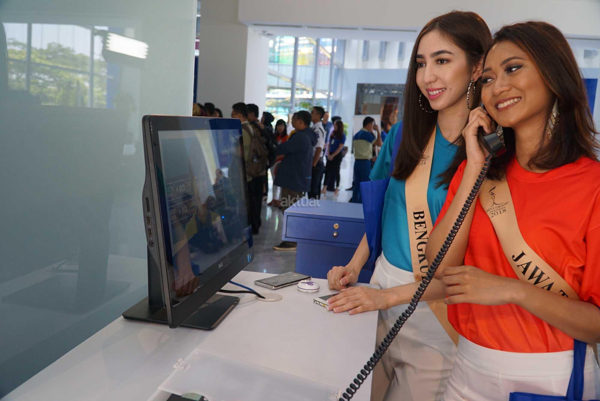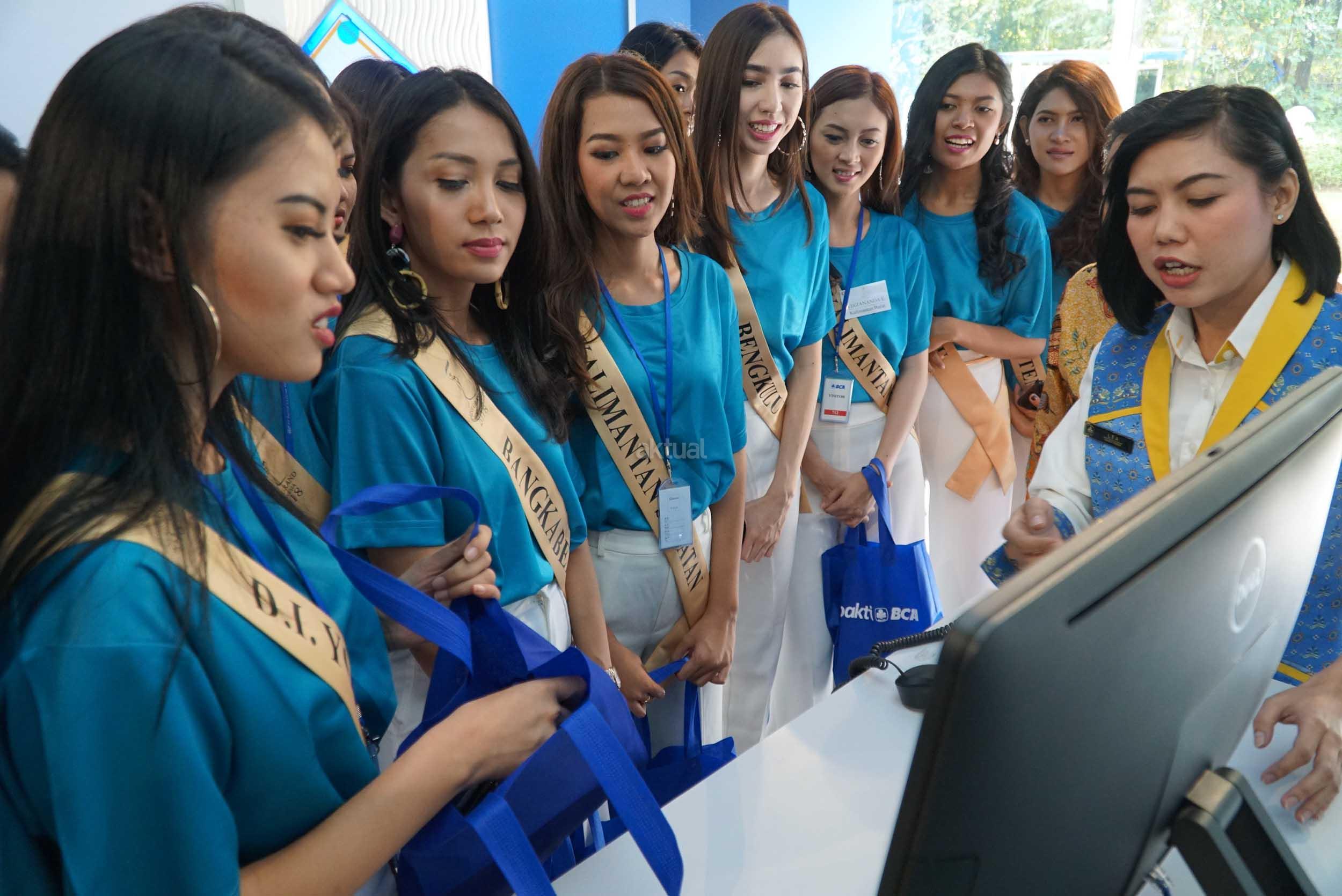 Para finalis Miss Grand Indonesia 2018 melakukan experience di Video Banking BCA di sela acara Kunjungan Finalis Miss Grand Indonesia ke BCA Learning Institute (BLI) di Bogor, Senin (16/07). Dalam kunjungan ini, ke-30 finalis Miss Grand Indonesia diajak lebih dalam mengenal dunia perbankan melalui sejarah BCA dan teknologi yang dikembangkan. AKTUAL/Eko S Hilman