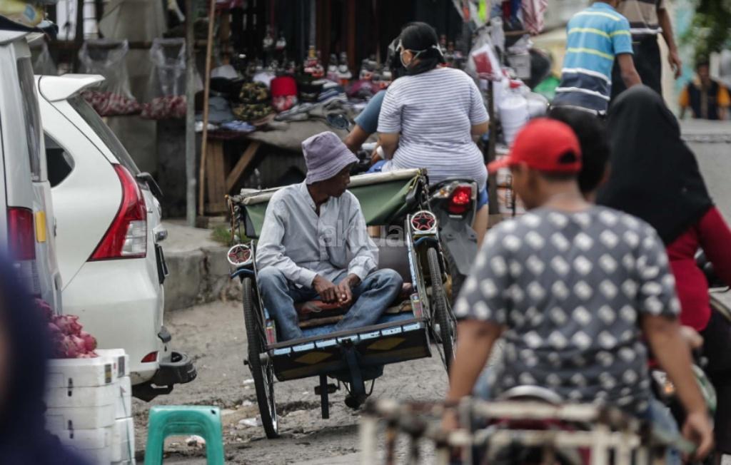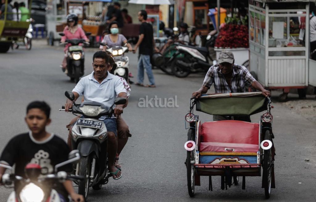 Penarik becak membawa penumpang di kawasan Warakas, Jakarta Utara, Rabu (17/1/2018). Gubernur DKI Jakarta, Anies Baswedan menghidupkan kembali transportasi becak yang sebelumnya telah dilarang sejak 2007. Becak akan diberi rute khusus seperti di perkampungan dan kawasan pasar. Penarik becak biasanya mulai mengais rezeki sejak pagi hingga sore dengan tarif berkisar Rp 10 ribu-Rp15 ribu. AKTUAL/Tino Oktaviano