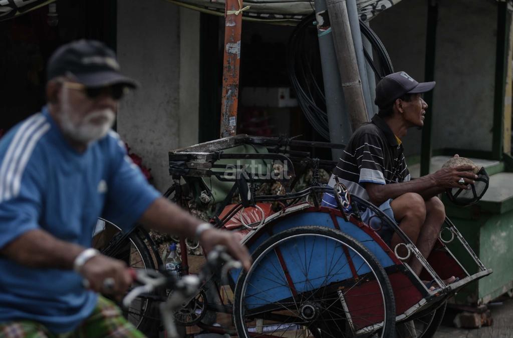 Penarik becak menunggu penumpang si kawasan Warakas, Jakarta Utara, Rabu (17/1/2018). Gubernur DKI Jakarta, Anies Baswedan menghidupkan kembali transportasi becak yang sebelumnya telah dilarang sejak 2007. Becak akan diberi rute khusus seperti di perkampungan dan kawasan pasar. Penarik becak biasanya mulai mengais rezeki sejak pagi hingga sore dengan tarif berkisar Rp 10 ribu-Rp15 ribu. AKTUAL/Tino Oktaviano