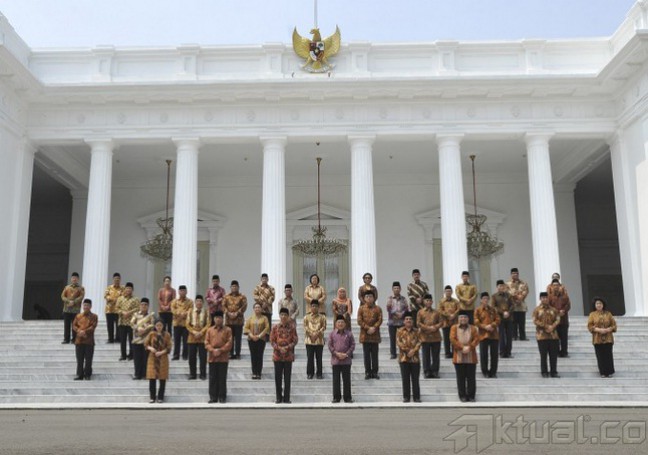 “Menteri yang perubahan dilakukan unit organisasi yang ada walau belum ditata. Misal, Menristek dan Dikti, bisa digunakan Dirjen dikti dan deputinya, sudah kita siapkan perpres. Yang belum ada ruang kantor dan staf, kementerian koordinator bidang kemaritiman, segera koordinasi dengan mensesneg dan menpan reformasi birokrasi, tapi mulai bekerja gunakan yang ada bekerja secepatnya,” kata Presiden.