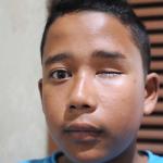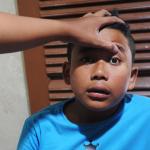 Seorang anak yang kehilangan mata kirinya sebelum dipasang mata palsu di Jalan Kompleks DPR 2, Kebon Jeruk Raya, Jakarta Barat, Selasa (18/10).