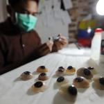 Okularis memperlihatkan sejumlah hasil mata palsu yang selesai dibuat di Jalan Kompleks DPR 2, Kebon Jeruk Raya, Selasa (17/10). Setiap bulannya pembuat mata palsu (okularis) di bilangan Kebon Jeruk ini mampu menghasilkan sekitar 15 mata palsu yang berfungsi sebagai estetis bagi seseorang yang kehilangan mata dengan harga Rp 2 juta/mata. AKTUAL/Tino Oktaviano