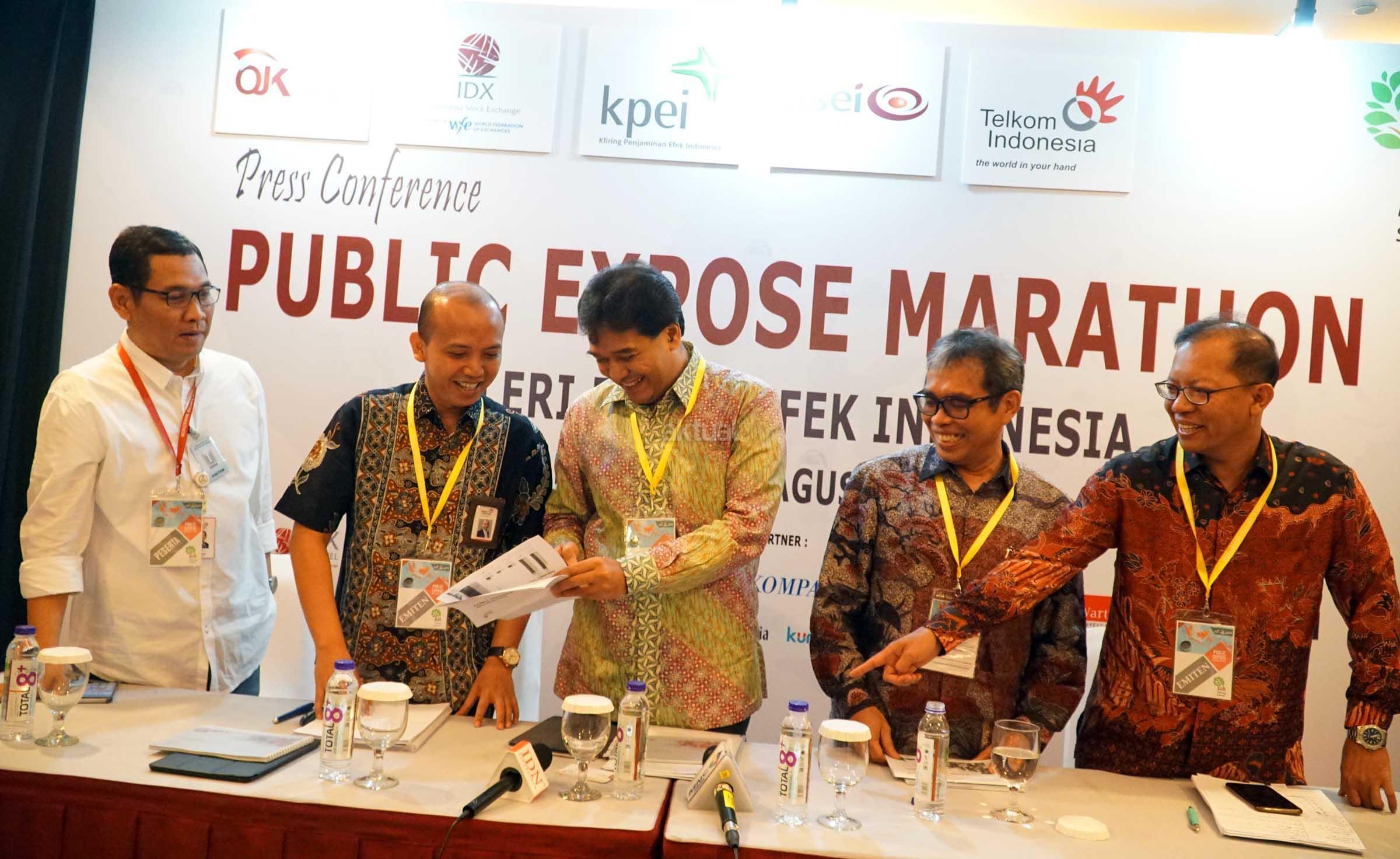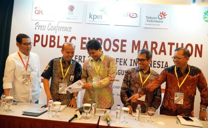 Sejumlah emiten melakukan paparan dan update kinerja perusahaan dalam kegiatan Public Expose Marathon di Bursa Efek Indonesia, Jakarta, Senin (7/8). Kegiatan yang dilaksanakan hingga selama 3 hari tersebut antara lain dikuti oleh emiten Telkom, PP,Indocement,BNI dll. AKTUAL/Eko S Hilman