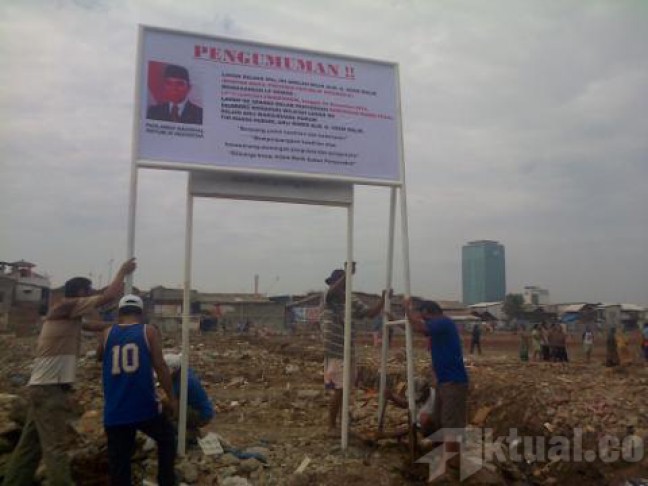 Jakarta, Aktual.co — Warga sekitar waduk Ria Rio memprotes pemugaran waduk, karena belum mendapatkan ganti rugi, Sabtu (29/11).
