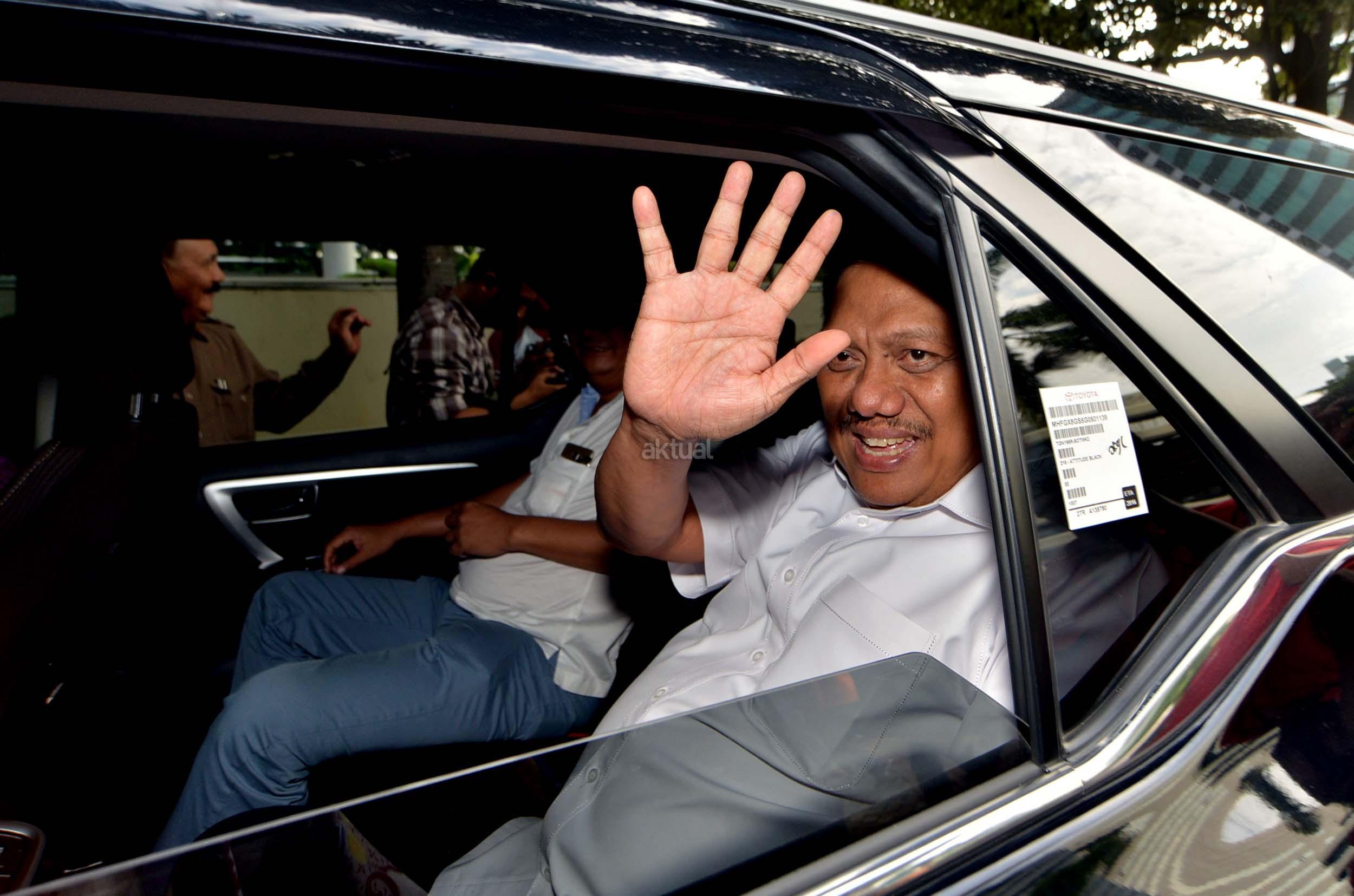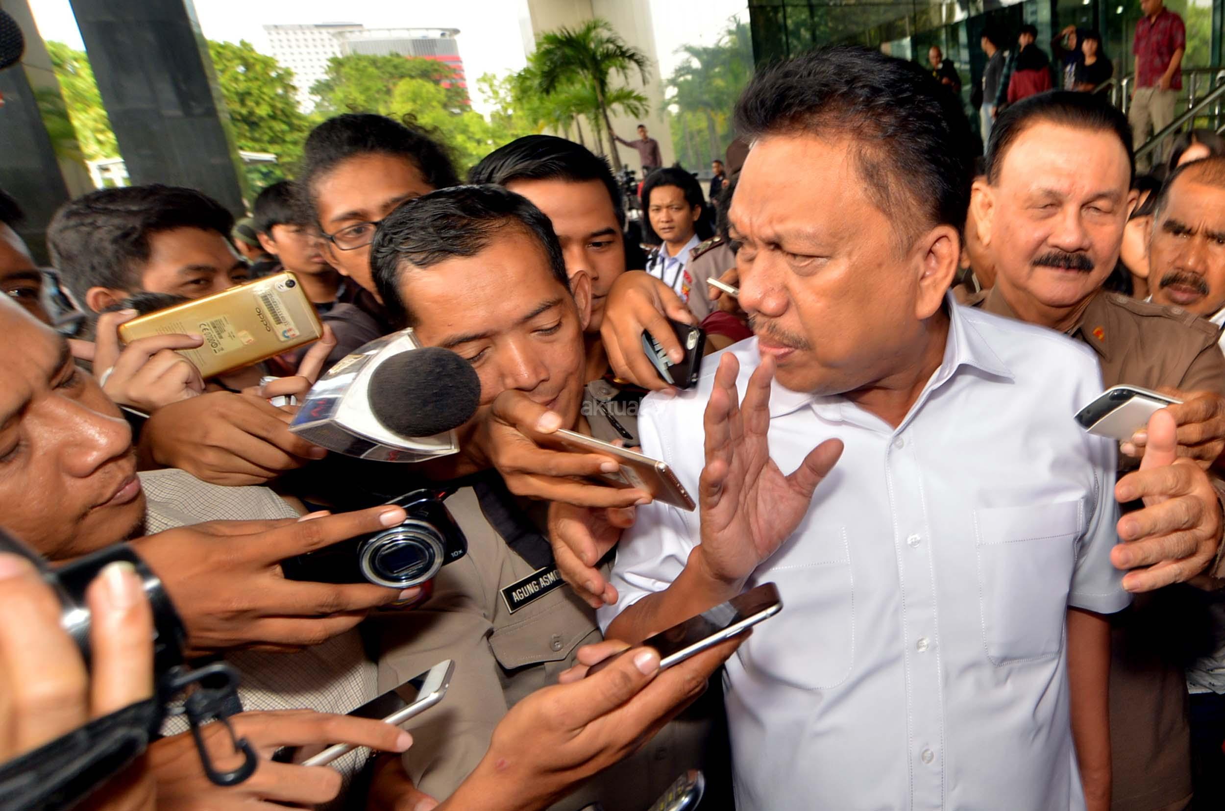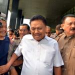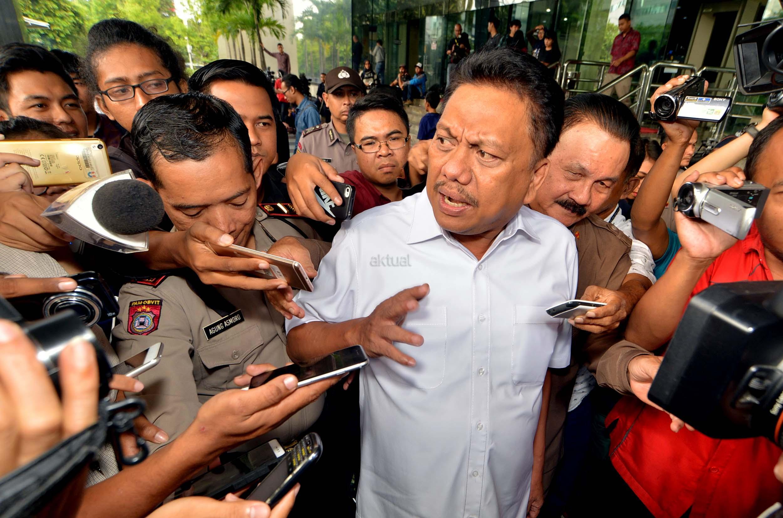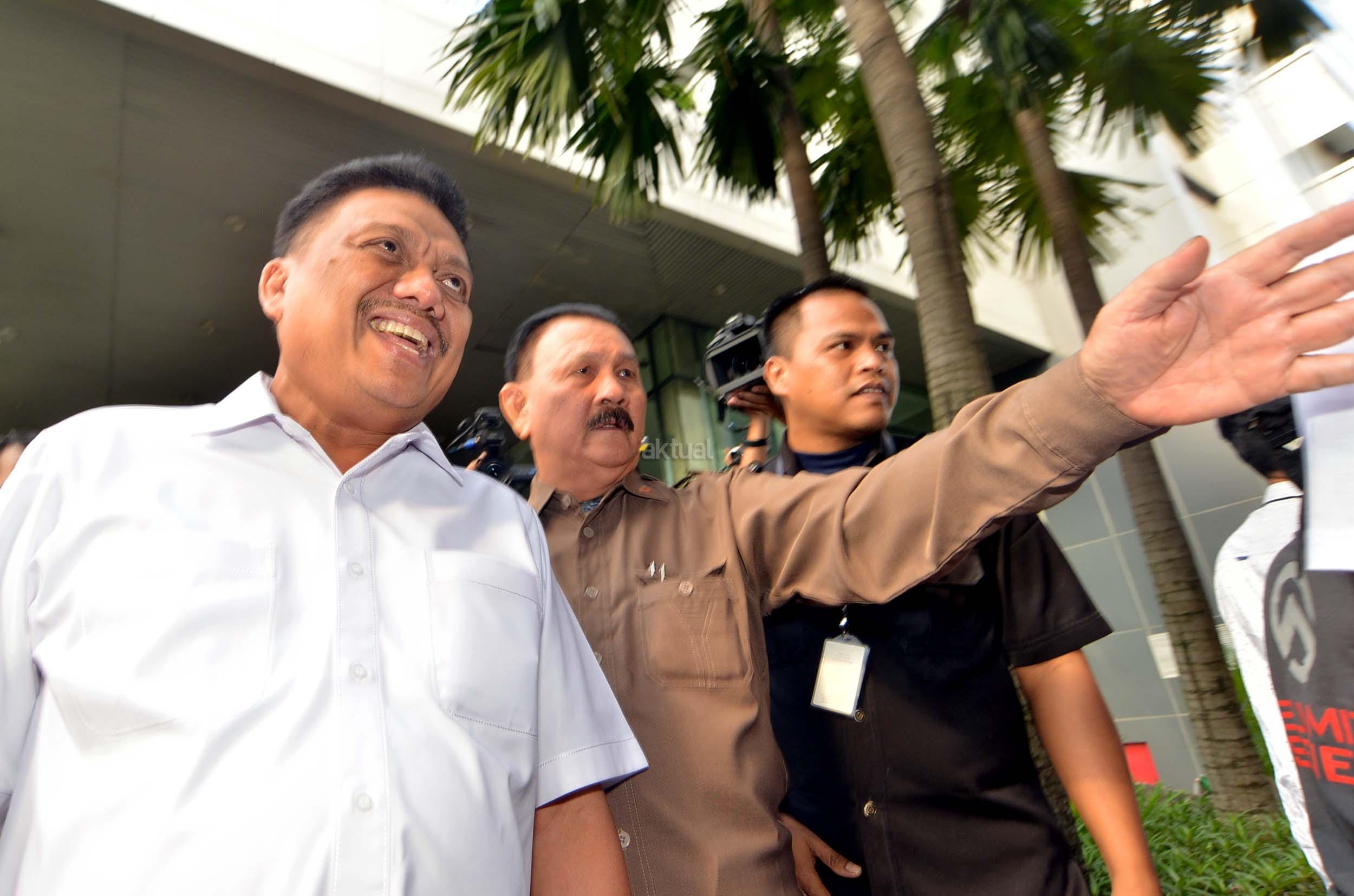 Gubernur Sulawesi Utara yang juga Bendahara Umum PDI – Perjuangan Olly Dondokambey menjawab pertanyaan wartawan seusai menjalani pemeriksaan di gedung KPK Jakarta, Kamis (26/1/2017). Mantan anggota DPR itu diperiksa sebagai saksi untuk tersangka mantan Direktur Pengelola Informasi Administrasi Kependudukan Ditjen Dukcapil Kemendagri Sugiharto terkait kasus dugaan korupsi proyek pengadaan e-KTP.