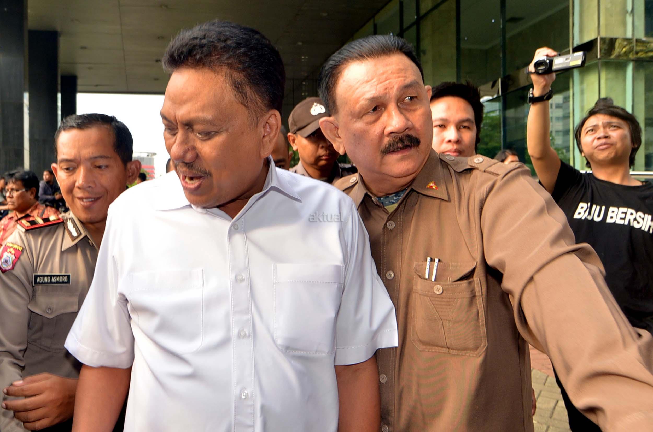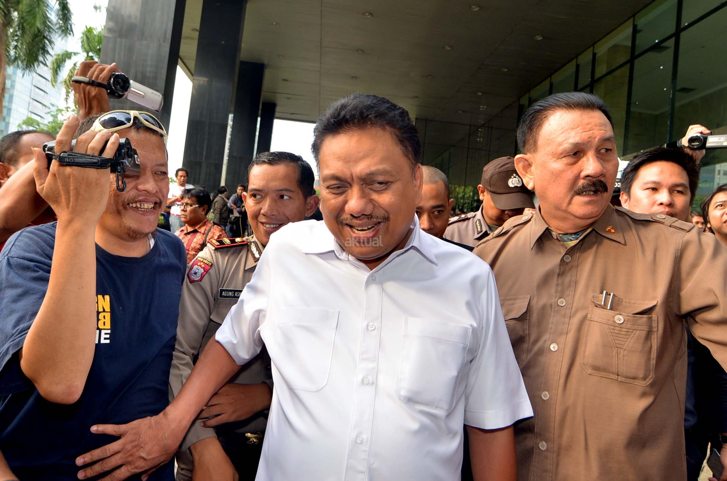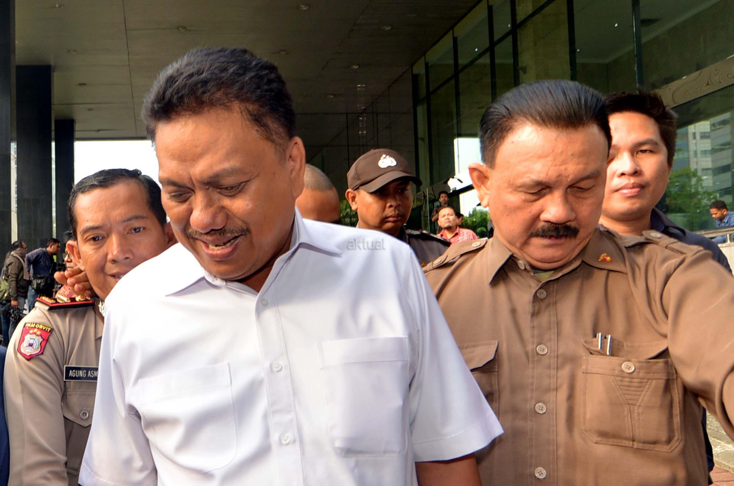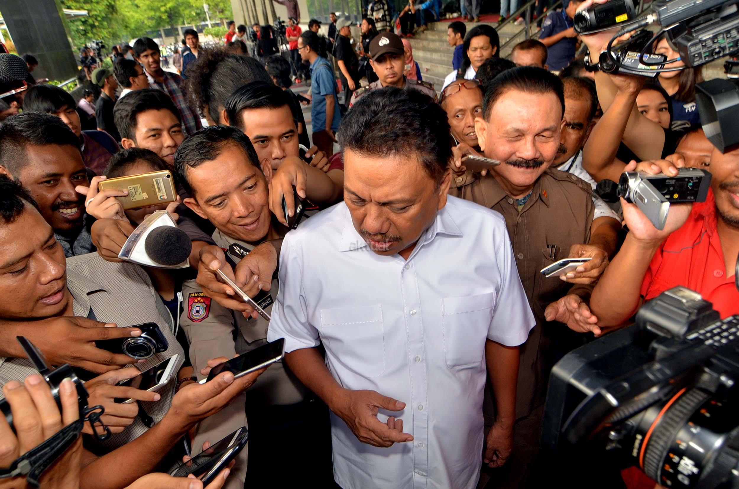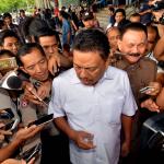 Gubernur Sulawesi Utara yang juga Bendahara Umum PDI – Perjuangan Olly Dondokambey menjawab pertanyaan wartawan seusai menjalani pemeriksaan di gedung KPK Jakarta, Kamis (26/1/2017). Mantan anggota DPR itu diperiksa sebagai saksi untuk tersangka mantan Direktur Pengelola Informasi Administrasi Kependudukan Ditjen Dukcapil Kemendagri Sugiharto terkait kasus dugaan korupsi proyek pengadaan e-KTP.