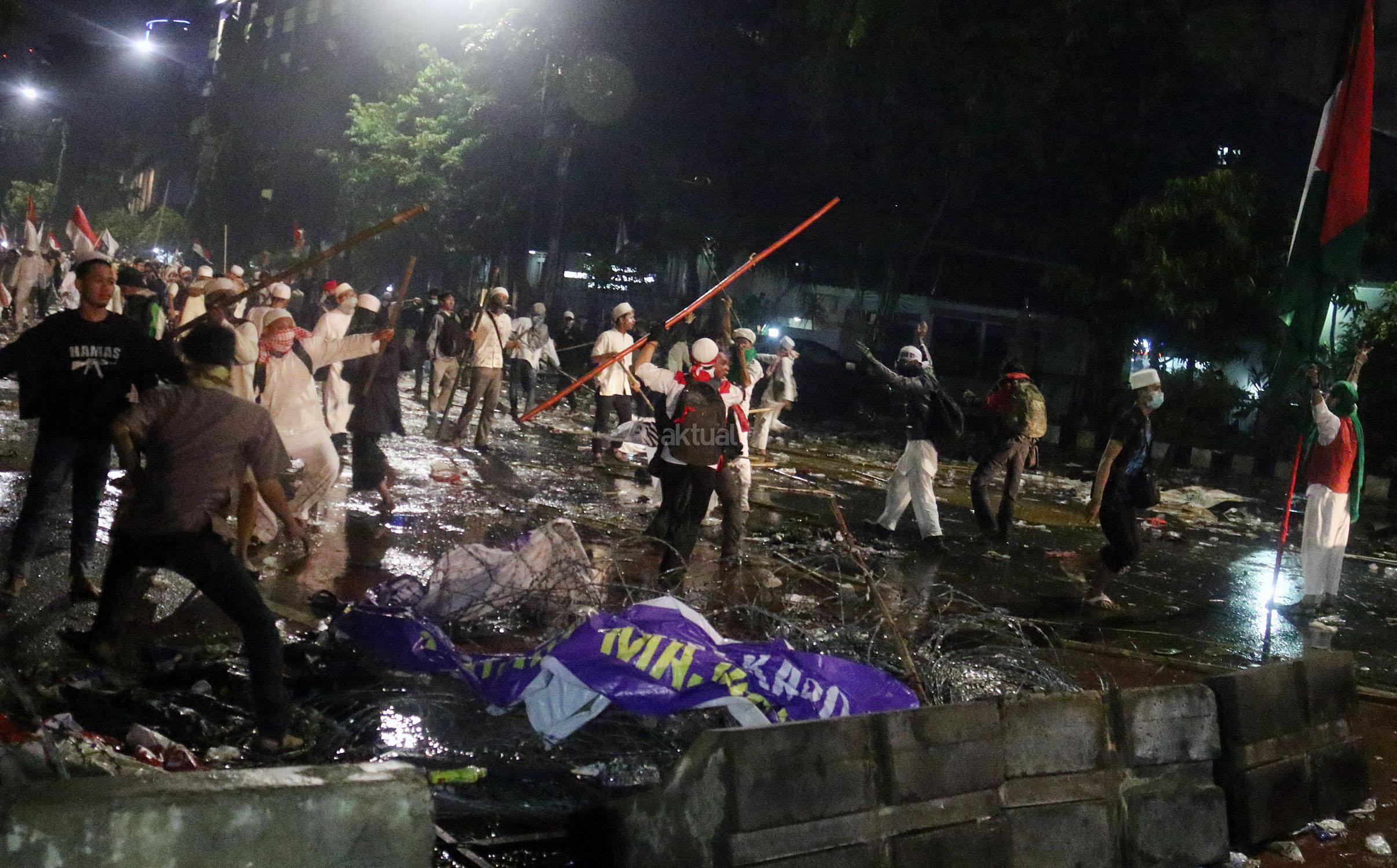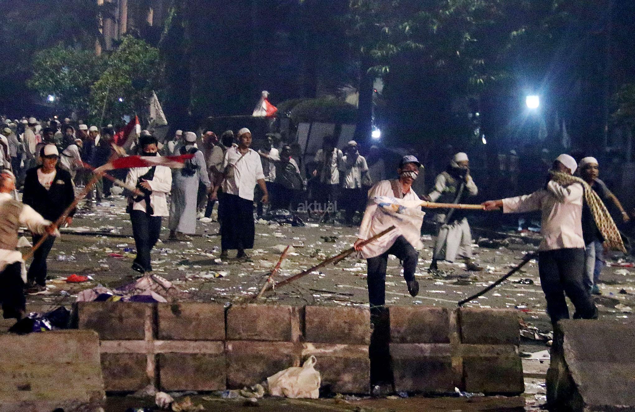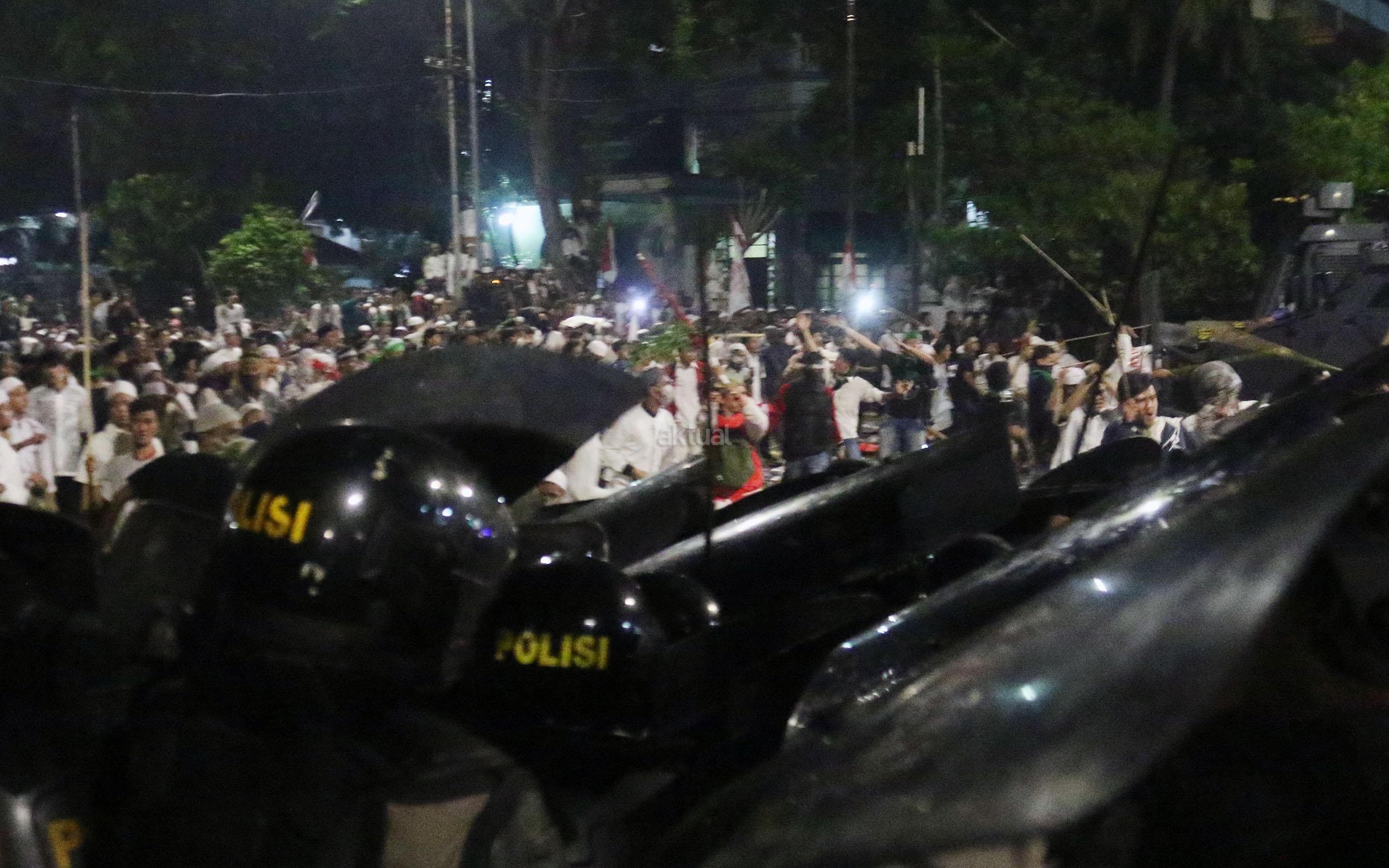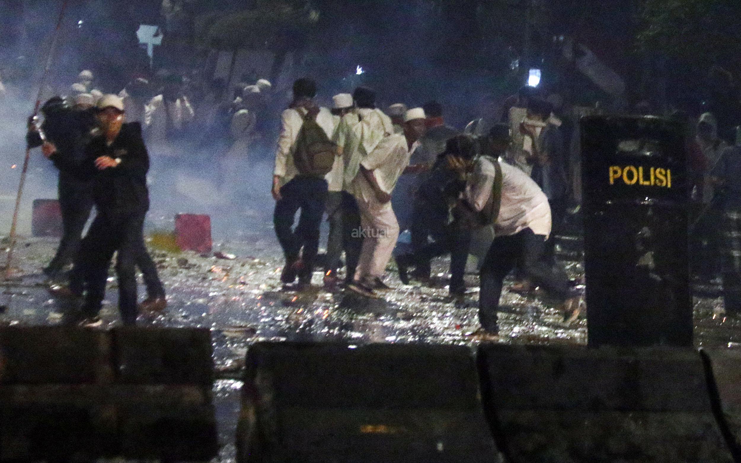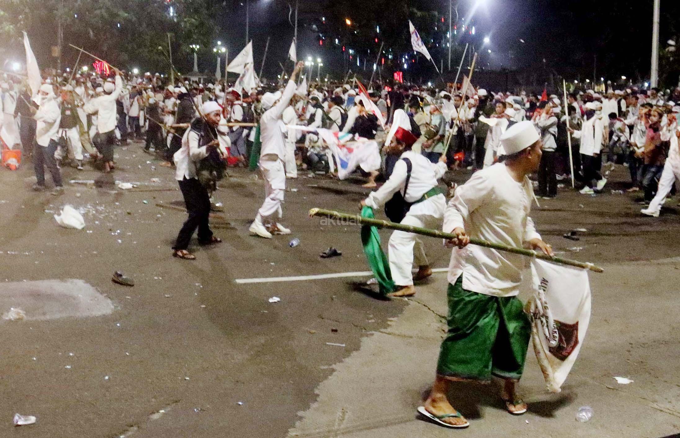 Massa Aksi Damai 4 November terlibat bentrok dengan petugas, Jakarta, Jumat (4/11/2016). Belum diketahui apa yang menyebabkan terjadinya bentrokan. AKTUAL/Munzir