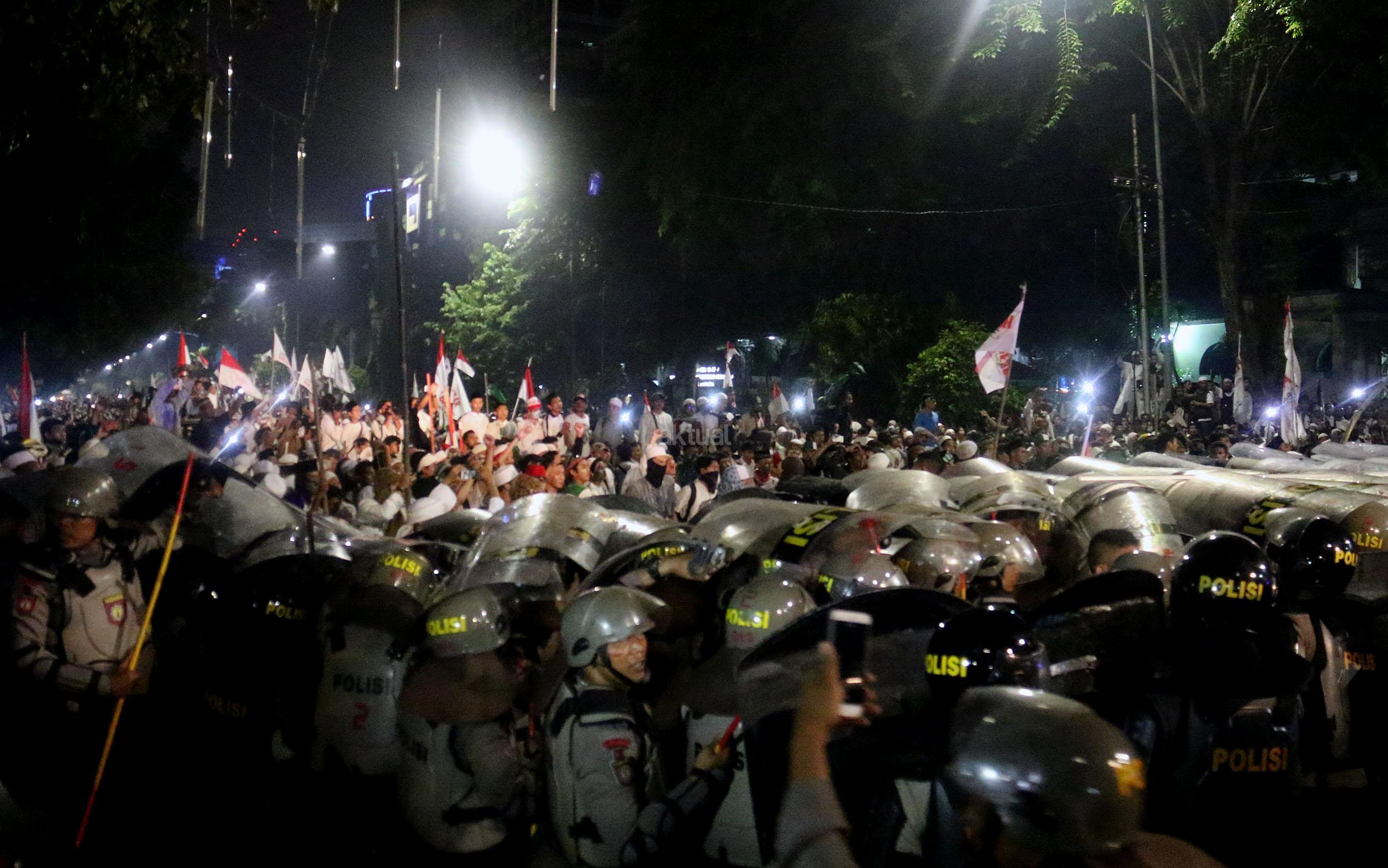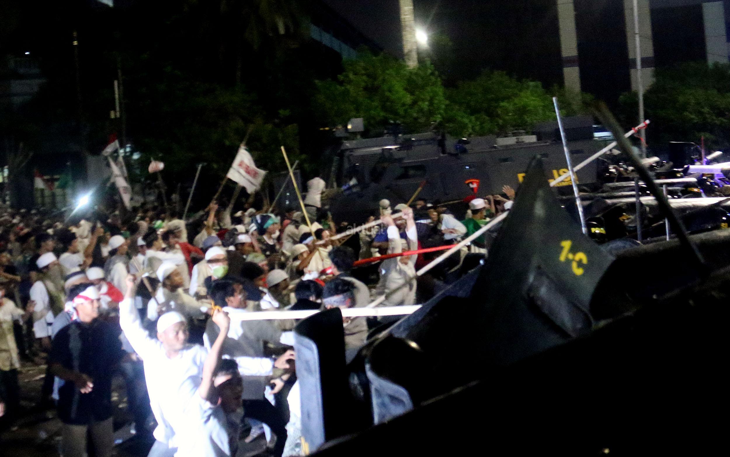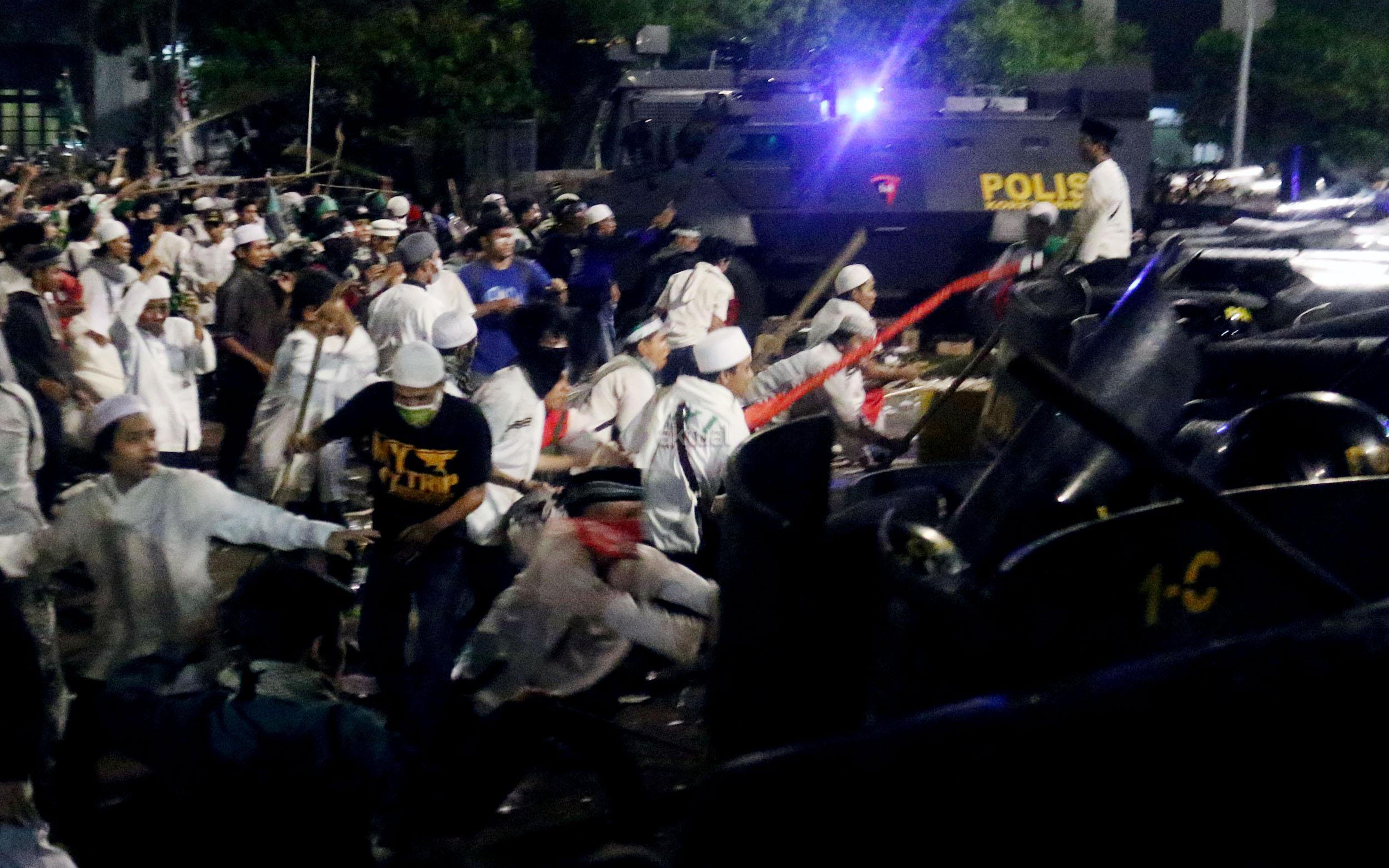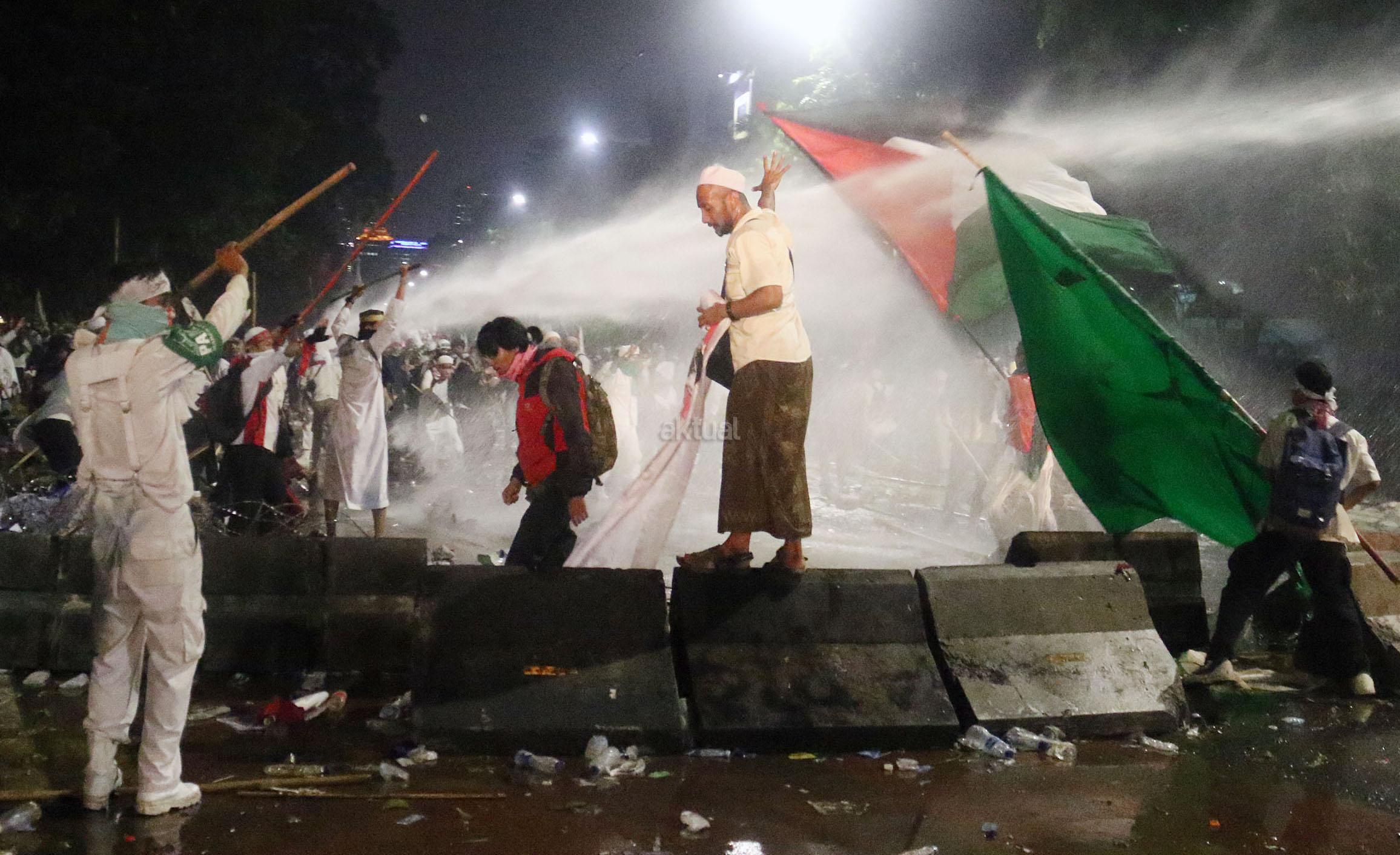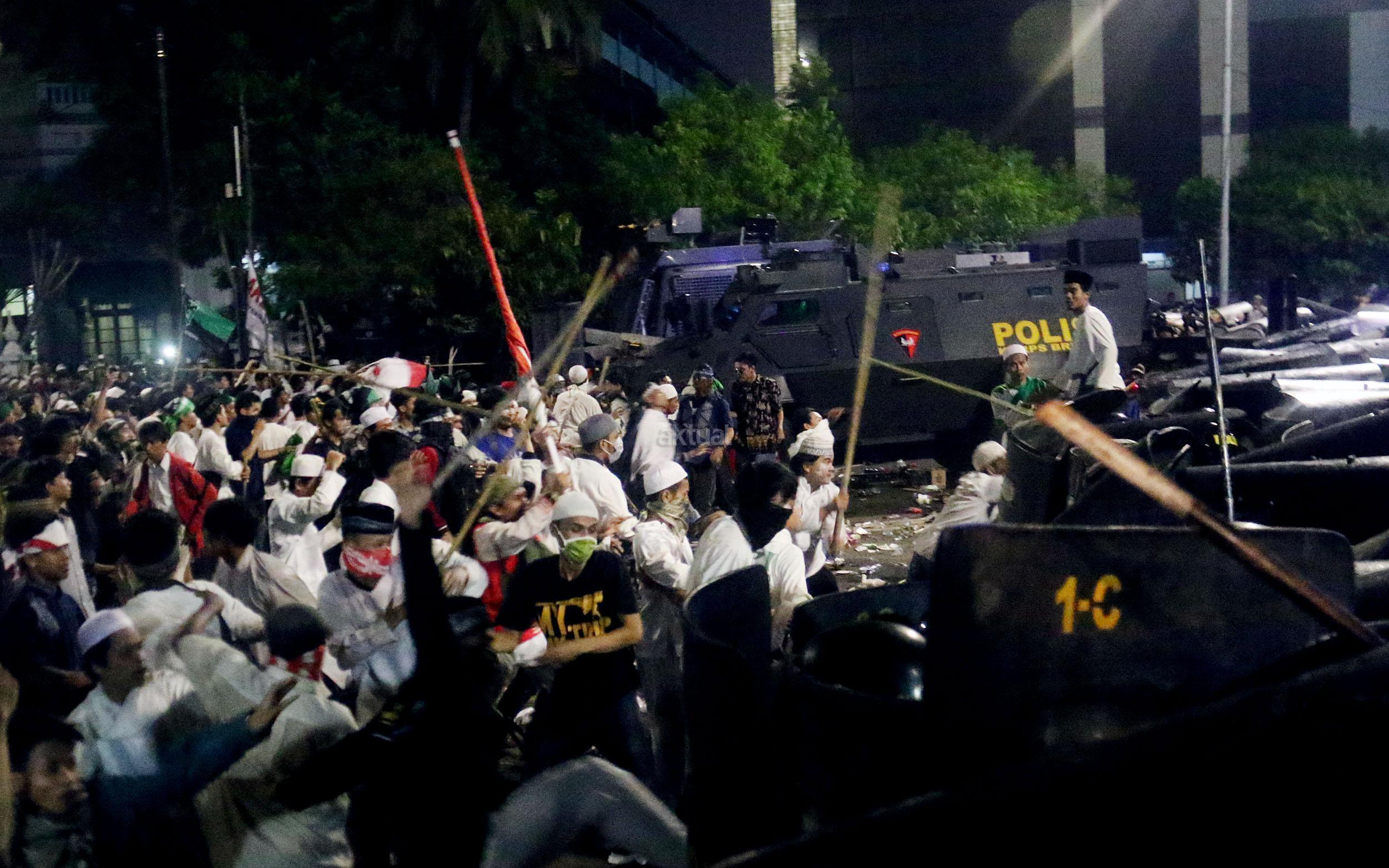 Massa Aksi Damai 4 November terlibat bentrok dengan petugas, Jakarta, Jumat (4/11/2016). Belum diketahui apa yang menyebabkan terjadinya bentrokan. AKTUAL/Munzir