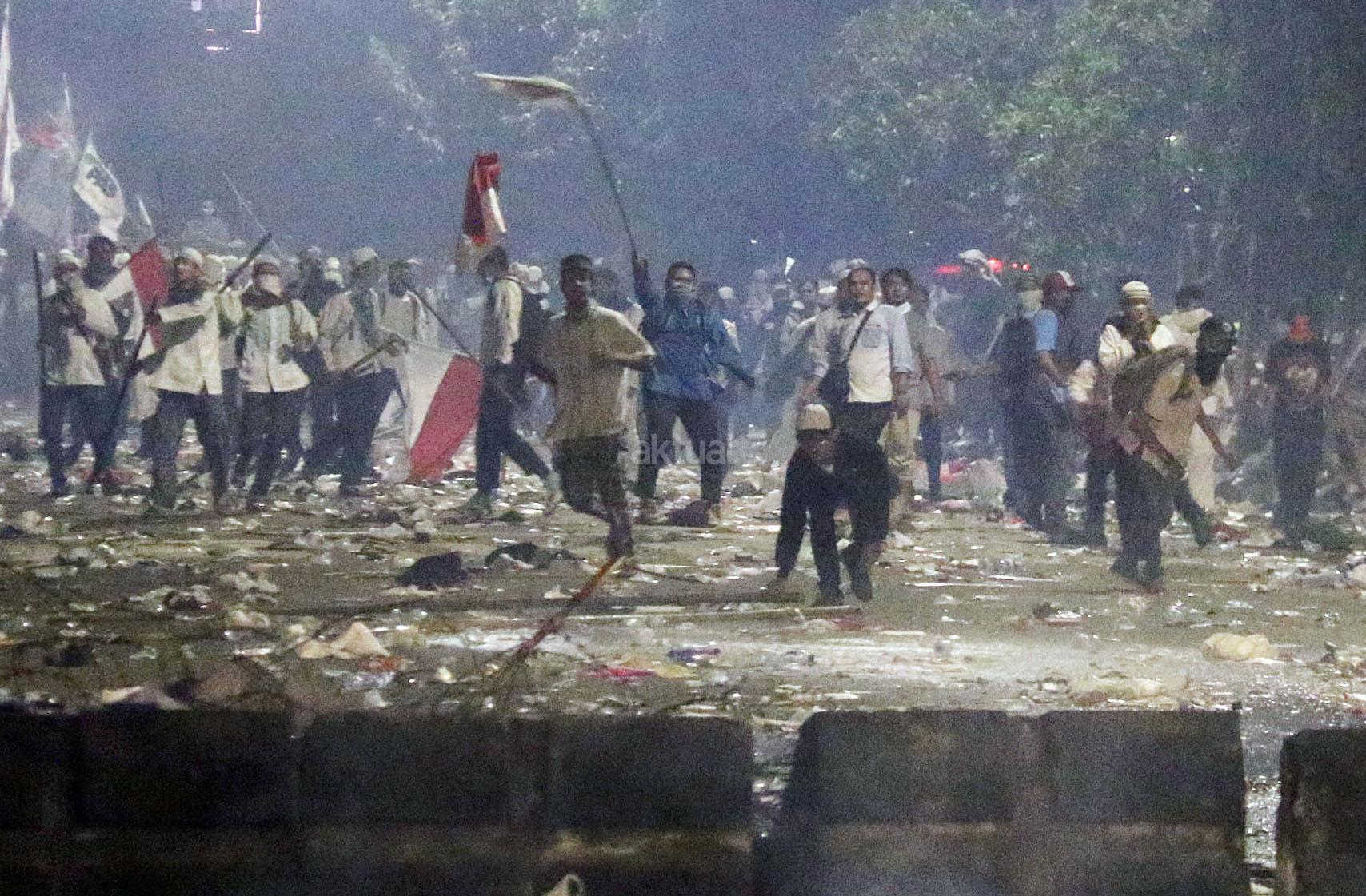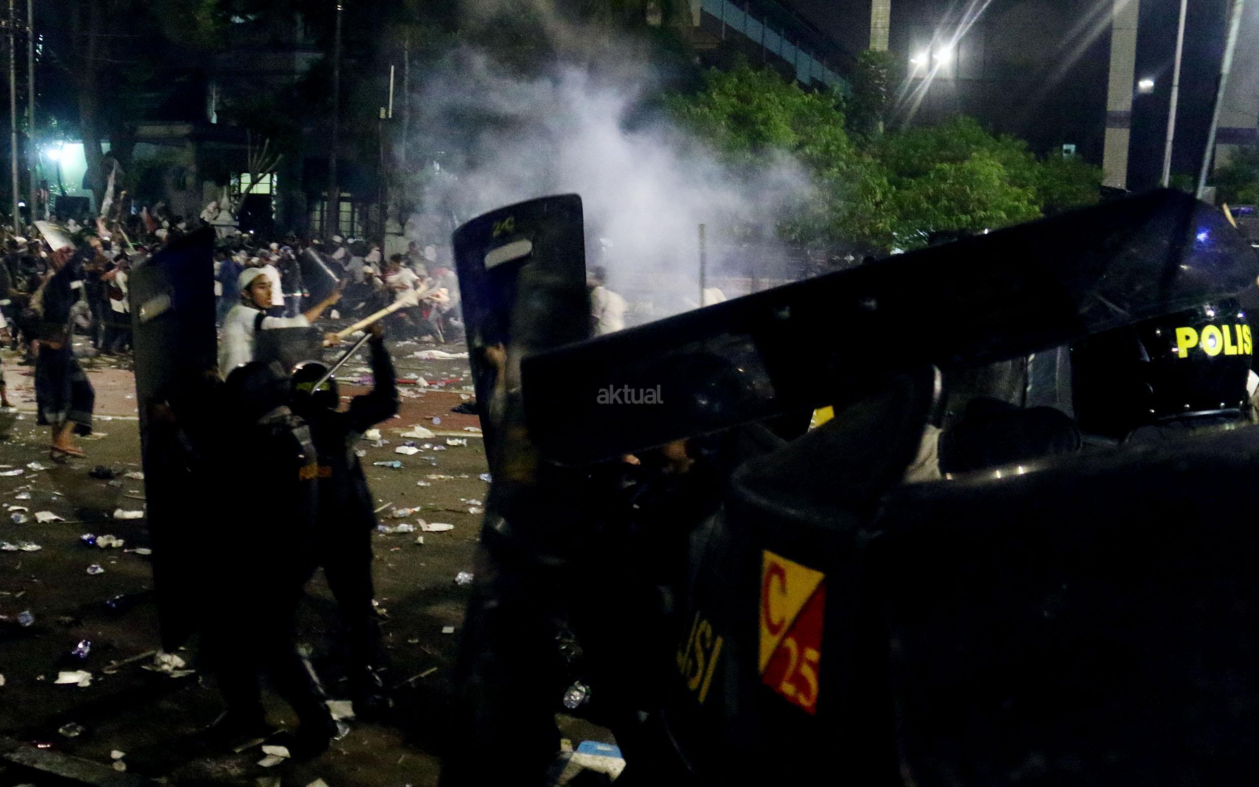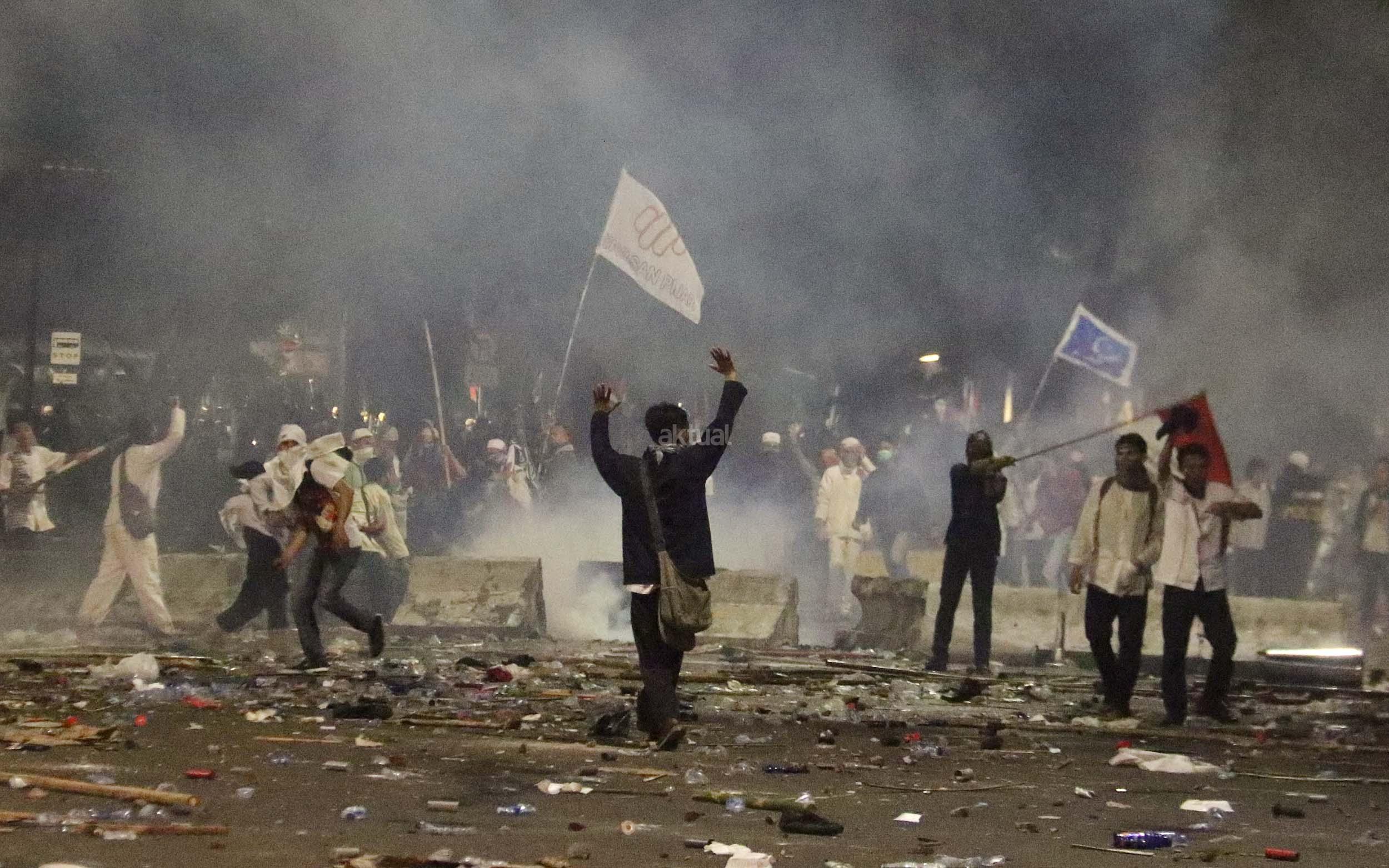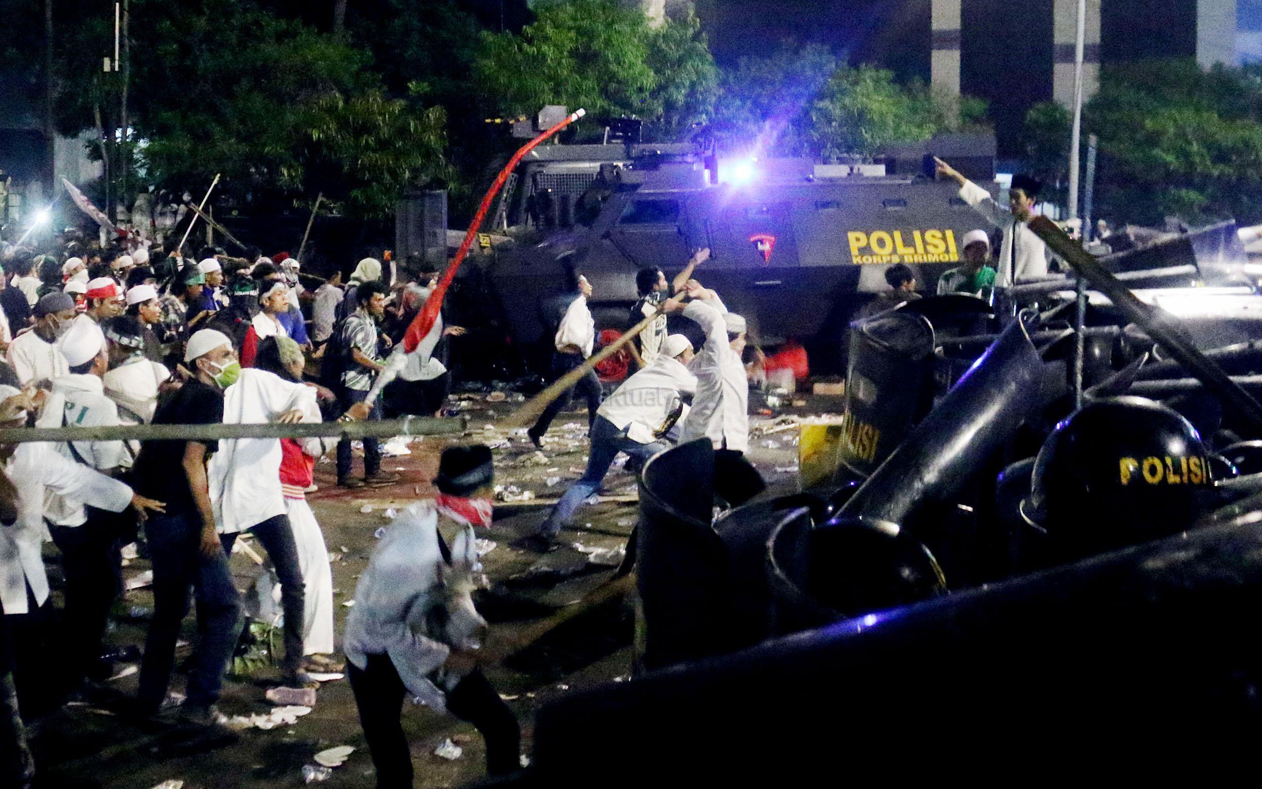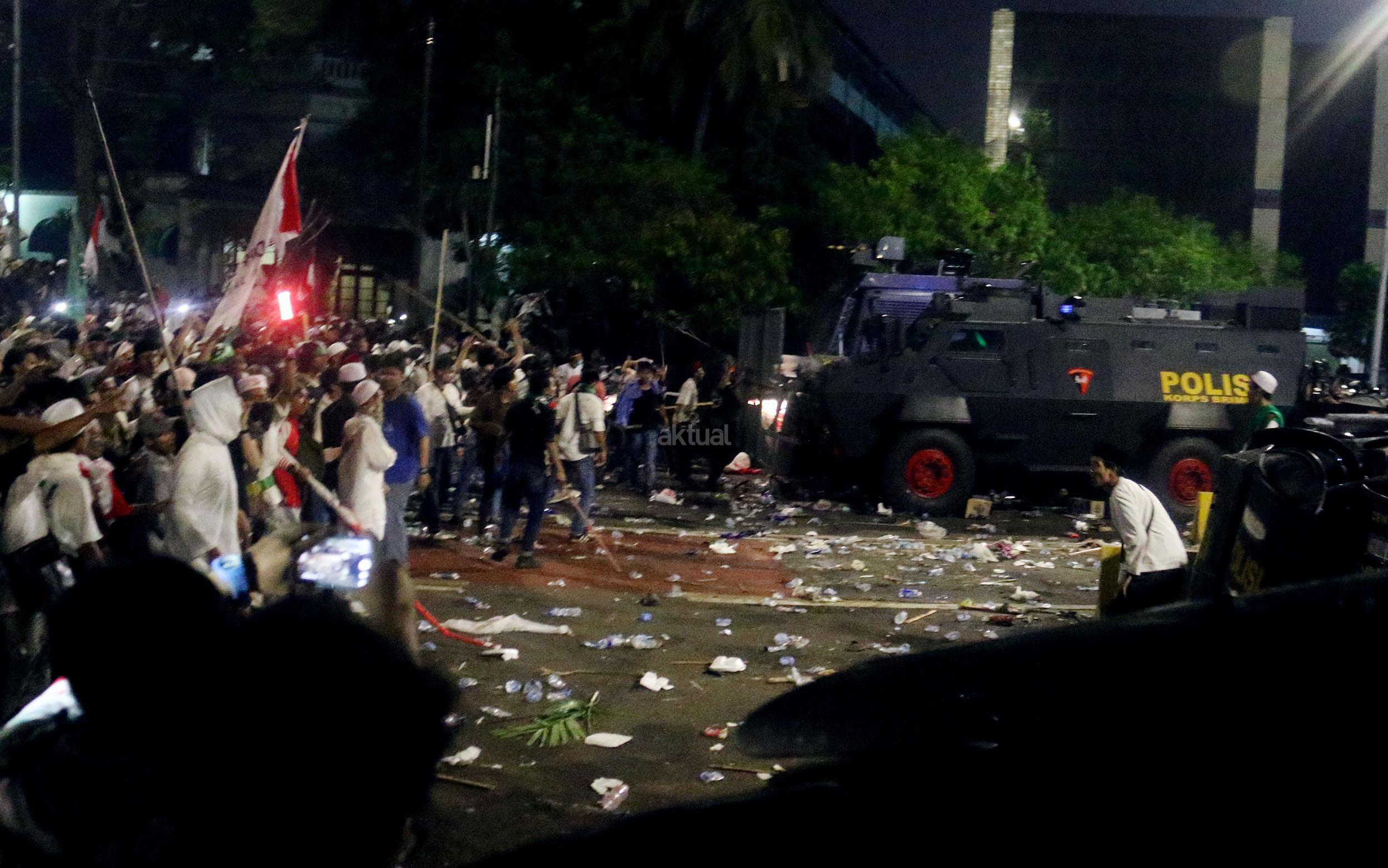 Massa Aksi Damai 4 November terlibat bentrok dengan petugas, Jakarta, Jumat (4/11/2016). Belum diketahui apa yang menyebabkan terjadinya bentrokan. AKTUAL/Munzir