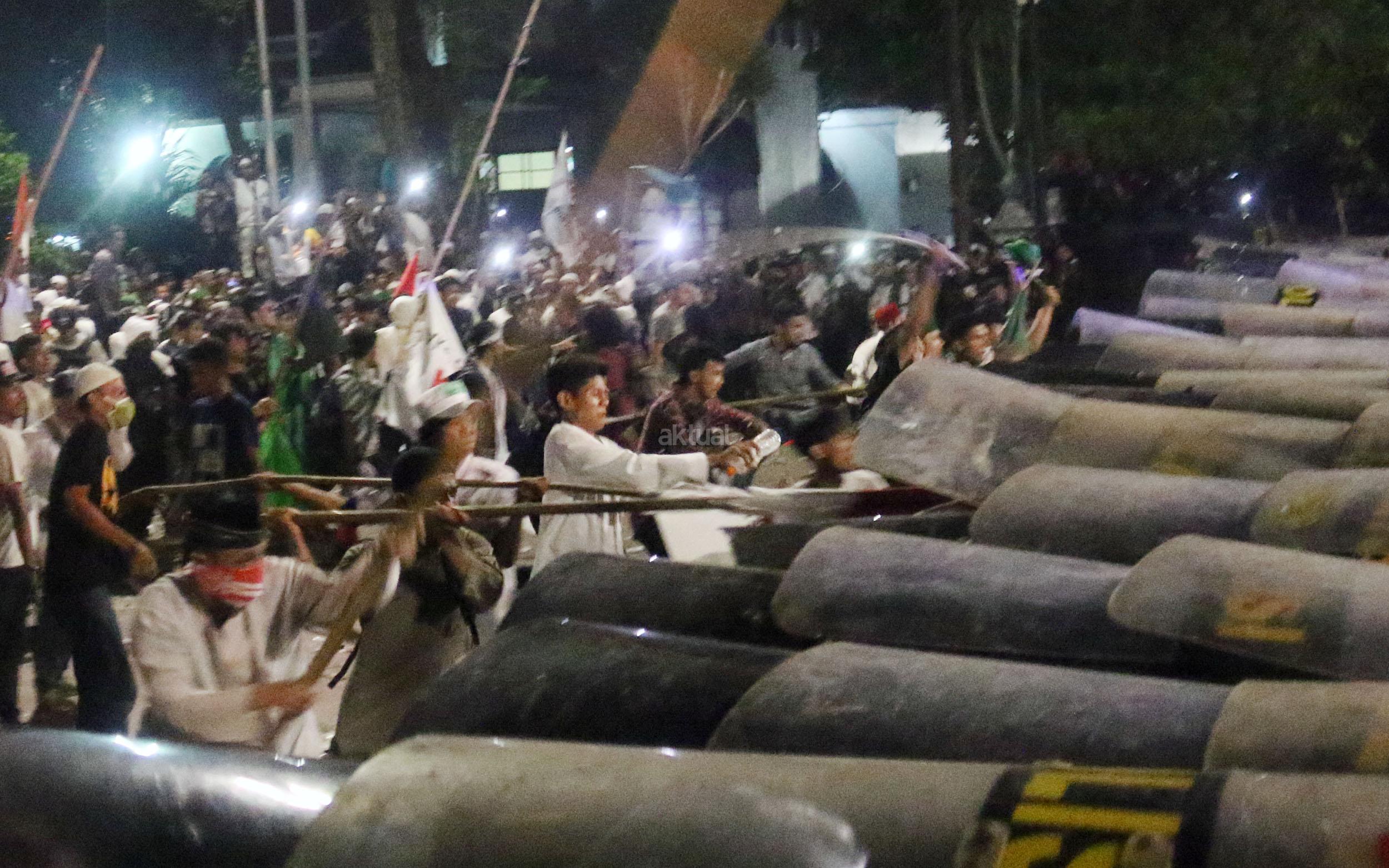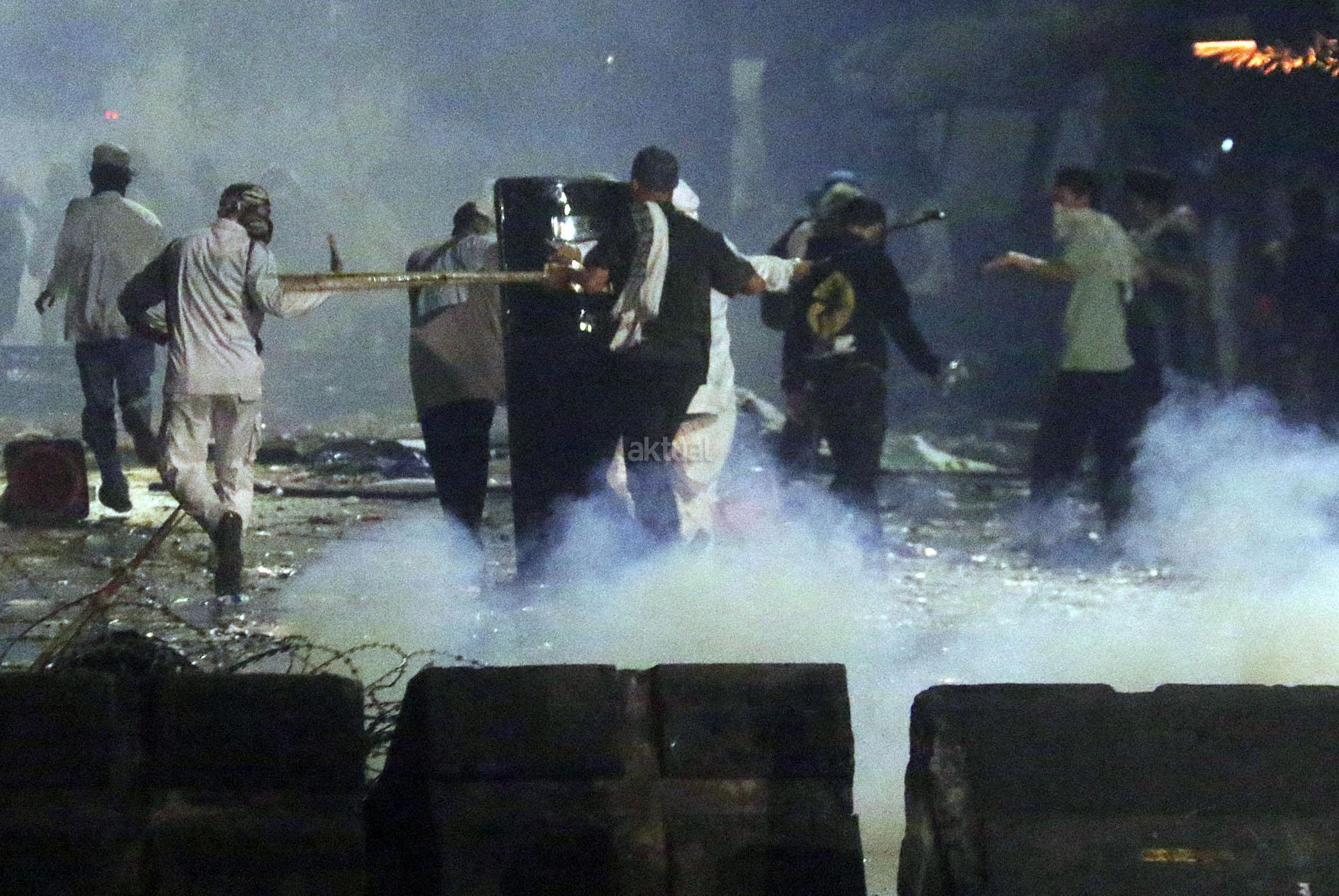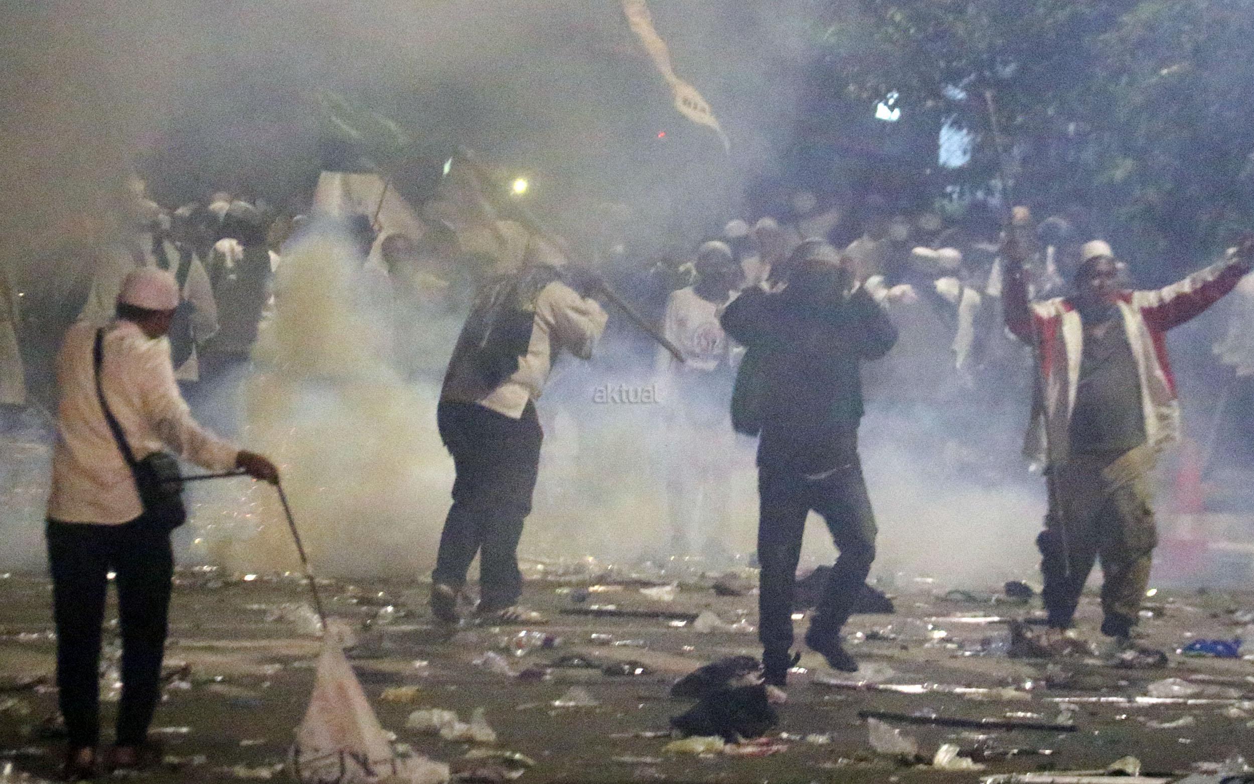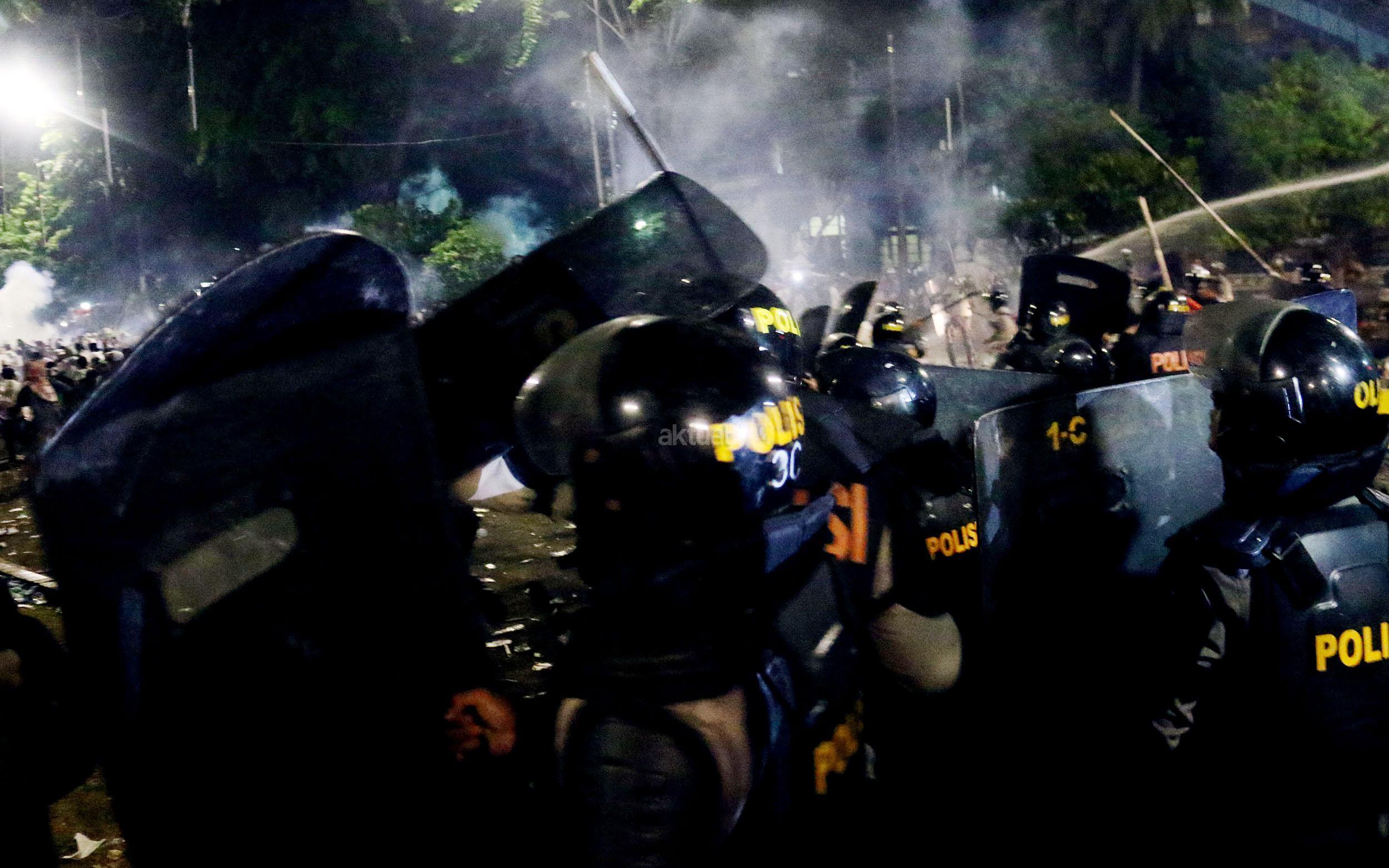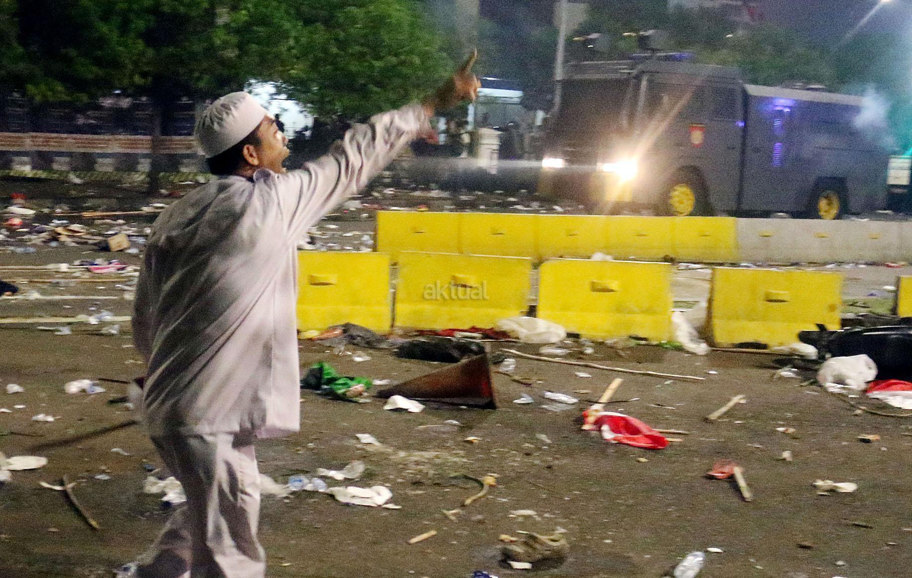 Massa Aksi Damai 4 November terlibat bentrok dengan petugas, Jakarta, Jumat (4/11/2016). Belum diketahui apa yang menyebabkan terjadinya bentrokan. AKTUAL/Munzir