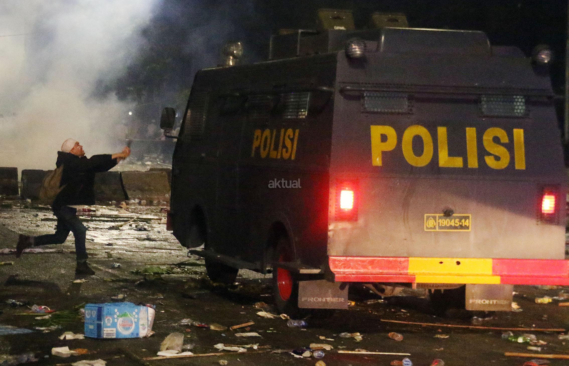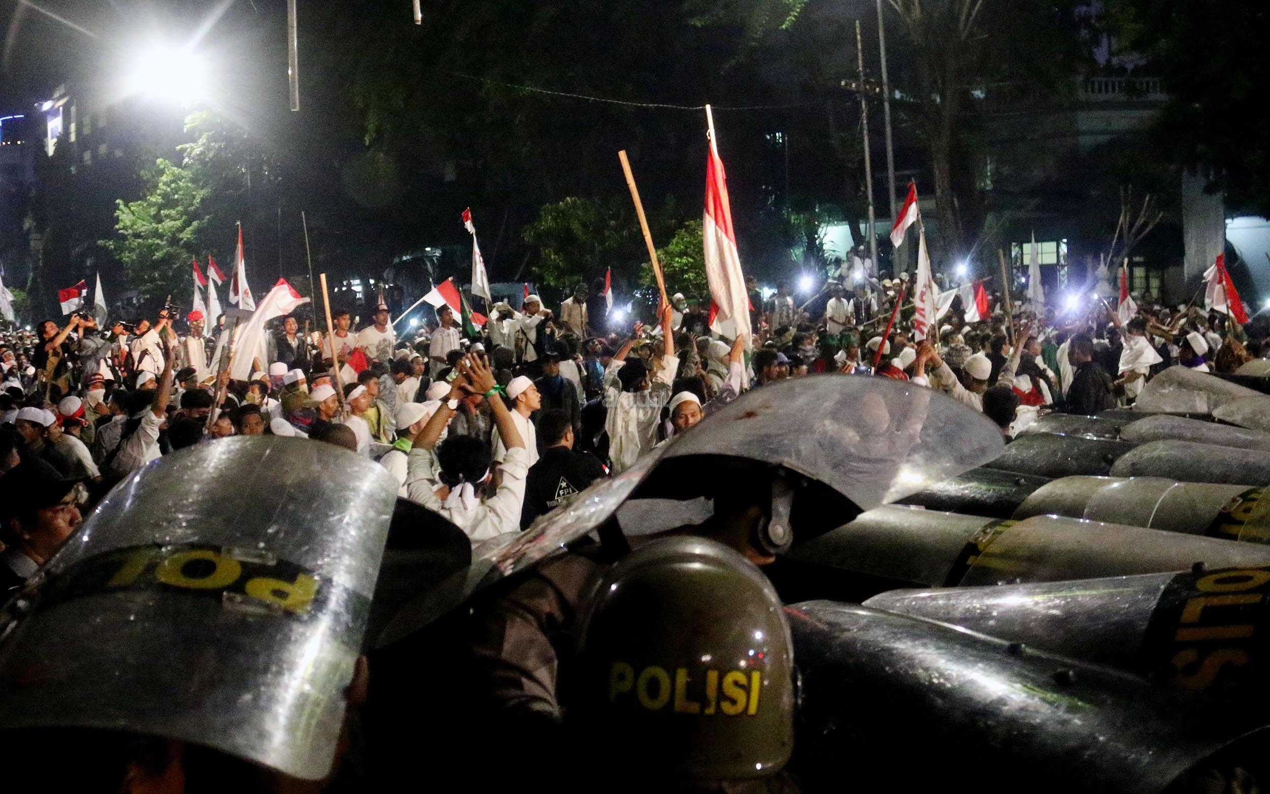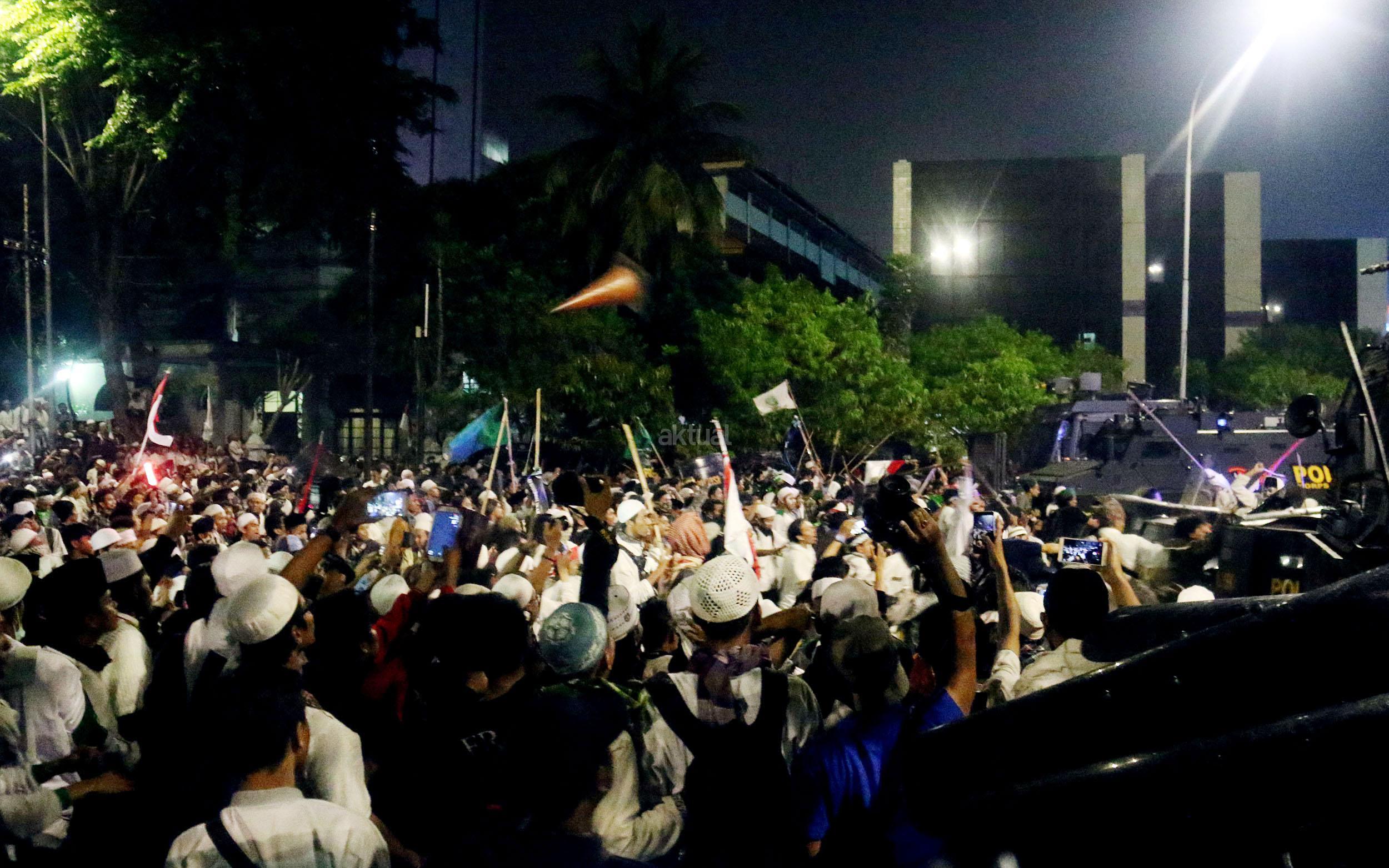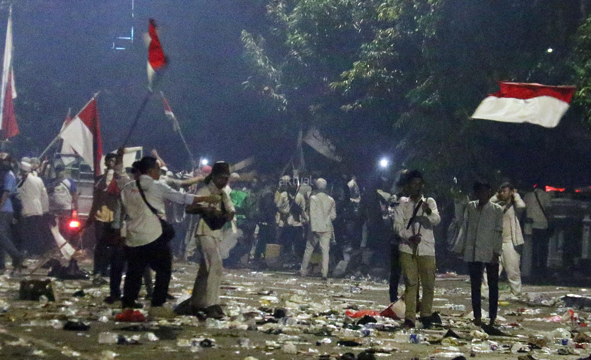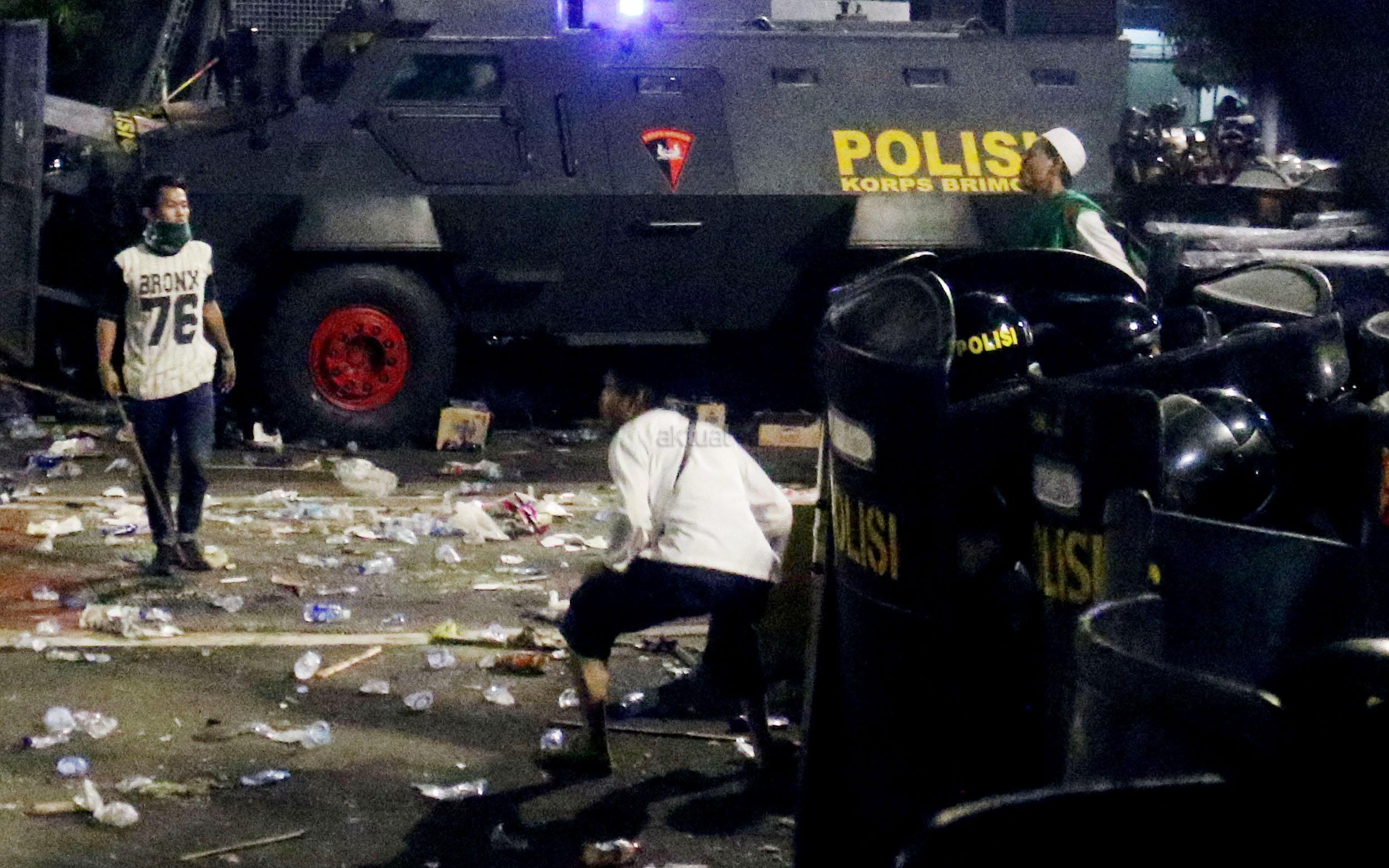 Massa Aksi Damai 4 November terlibat bentrok dengan petugas, Jakarta, Jumat (4/11/2016). Belum diketahui apa yang menyebabkan terjadinya bentrokan. AKTUAL/Munzir