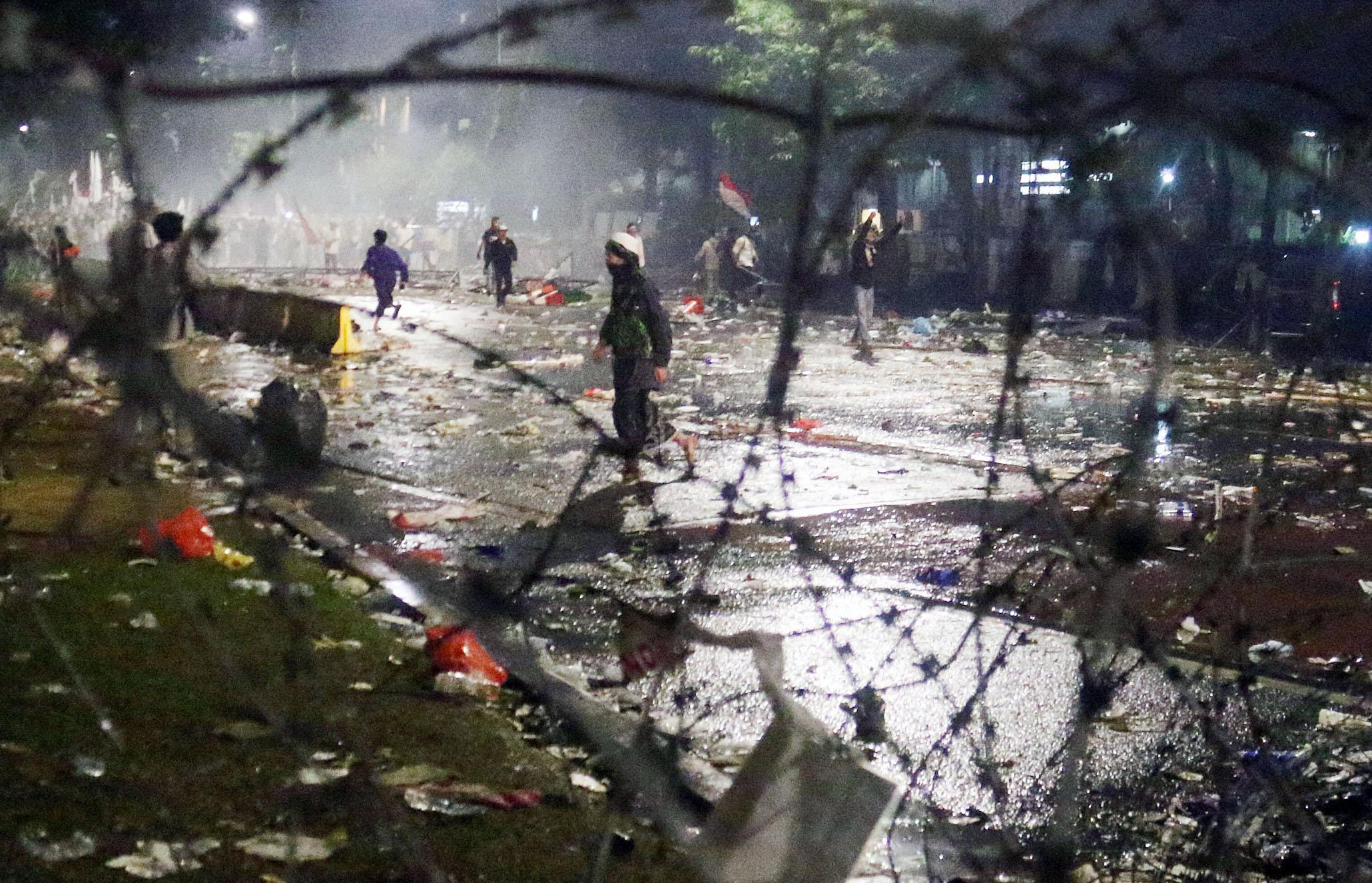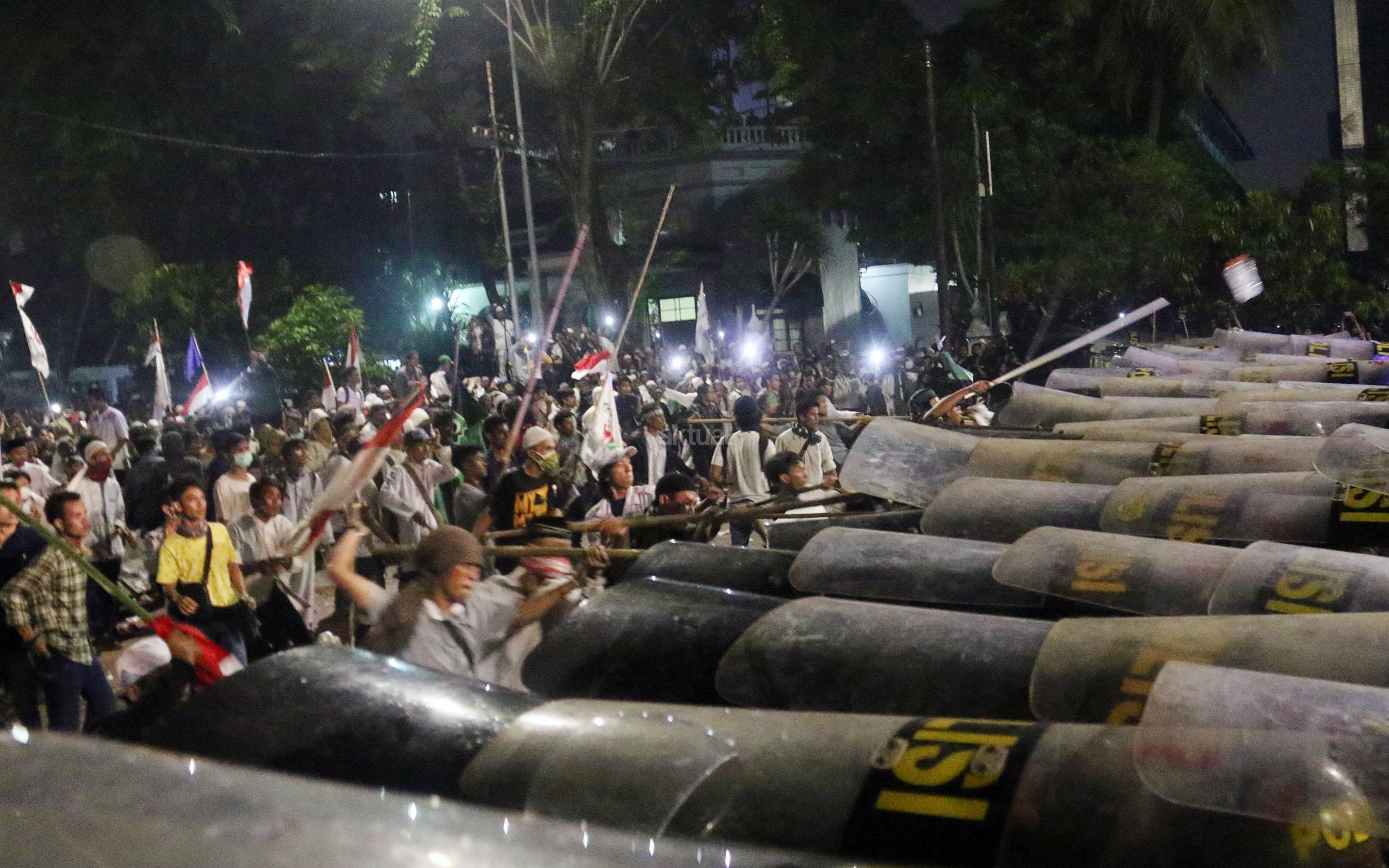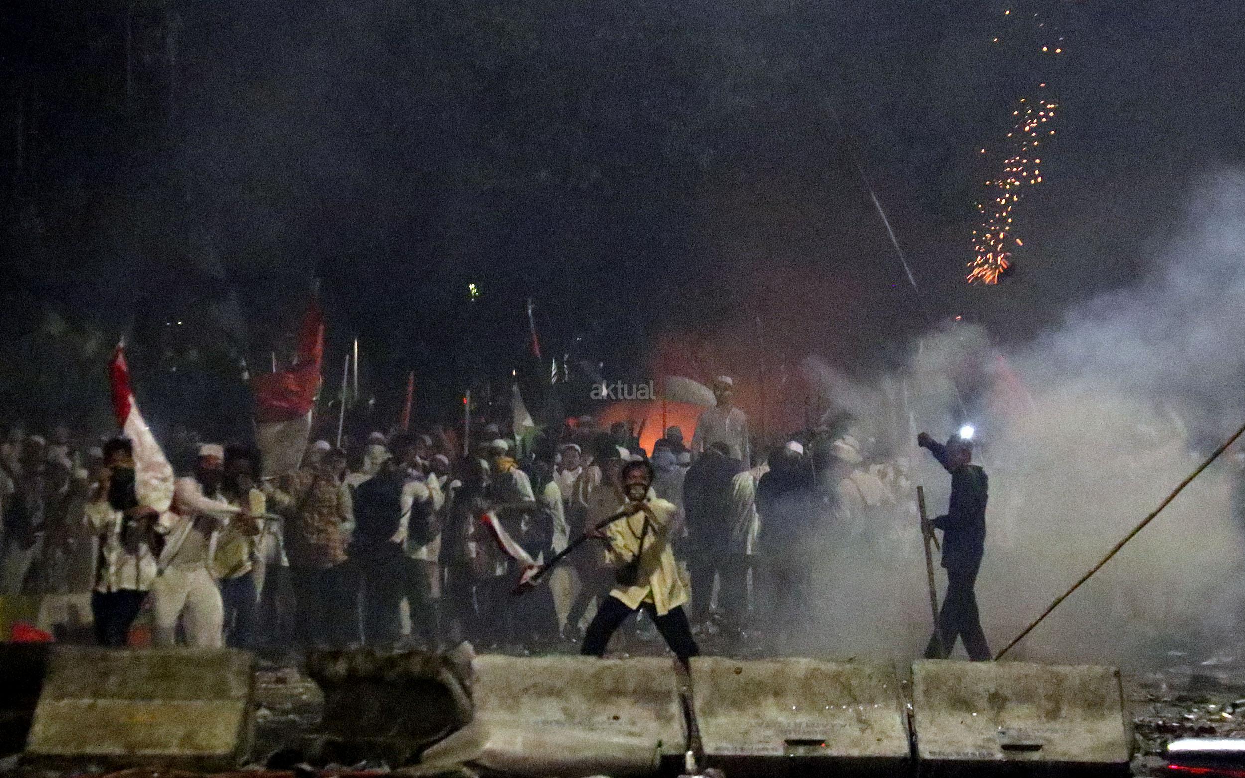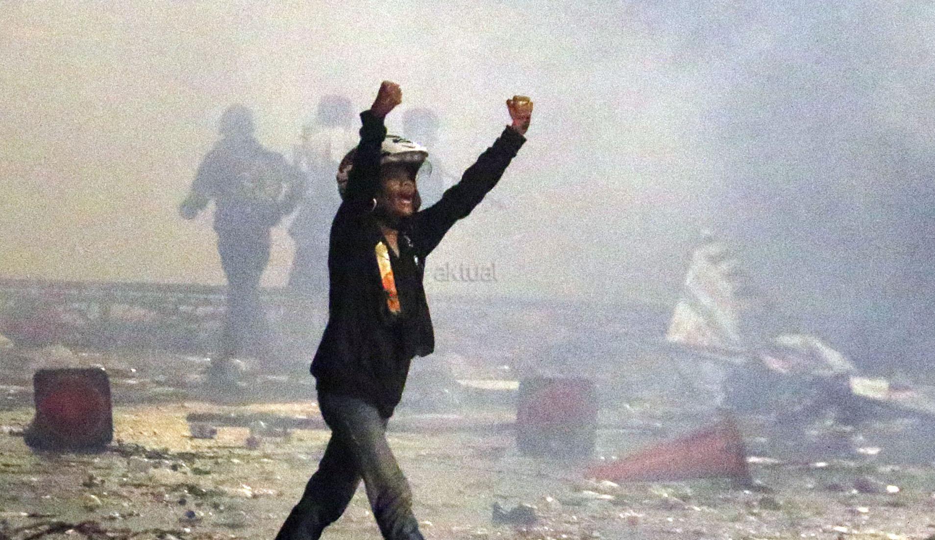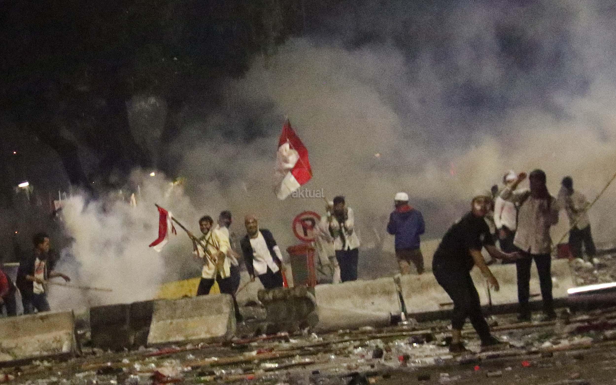 Massa Aksi Damai 4 November terlibat bentrok dengan petugas, Jakarta, Jumat (4/11/2016). Belum diketahui apa yang menyebabkan terjadinya bentrokan. AKTUAL/Munzir