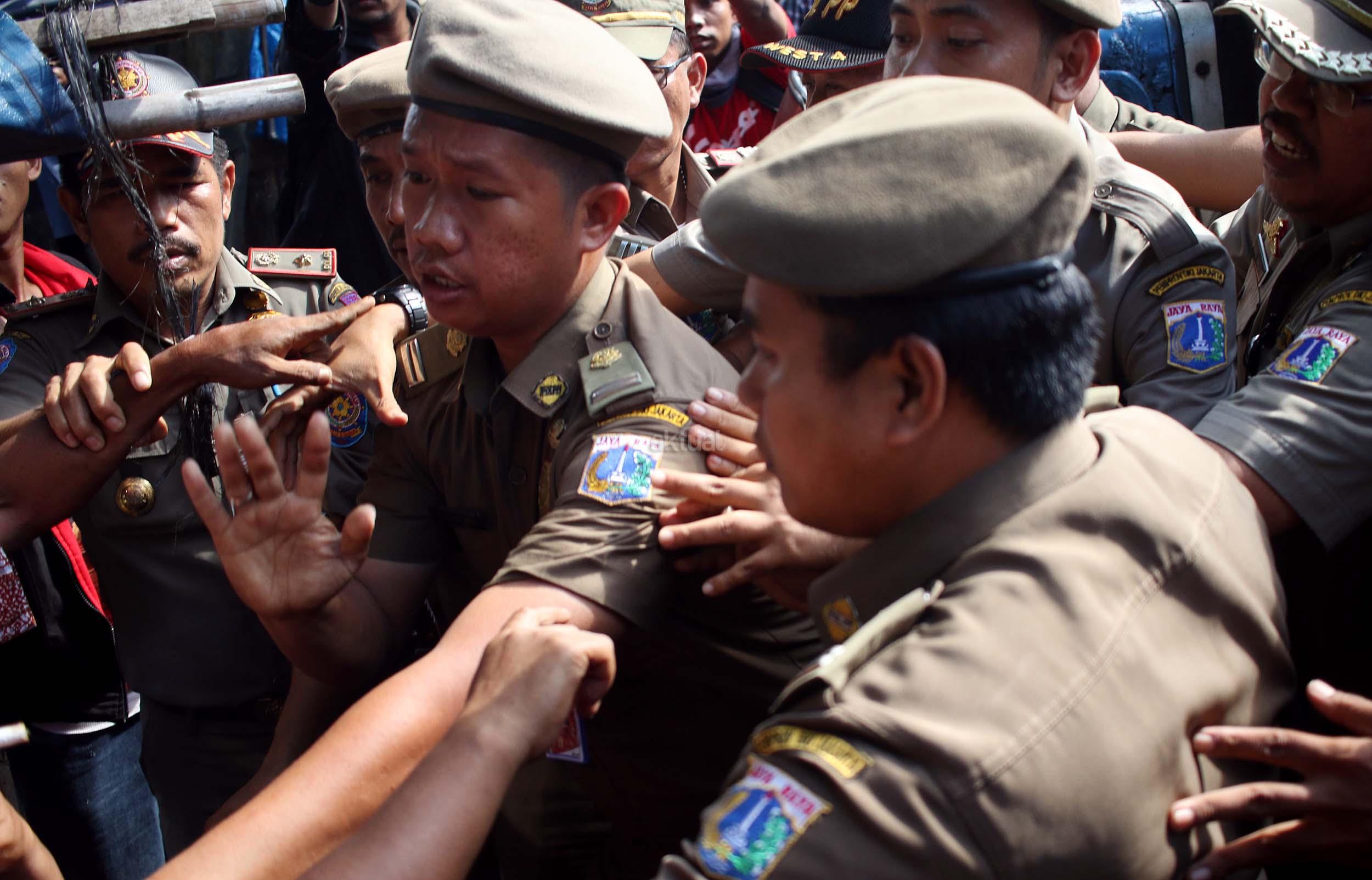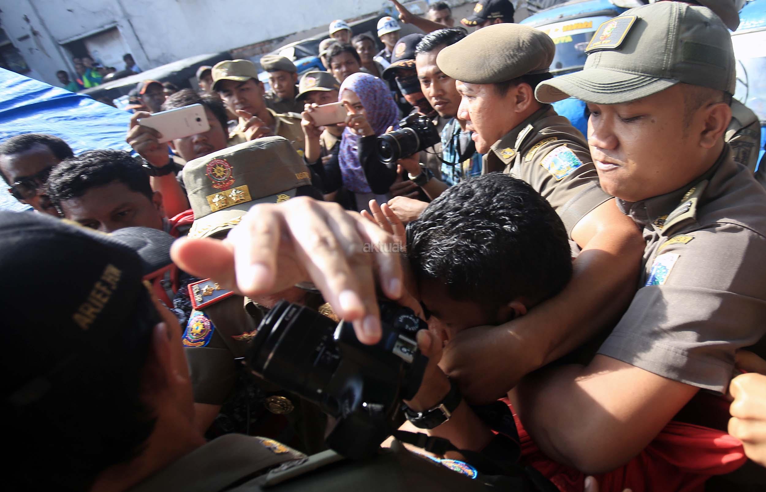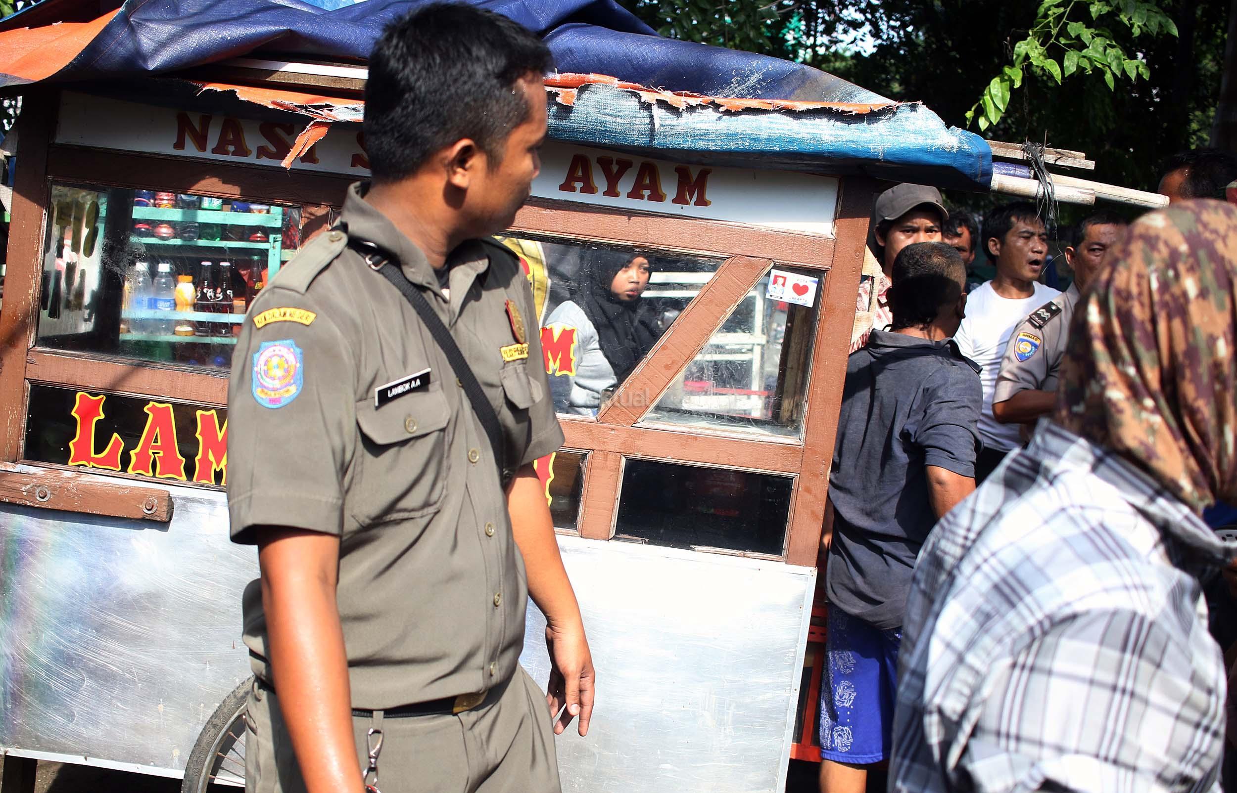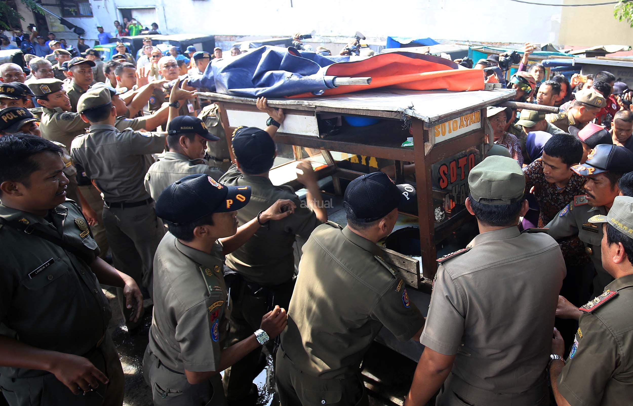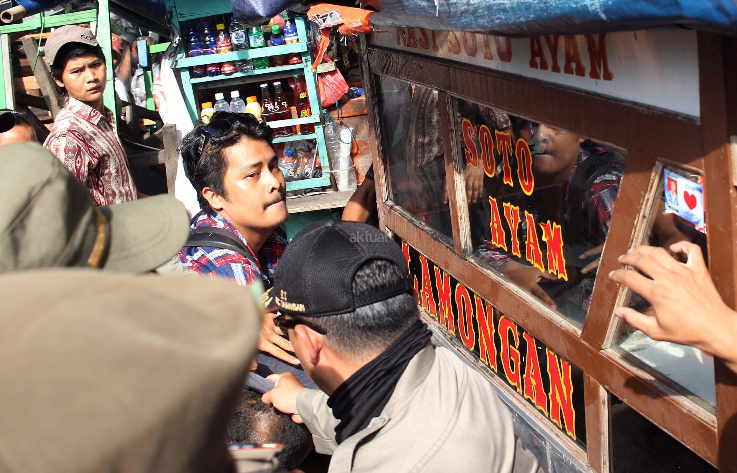Suasana ricuh terjadi saat Djarot meninjau kawasan tersebut. Pedagang yang kebanyakan ibu-ibu terlihat menangis dan memarahi personel Satpol PP yang telah mengangkut gerobak para pedagang. AKTUAL/Munzir