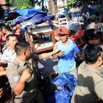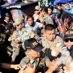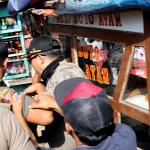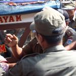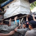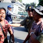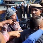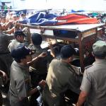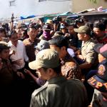 Pedagang yang kebanyakan ibu-ibu terlihat menangis dan memarahi personel Satpol PP yang telah mengangkut gerobak para pedagang.