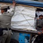 Puluhan personel Satpol PP mengangkut paksa gerobak para pedagang kaki lima yang sedang tidak berjualan di samping Stasiun Kota, Jakarta Barat, Selasa (25/10/2016). Sementara itu, Djarot ikut serta di dalam rombongan Satpol PP dan meninjau penertiban dan suasana ricuh terjadi saat Djarot meninjau kawasan tersebut. Pedagang yang kebanyakan ibu-ibu terlihat menangis dan memarahi personel Satpol PP yang telah mengangkut gerobak para pedagang.
