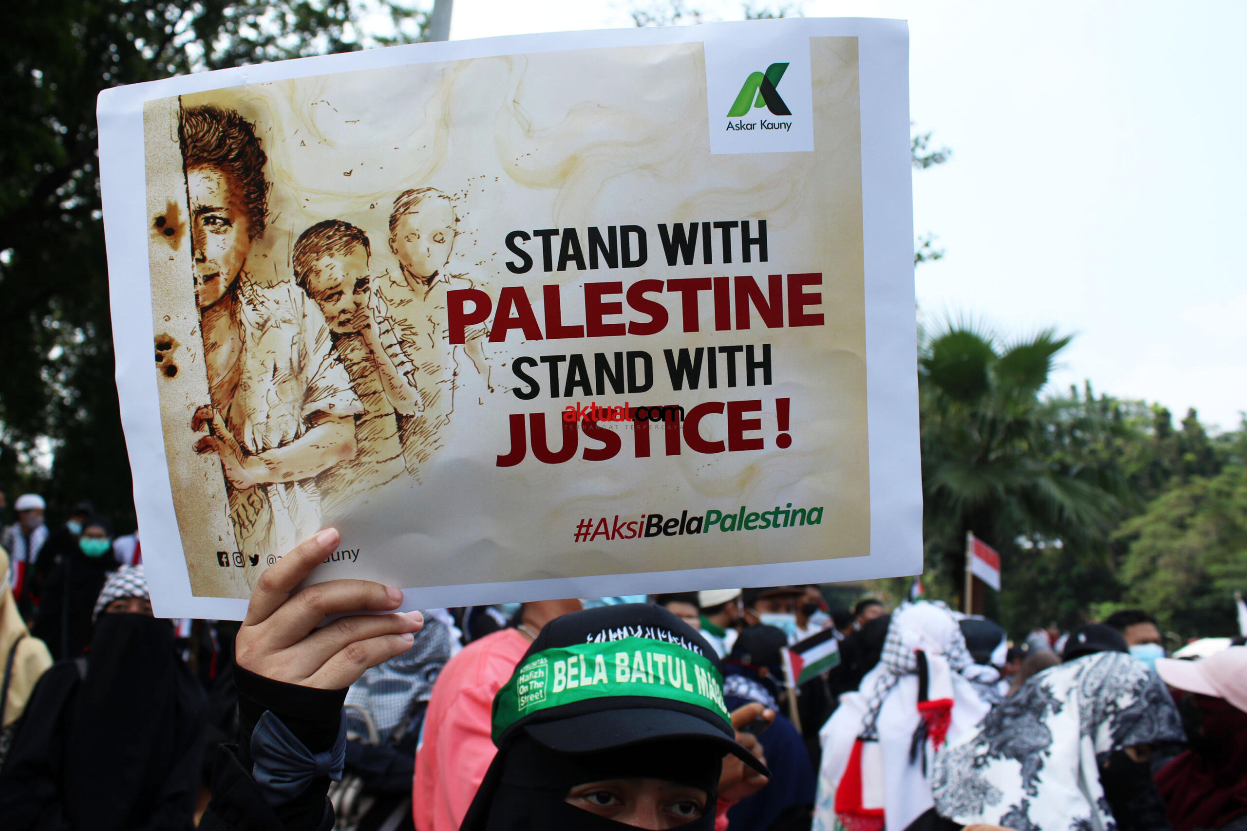 BerandaLensa AktualBeragam Poster Kecaman Untuk Israel dalam Aksi Peduli Palestina