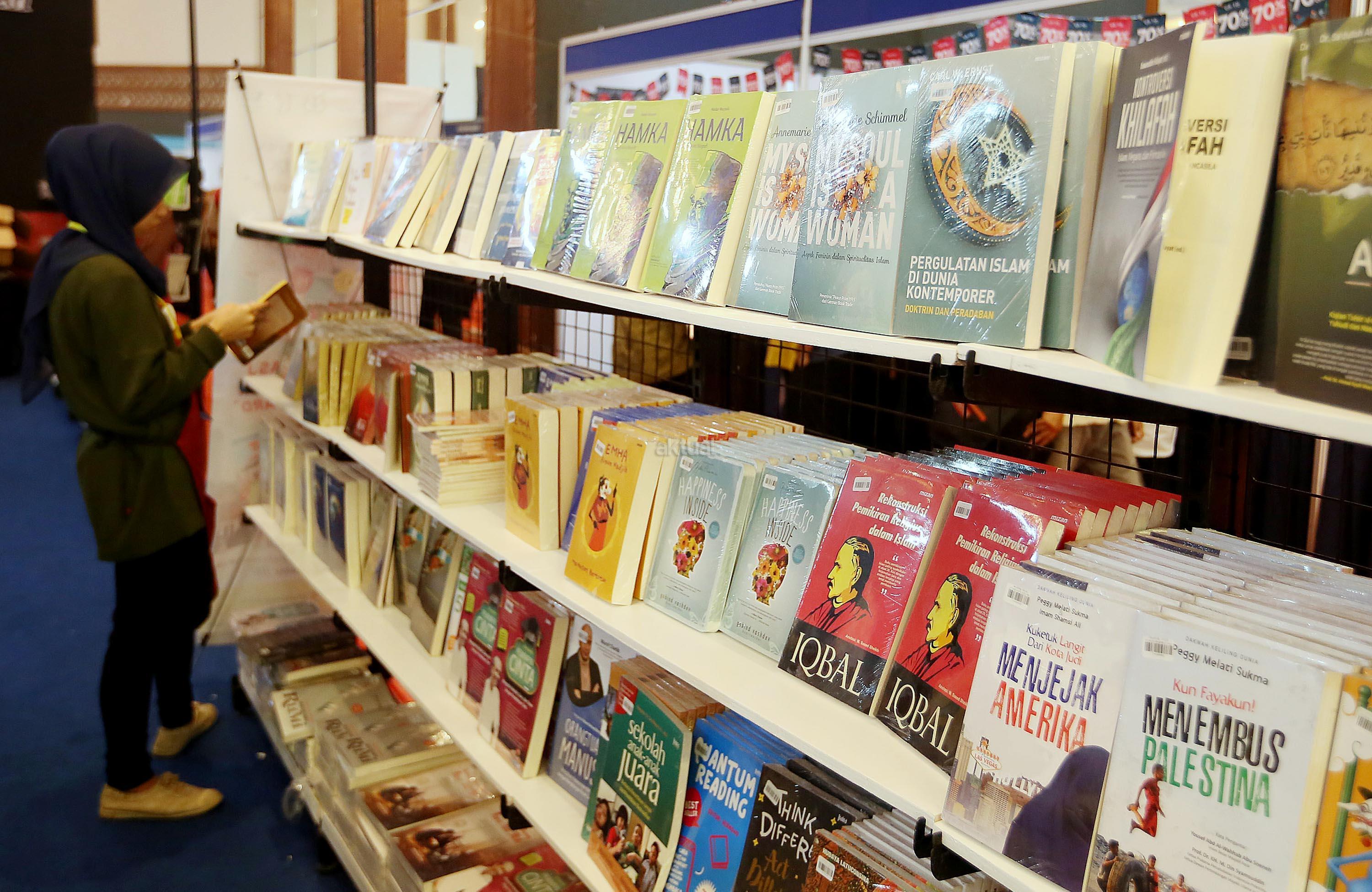 Seorang pengunjung melihat buku dalam pameran Indonesia International Book Fair (IIBF) 2017 di JCC, Jakarta, Jumat (8/9/2017). Perhelalatan IIBF yang diselenggarakan setiap tahunnya bertujuan meningkatkan dunia literasi di Indonesia. AKTUAL/Munzir