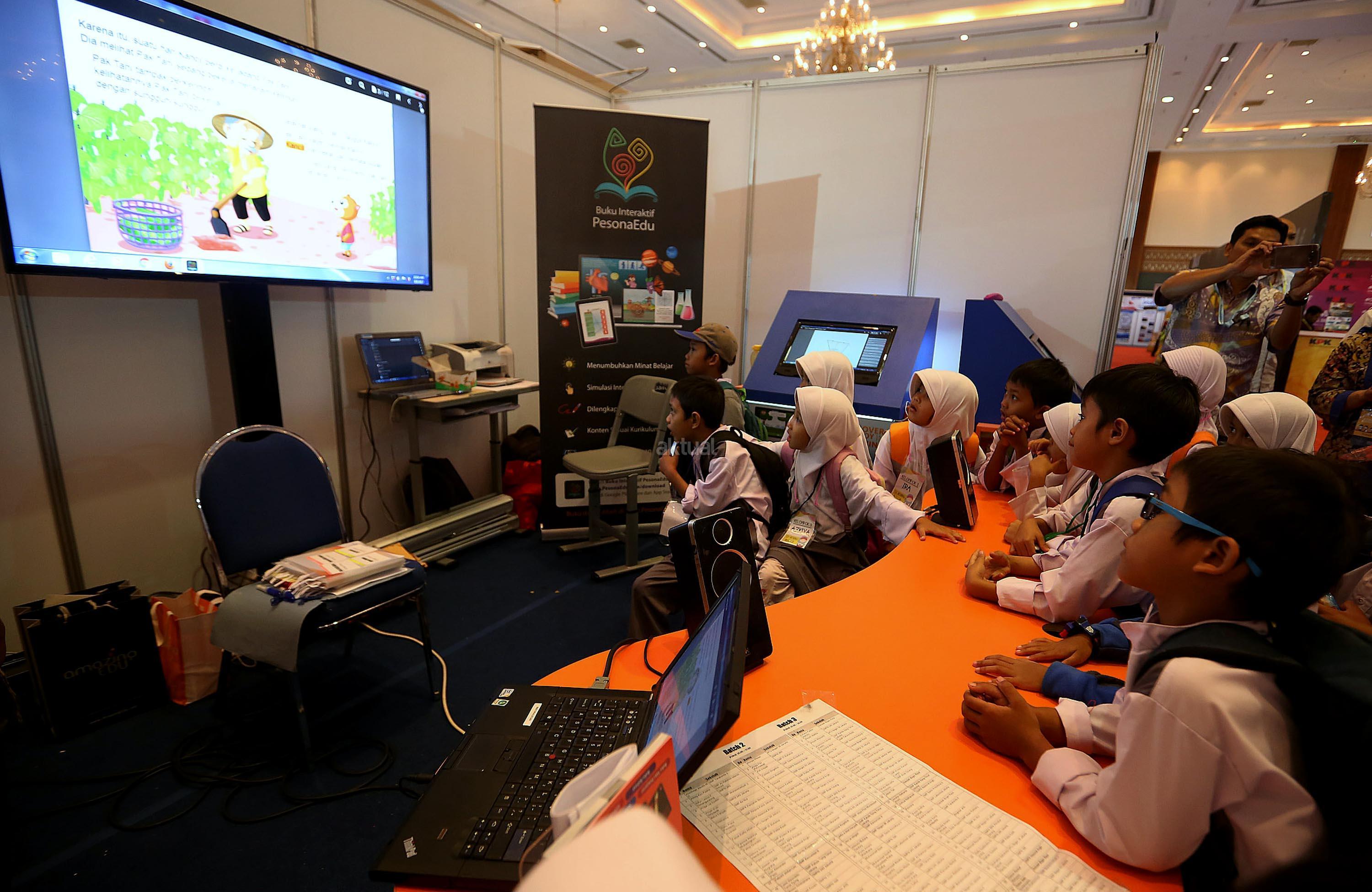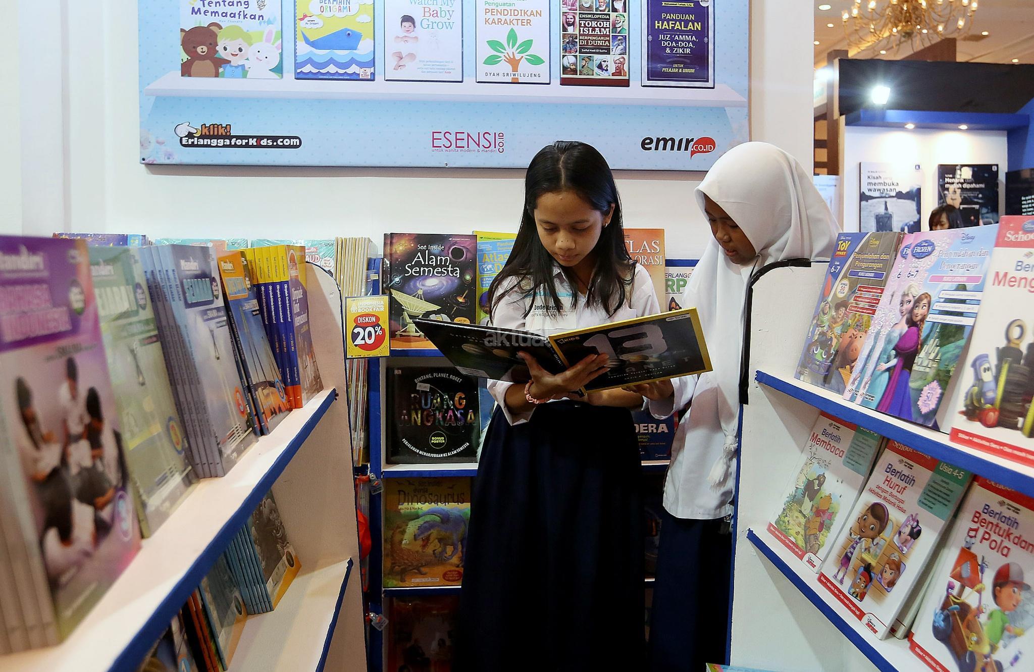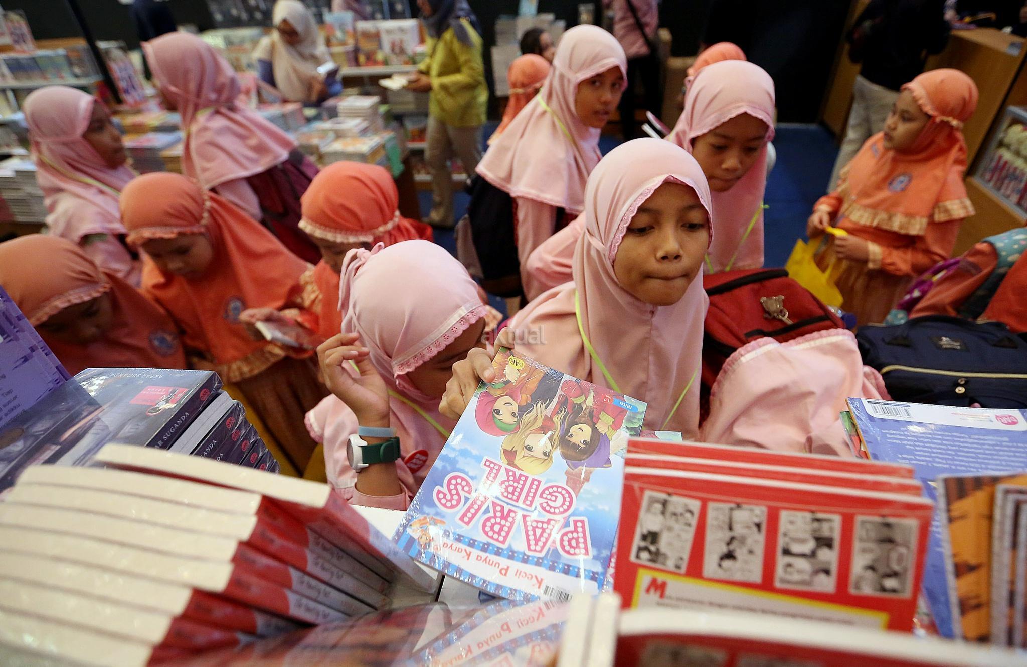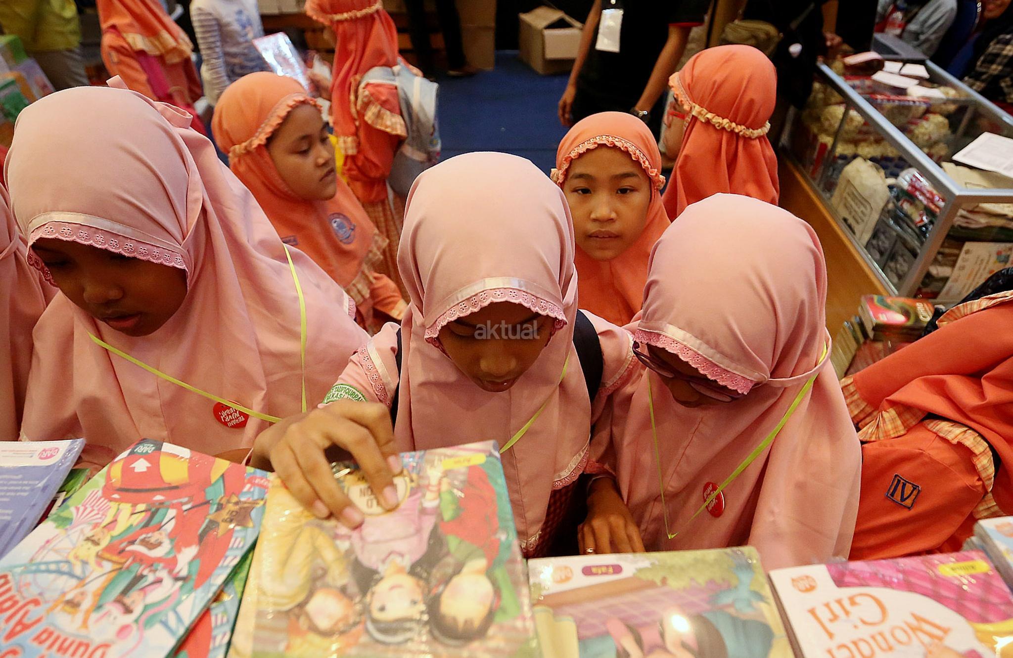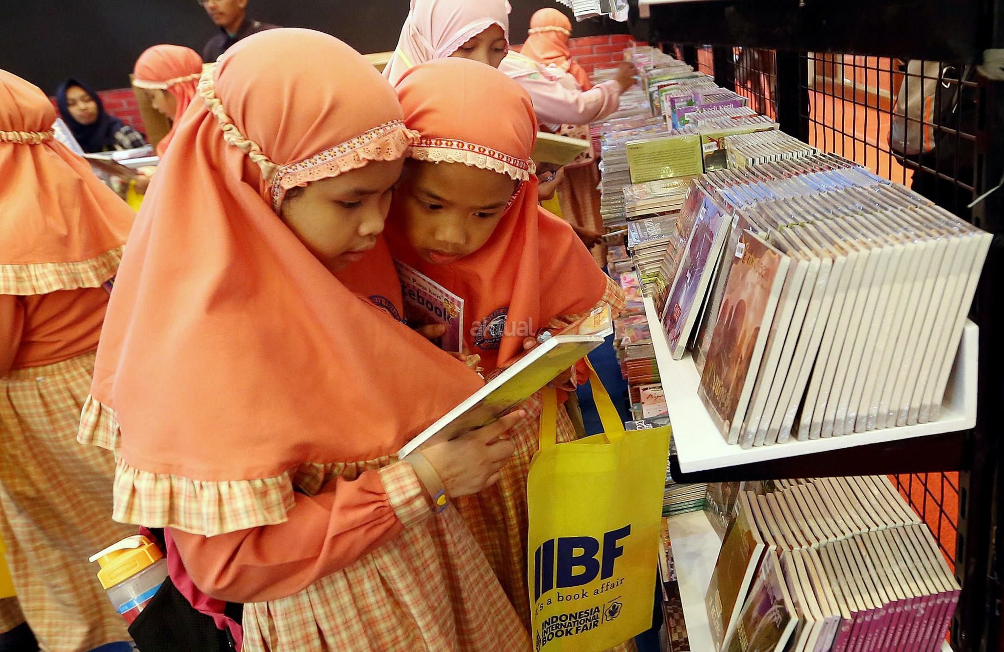 Sejumlah pelajar memadati pameran Indonesia International Book Fair 2017 di JCC, Jakarta, Jumat (8/9/2017). Perhelalatan IIBF yang diselenggarakan setiap tahunnya bertujuan meningkatkan dunia literasi di Indonesia. AKTUAL/Munzir