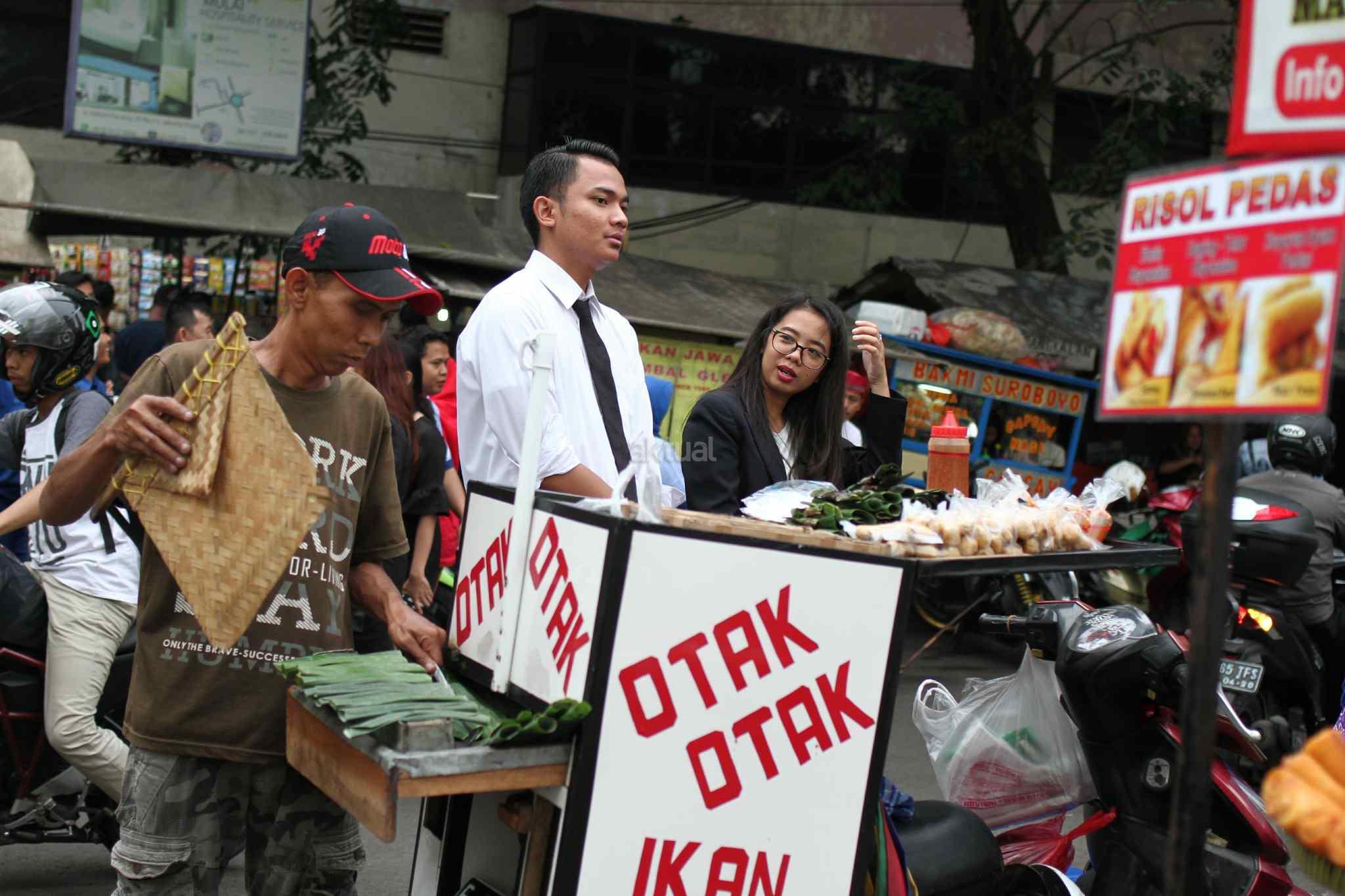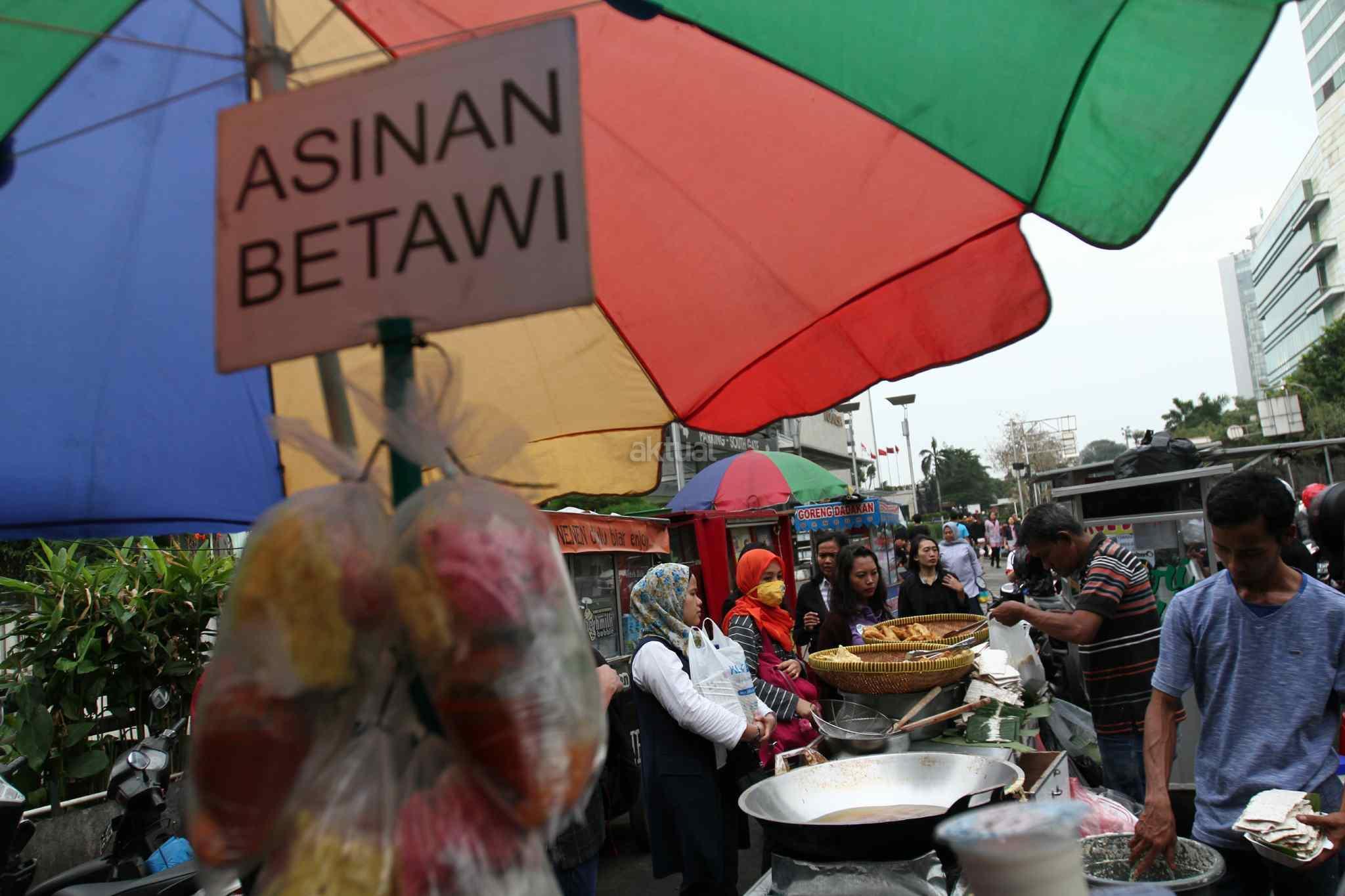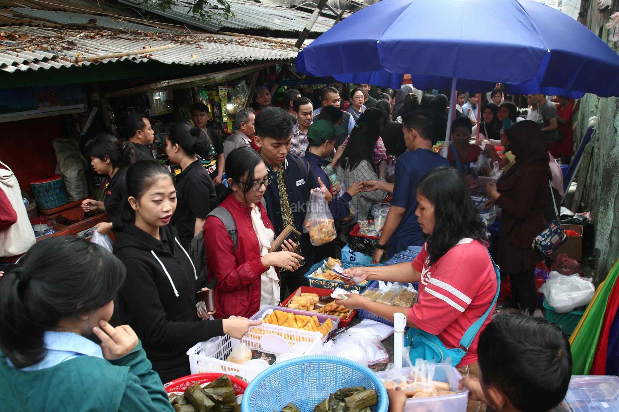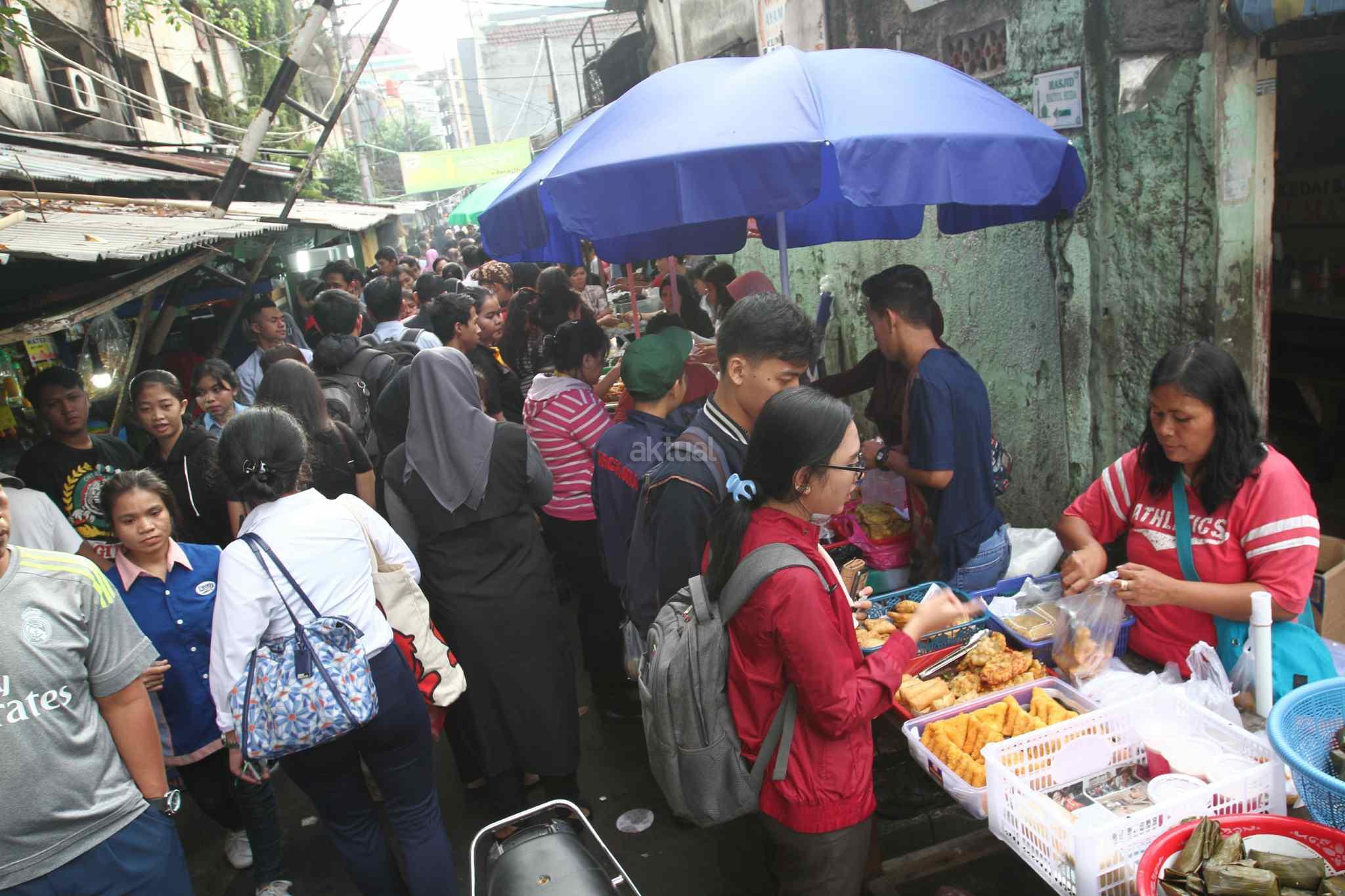 Warga dan pekerja memburu menu berbuka puasa di kawasan Tanah Abang, Jakarta Pusat, Senin (29/5). Menjadi cerita tersendiri di bulan Ramadan menjelang berbuka umat muslim mempersiapkan menu berbuka puasa untuk dirumah maupun di kantor. AKTUAL/Tino Oktaviano