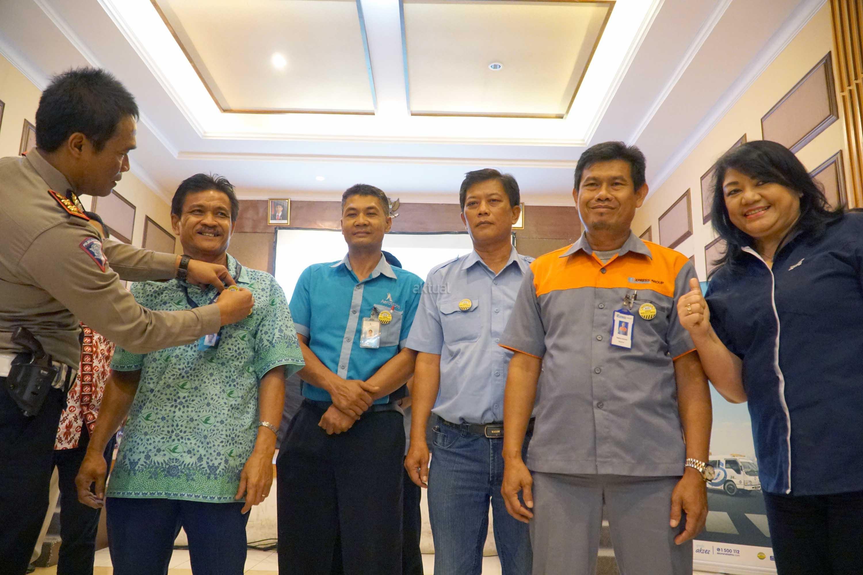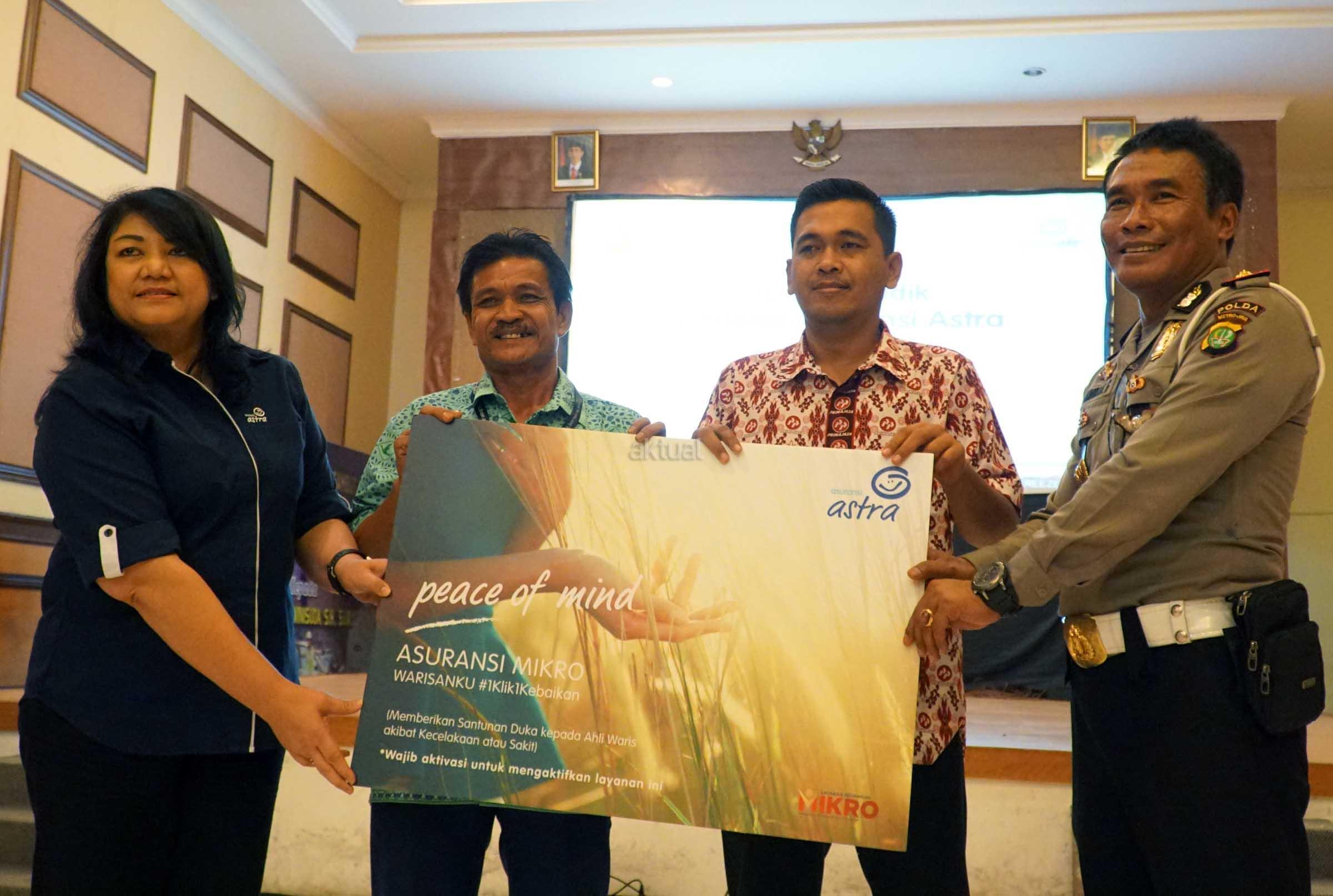 Chief Corporate Services Officer Asuransi Astra, Ida R. M. Sigalingging (kiri) bersama Kasubdit Dikyasa Ditlantas Polda Metro Jaya, AKBP Bambang Gunawan,S.Pd,MH menyerahkan secara simbolis Perlindungan berbentuk asuransi mikro kepada perwakilan sopir bus angkutan mudik yang ada di wilayah Jabodetabek di TMC.Polda Metro Jaya,Sabtu (20/5).Menjelang bulan Ramadan 1438H/2017 Asuransi Astra menyiapkan 100 miliar rupiah untuk melindungi ribuan sopir bus angkutan mudik dari berbagai Perusahaan Otobus (PO) yang ada di wilayah Jabodetabek. Selain memberikan perlindungan asuransi kecelakaan diri, #BerkahMudik Asuransi Astra juga membekali 100 sopir bus lainnya dengan seminar safety driving yang bertujuan untuk memperkaya pengetahuan mereka agar dapat mengurangi angka kecelakaan lalu lintas terutama saat musim mudik yang biasanya banyak memakan korban jiwa.Menurut data dari Korlantas Polri, telah terjadi 96.635 kasus kecelakaan lalu lintas selama tahun 2016 atau meningkat 8,7% dari tahun sebelumnya. AKTUAL/Eko S Hilman