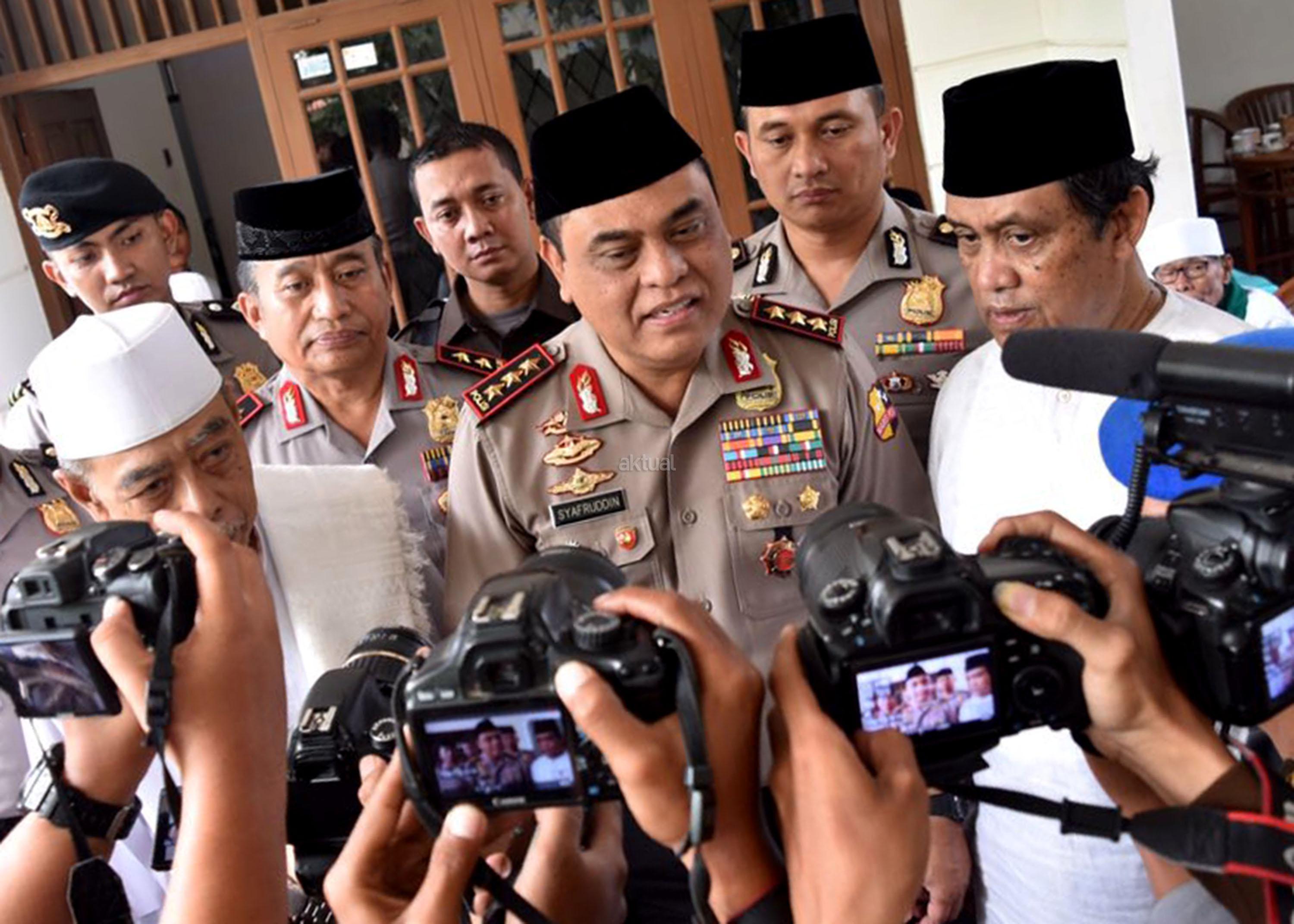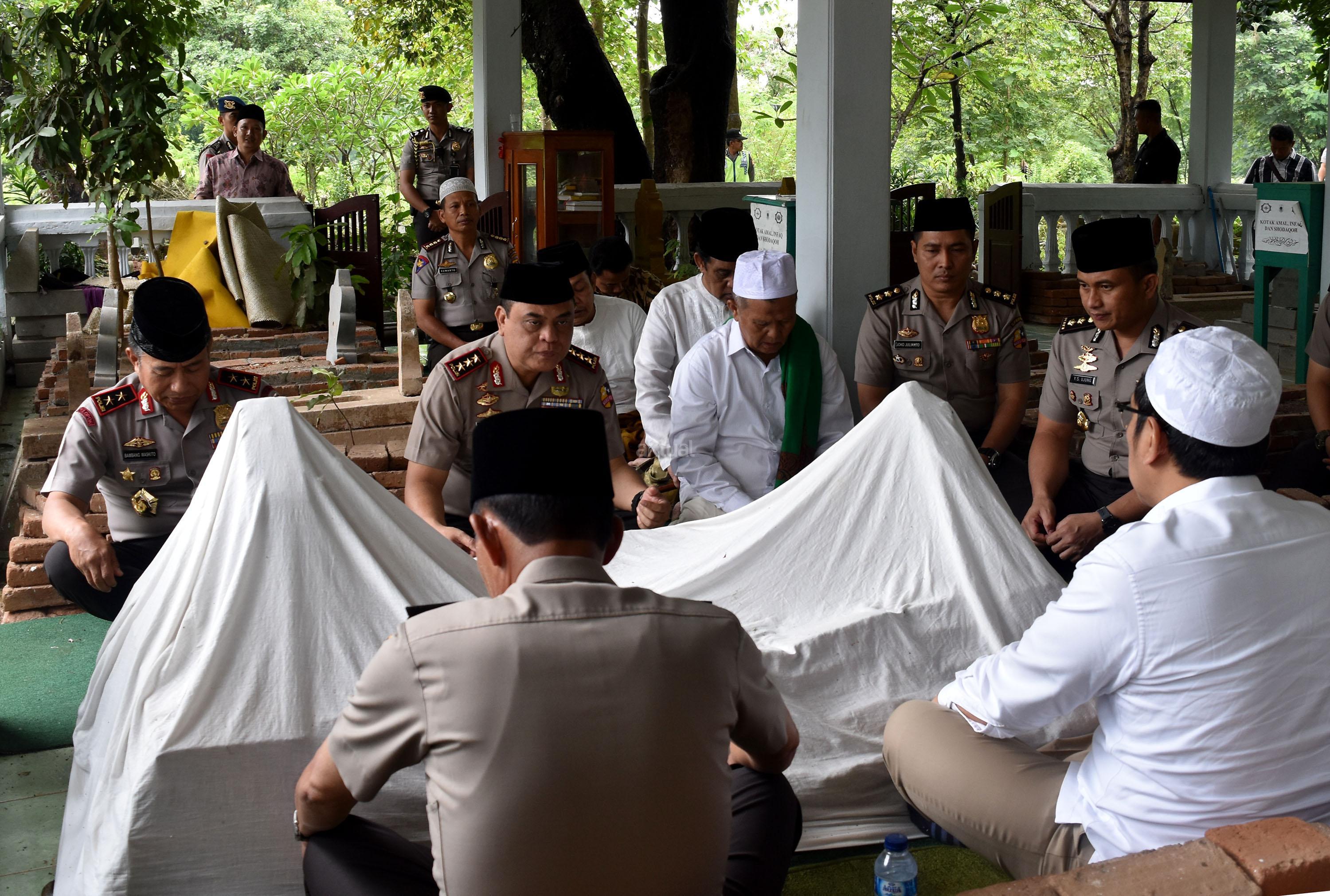 Wakapolri Komjen Pol. Syafruddin saat berziarah di makam Gajah Ngambung saat mengunjungi Ponpes Buntet di Astanajapura, Cirebon, Jawa Barat, Jumat (25/11). Dalam kunjungannya Wakapolri melakukan ziarah di komplek pemakaman Gajah Ngambung serta berdialog dengan para Kyai untuk menjaga keutuhan NKRI dan tidak terpancing isu yang berkaitan dengan SARA. AKTUAL/HO