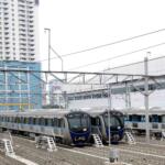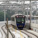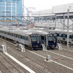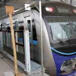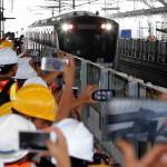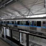 Kereta mass rapid transit (MRT) saat tiba di depo MRT Lebak Bulus, Jakarta, Selasa (28/8). Progres konstruksi moda transportasi mass rapid transit (MRT) Jakarta fase I rute Lebak Bulus-Bundaran Hotel Indonesia (HI) kini mencapai hampir 96 persen dan Selama lima minggu, kereta akan bertahap diuji coba dari Depo Lebak Bulus hingga ke titik naik penumpang di stasiun. AKTUAL/Tino Oktaviano