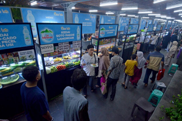 Warga melipir ke bazar Ramadhan di halaman Masjid Istiqlal Jakarta. Bazar Ramadhan menjual berbagai makanan dan minuman untuk berbuka puasa.