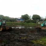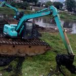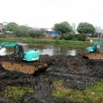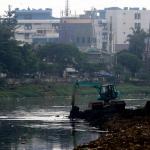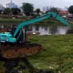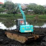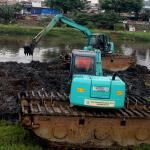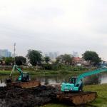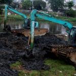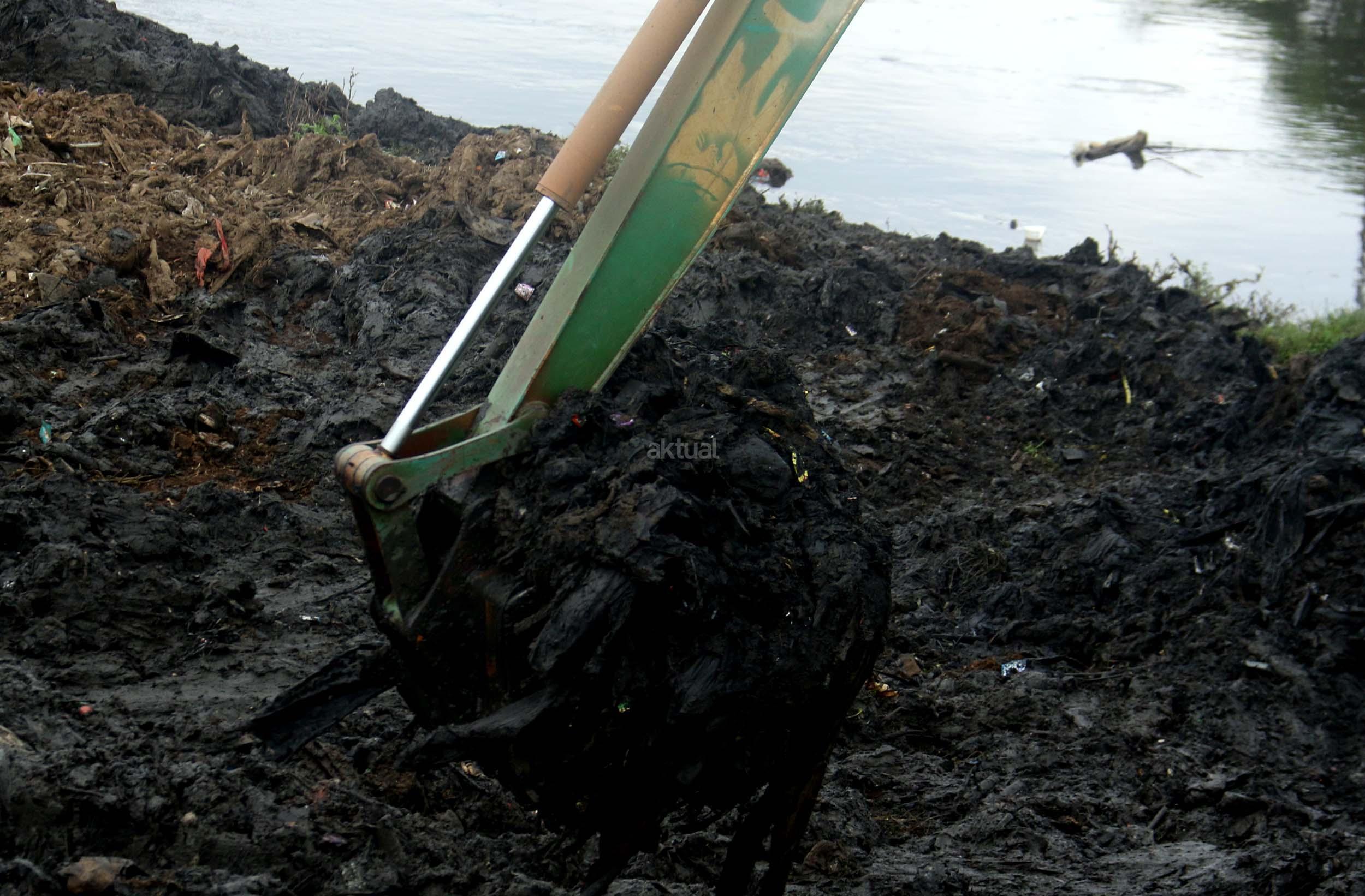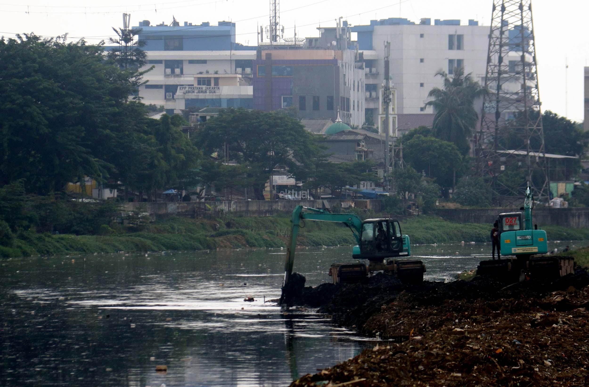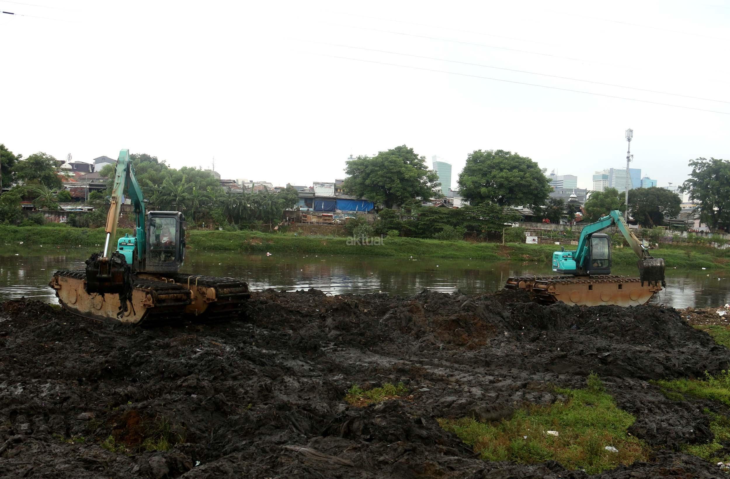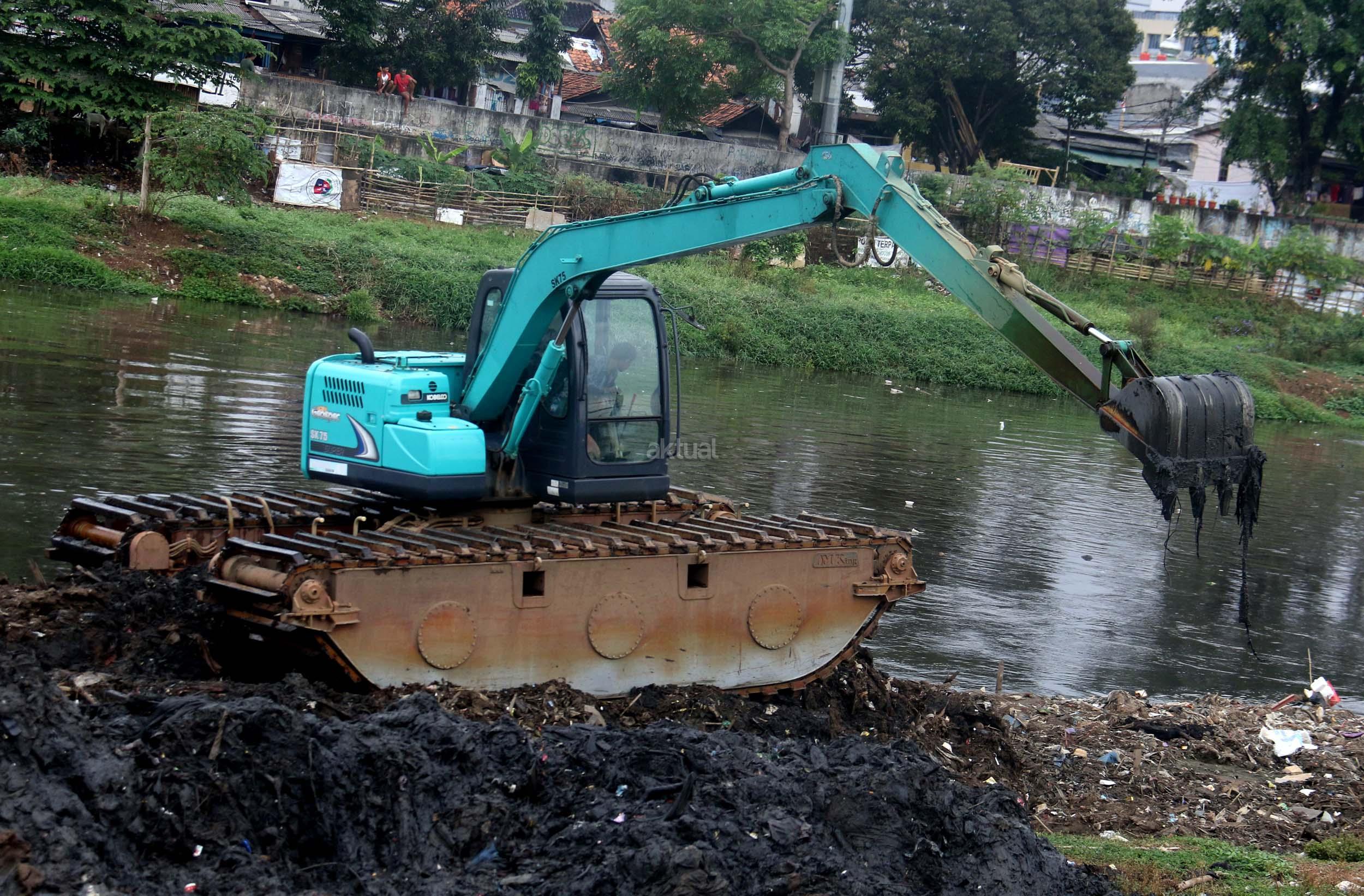 Petugas Dinas Bina Marga dan Pengairan mengoperasikan alat berat untuk mengangkut lumpur yang menumpuk di aliran sungai Ciliwung, di kawasan Tanah Abang, Jakarta, Jumat (6/1/2017). Normalisasi sungai tersebut sebagai langkah antisipasi banjir di musim hujan. AKTUAL/Munzir