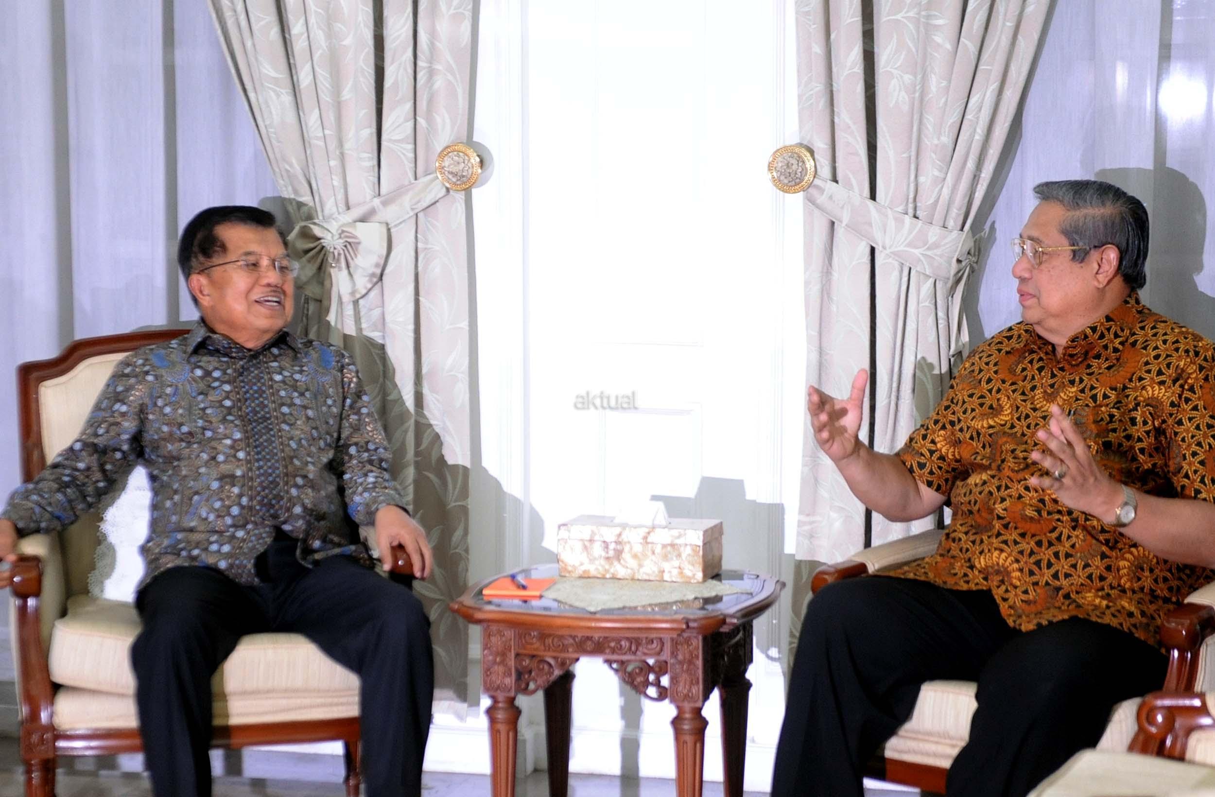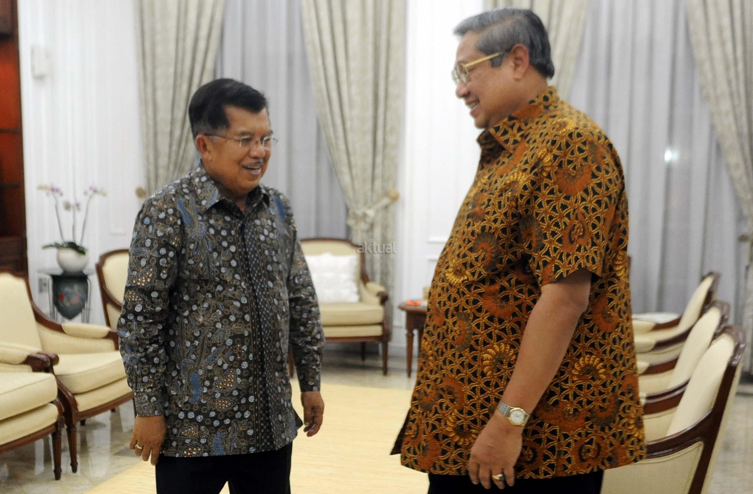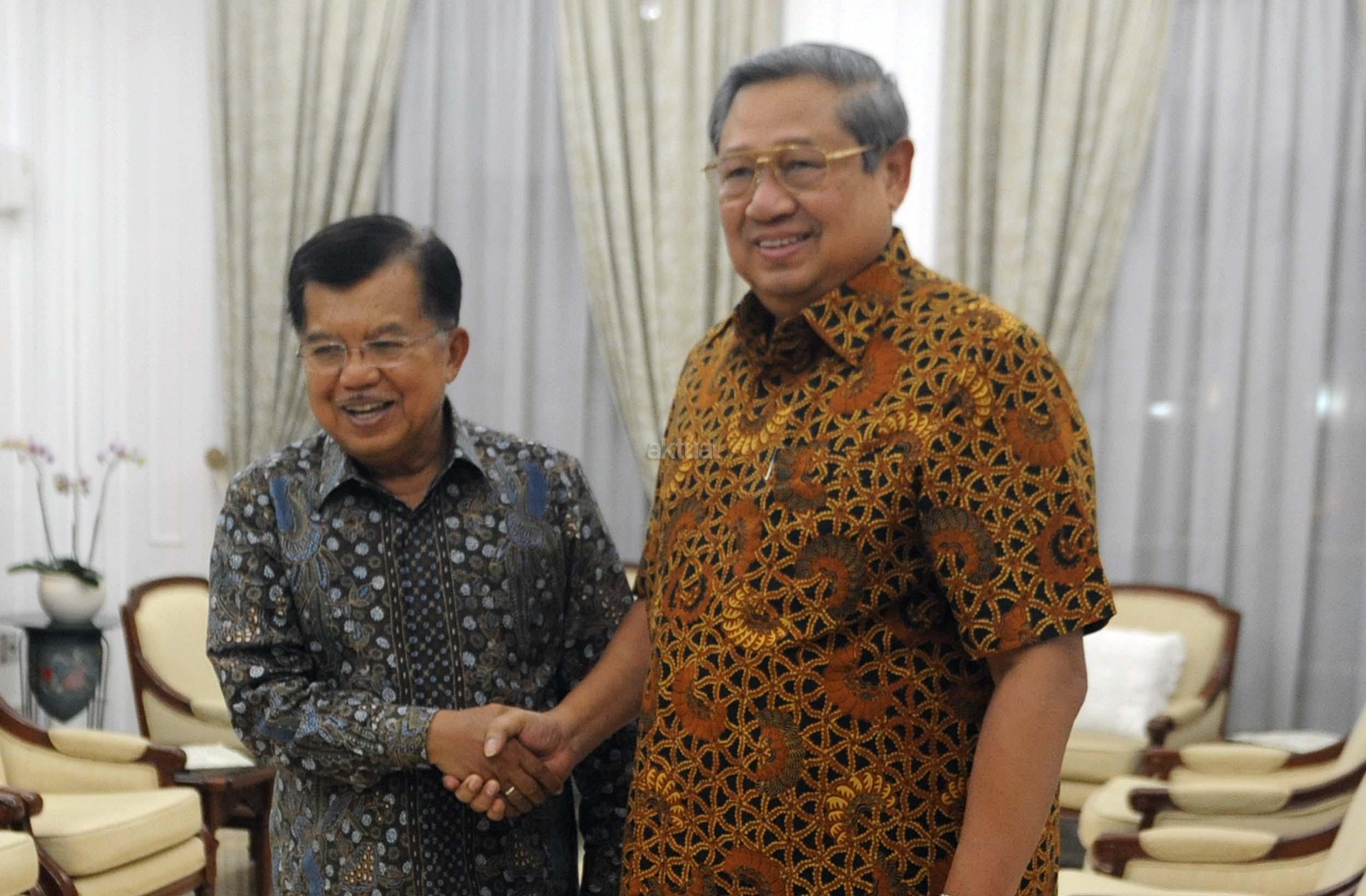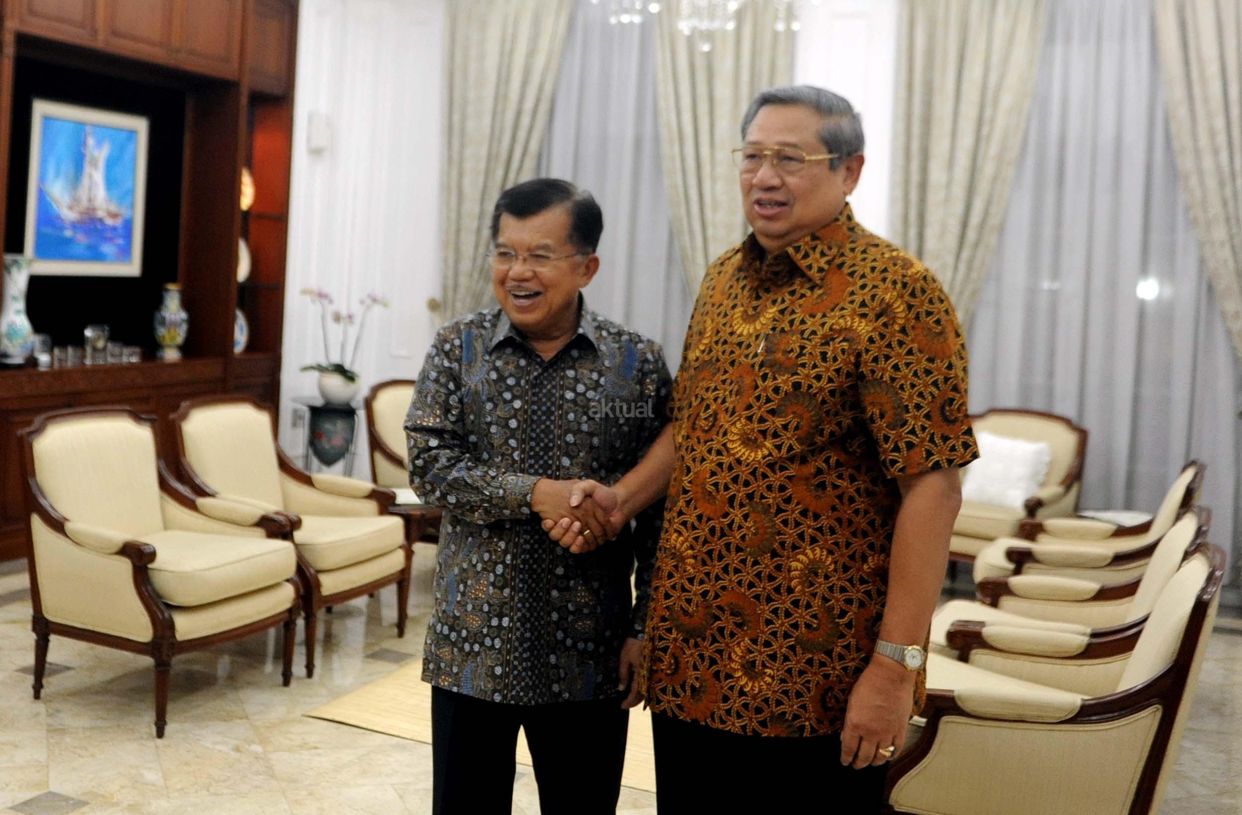 Wakil Presiden Jusuf Kalla bersalaman dengan Ketua Umum Partai Demokrat yang juga Presiden keenam Susilo Bambang Yudhoyono di rumah dinas Wakil Presiden Jusuf Kalla, Jakarta, Selasa (1/11/2016). Dalam pertemuannya dengan Susilo Bambang Yudhoyono (SBY) malam ini secara khusus membahas rencana demonstrasi besar-besaran yang akan dilakukan pada 4 November mendatang. AKTUAL/Munzir