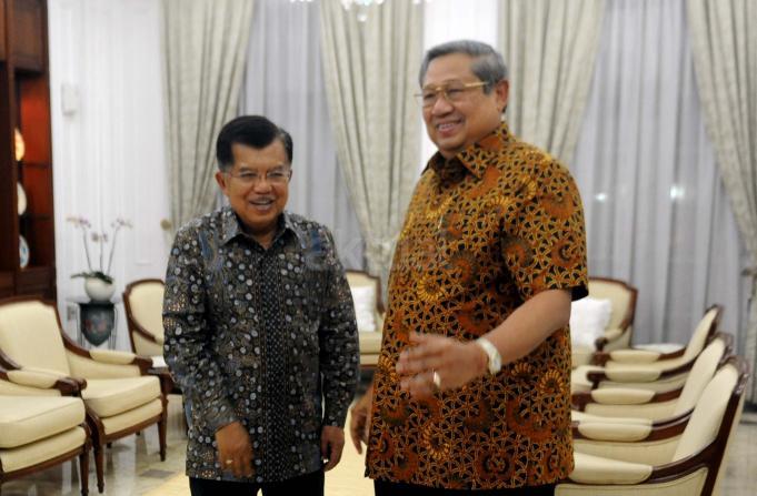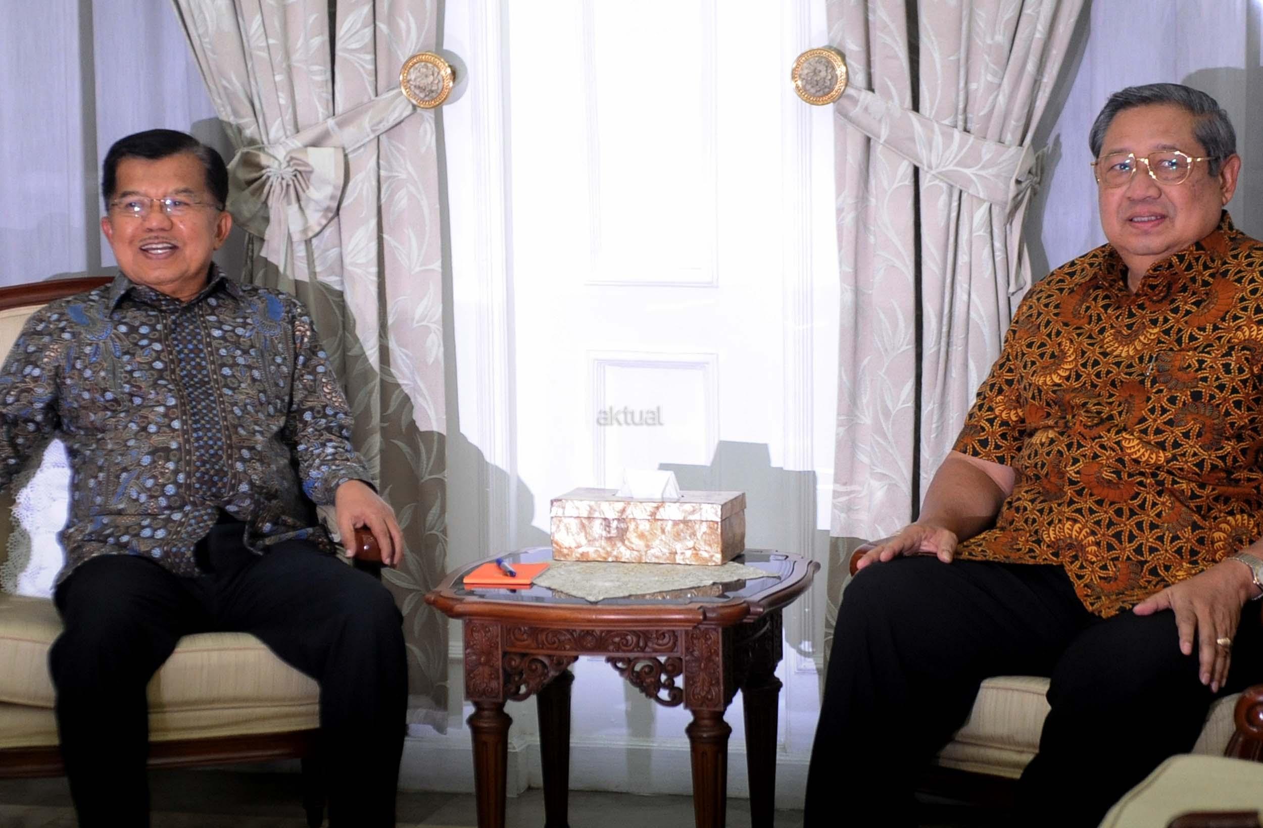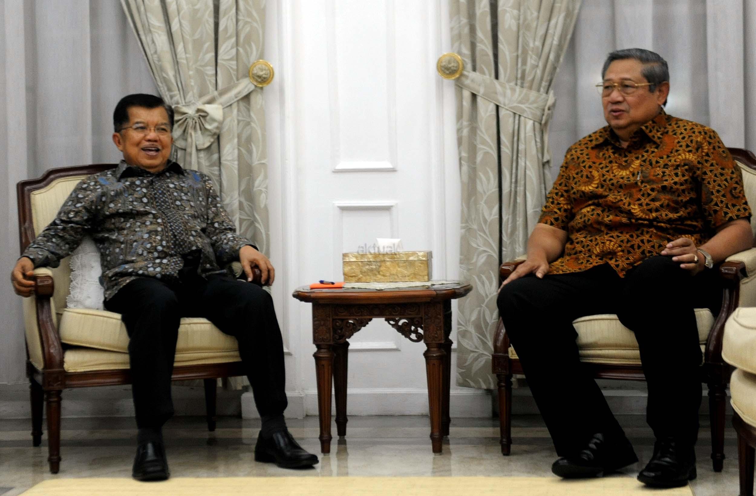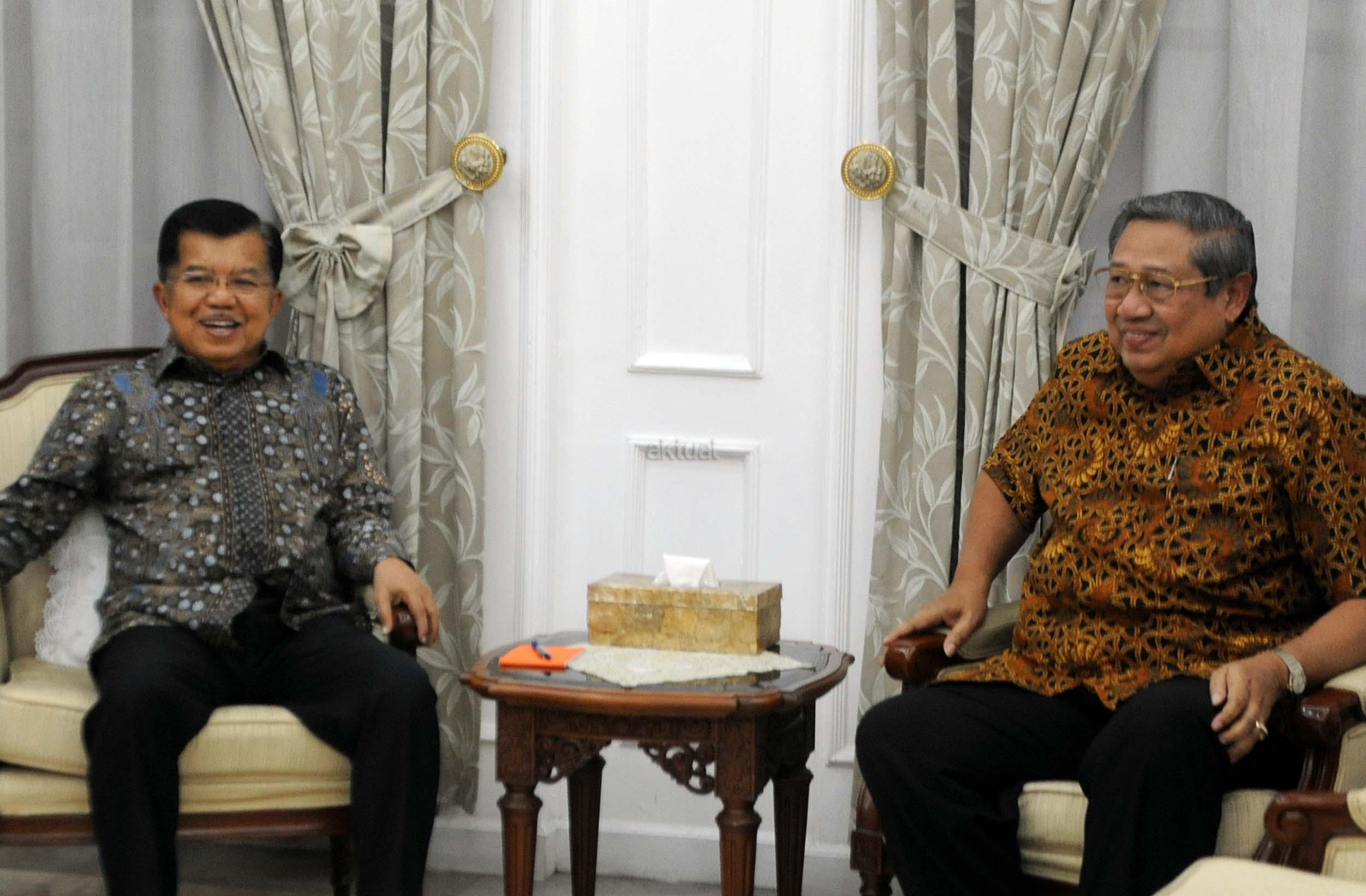 Wakil Presiden Jusuf Kalla bersalaman dengan Ketua Umum Partai Demokrat yang juga Presiden keenam Susilo Bambang Yudhoyono di rumah dinas Wakil Presiden Jusuf Kalla, Jakarta, Selasa (1/11/2016). Dalam pertemuannya dengan Susilo Bambang Yudhoyono (SBY) malam ini secara khusus membahas rencana demonstrasi besar-besaran yang akan dilakukan pada 4 November mendatang. AKTUAL/Munzir