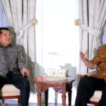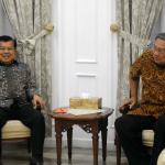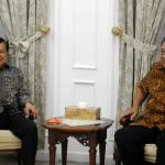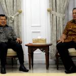 Wakil Presiden Jusuf Kalla bersalaman dengan Ketua Umum Partai Demokrat yang juga Presiden keenam Susilo Bambang Yudhoyono di rumah dinas Wakil Presiden Jusuf Kalla, Jakarta, Selasa (1/11/2016). Dalam pertemuannya dengan Susilo Bambang Yudhoyono (SBY) malam ini secara khusus membahas rencana demonstrasi besar-besaran yang akan dilakukan pada 4 November mendatang.