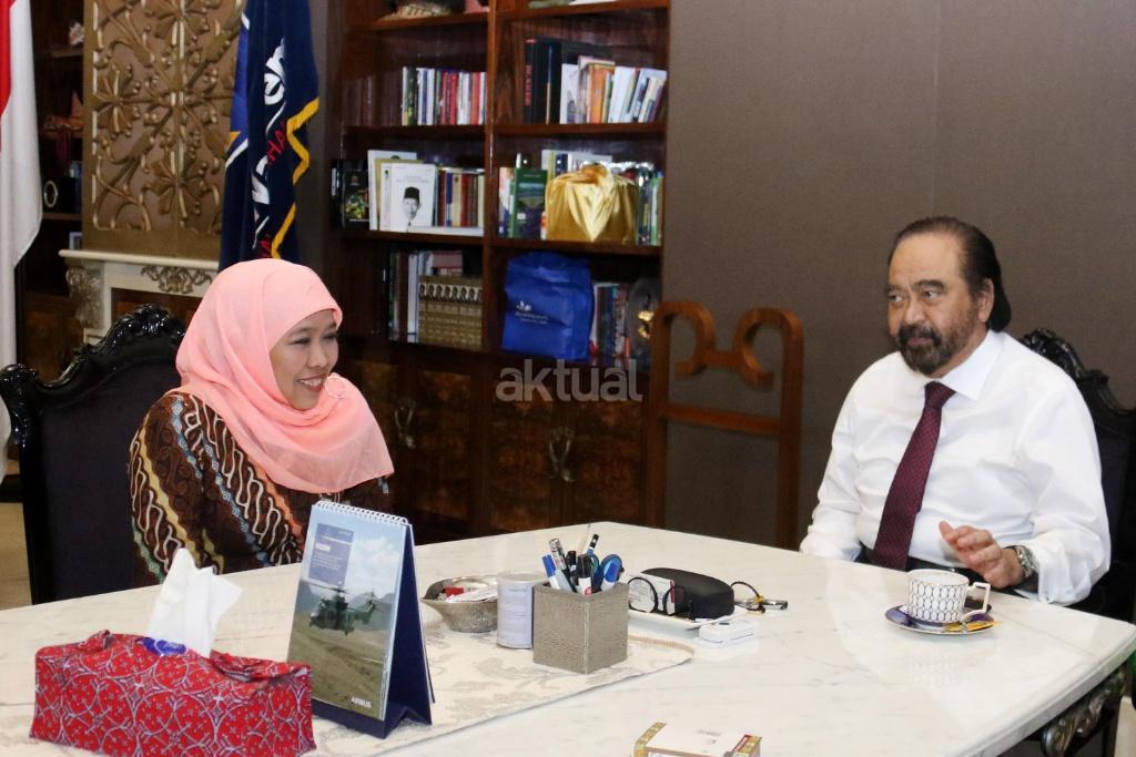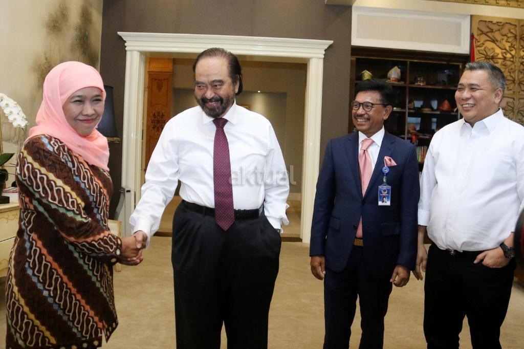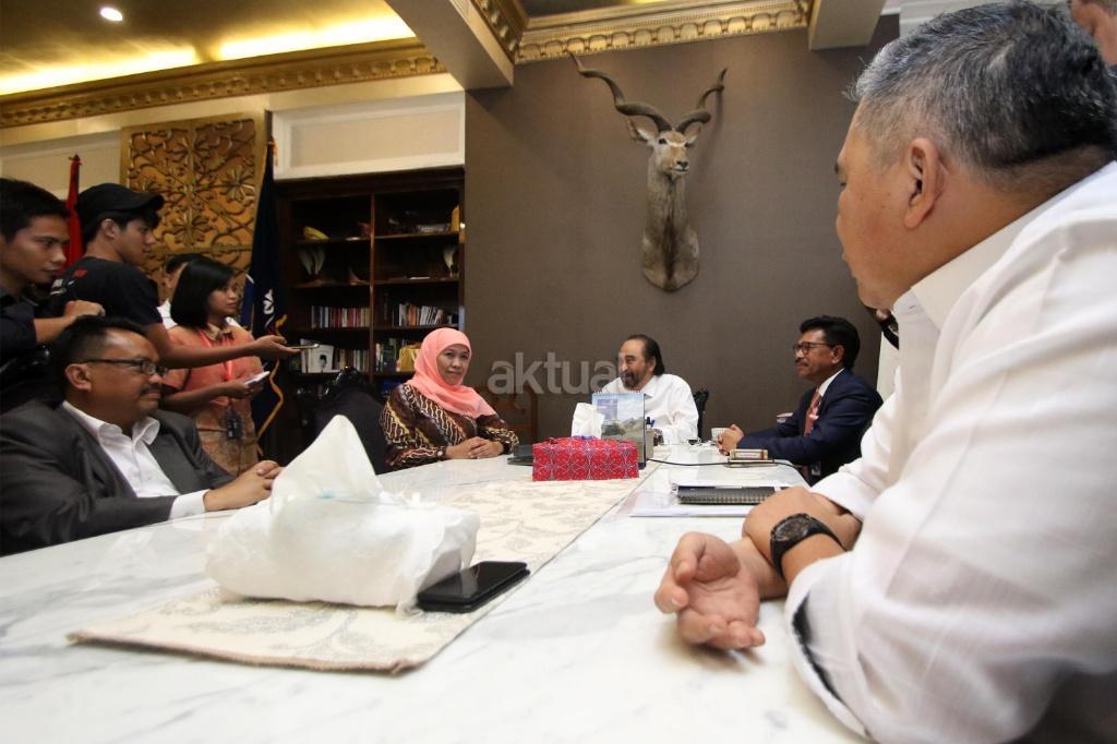 Bertemu Surya Paloh, Khofifah Bahas Pilgub Jatim 2018