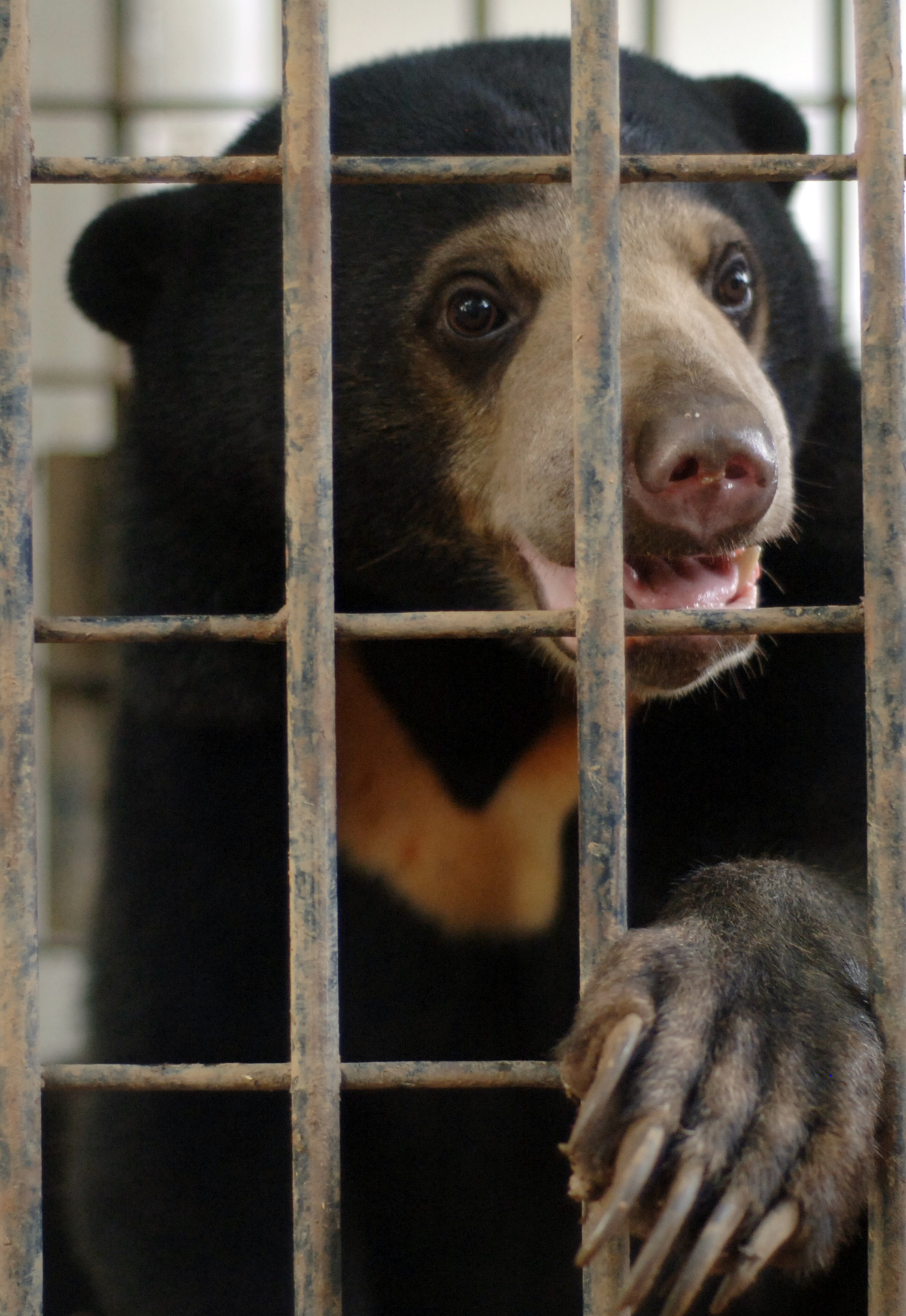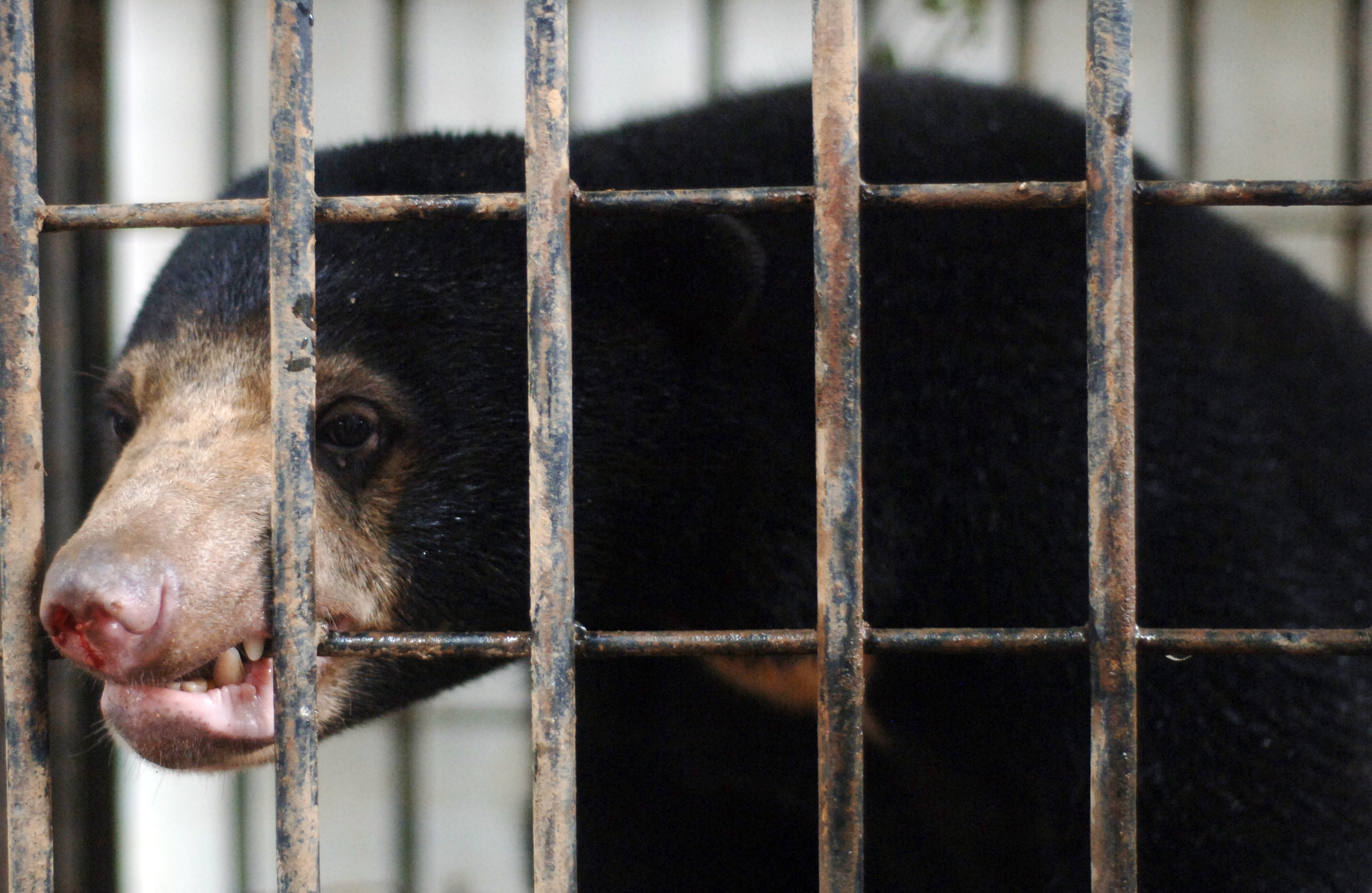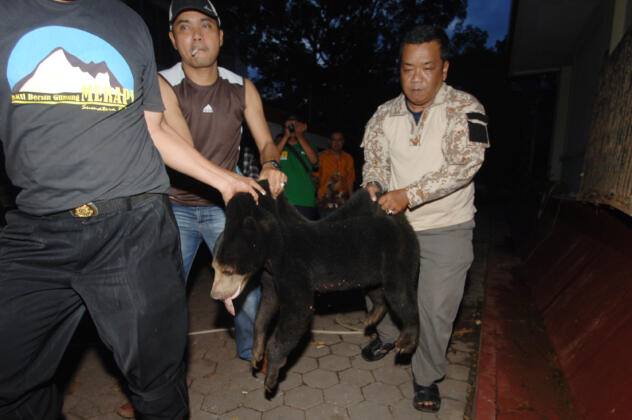 Petugas memindahkan seekor beruang madu (Helarctos malayanus) yang sudah dibius di kantor Balai Konservasi Sumber Daya Alam (BKSDA) Sumatera Barat, Padang, Sumbar, Sabtu (9/1). Beruang madu berkelamin betina yang diperkirakan berusia belum sampai setahun tersebut ditangkap pada Jumat (8/1) karena kerap memasuki rumah warga di Arosuka, Kabupaten Solok. Dua ekor beruang madu lain masih dalam pengejaran petugas. ANTARA FOTO/Iggoy el Fitra/kye/16