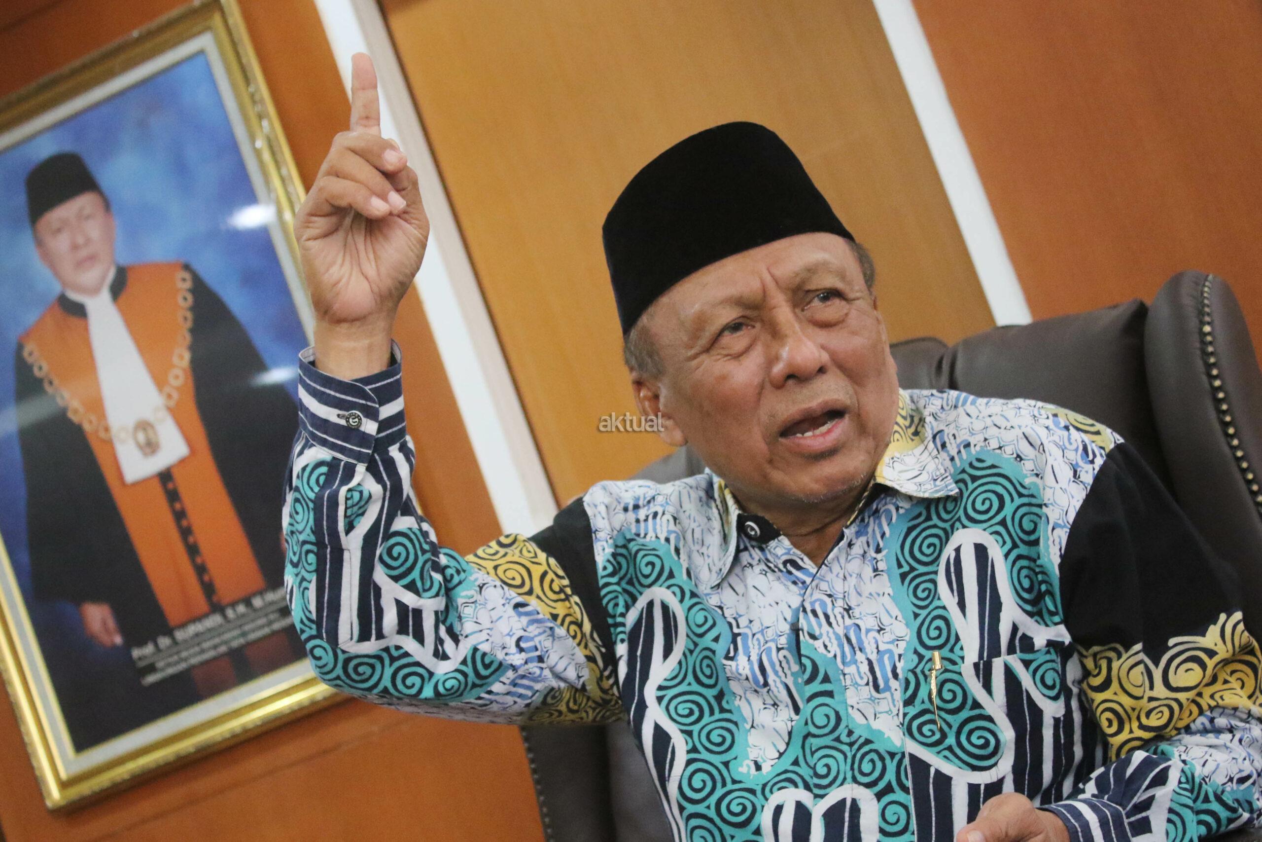 Prof Supandi tampak sedang merapihkan sejumlah dokumen dan buku dalam ruang kerja. Foto: Aktual / Ahmad Warnoto.