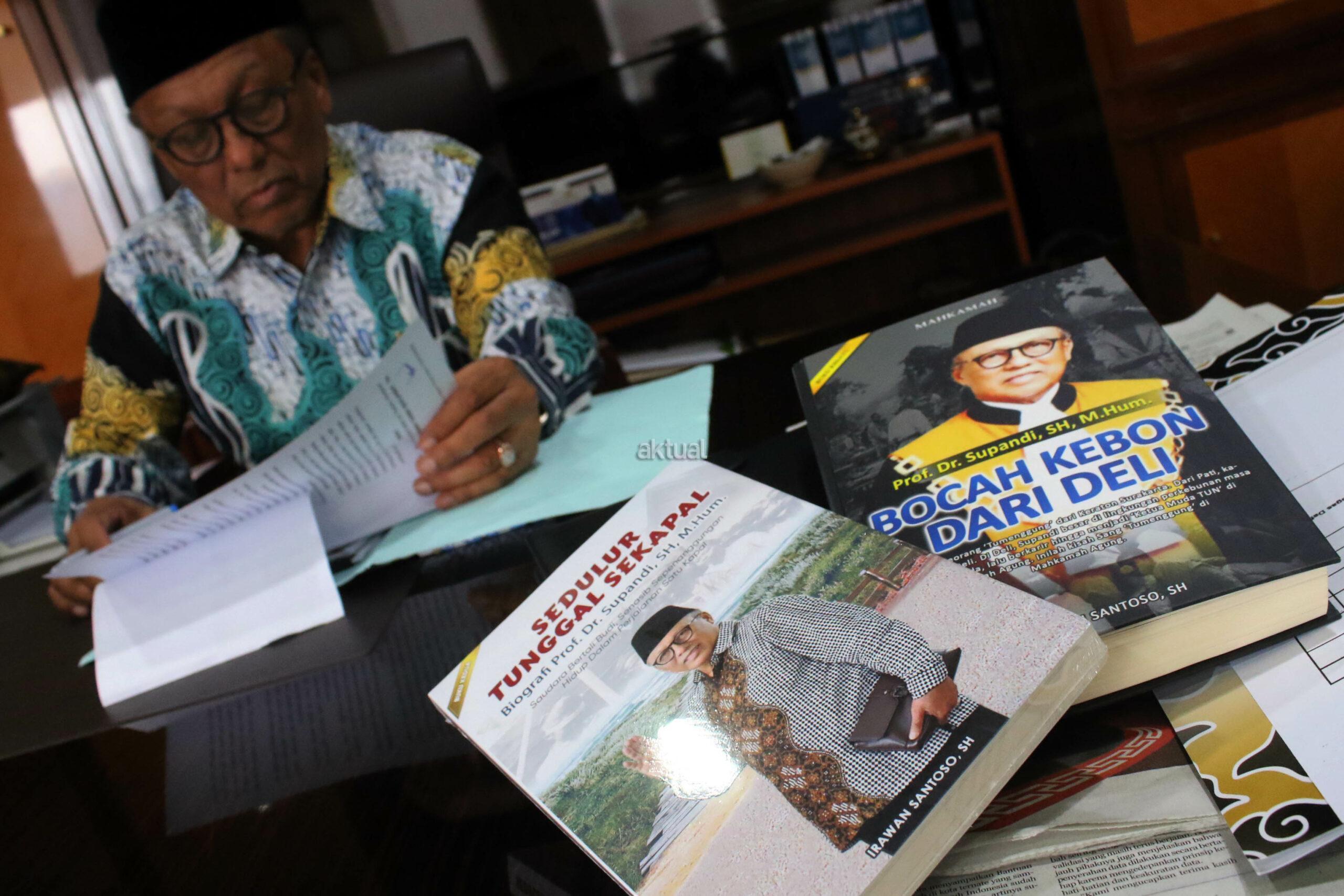 Prof Supandi saat ini telah menapaki usia 70 tahun. Pada masa-masa terakhir beliau di Mahkamah Agung, tim Aktual secara eksklusif diperkenan mengabadikan aktifitas tugas sembari mengkemasi sejumlah barang milik pribadi diruang kerja, Kamis (29/9).