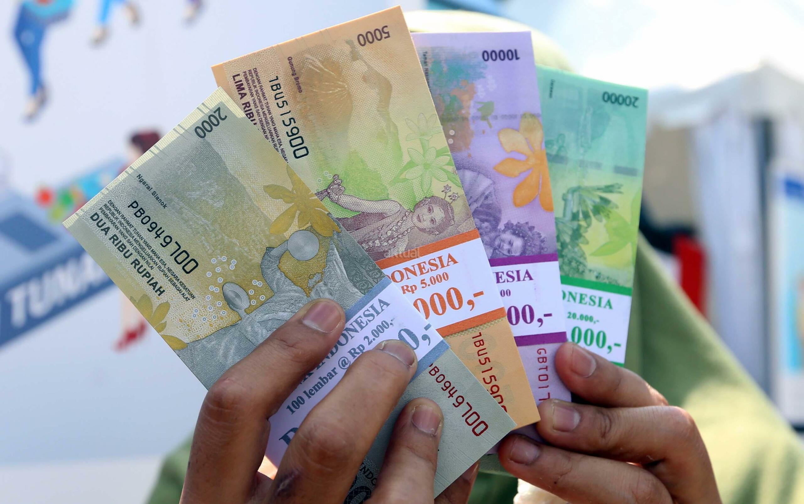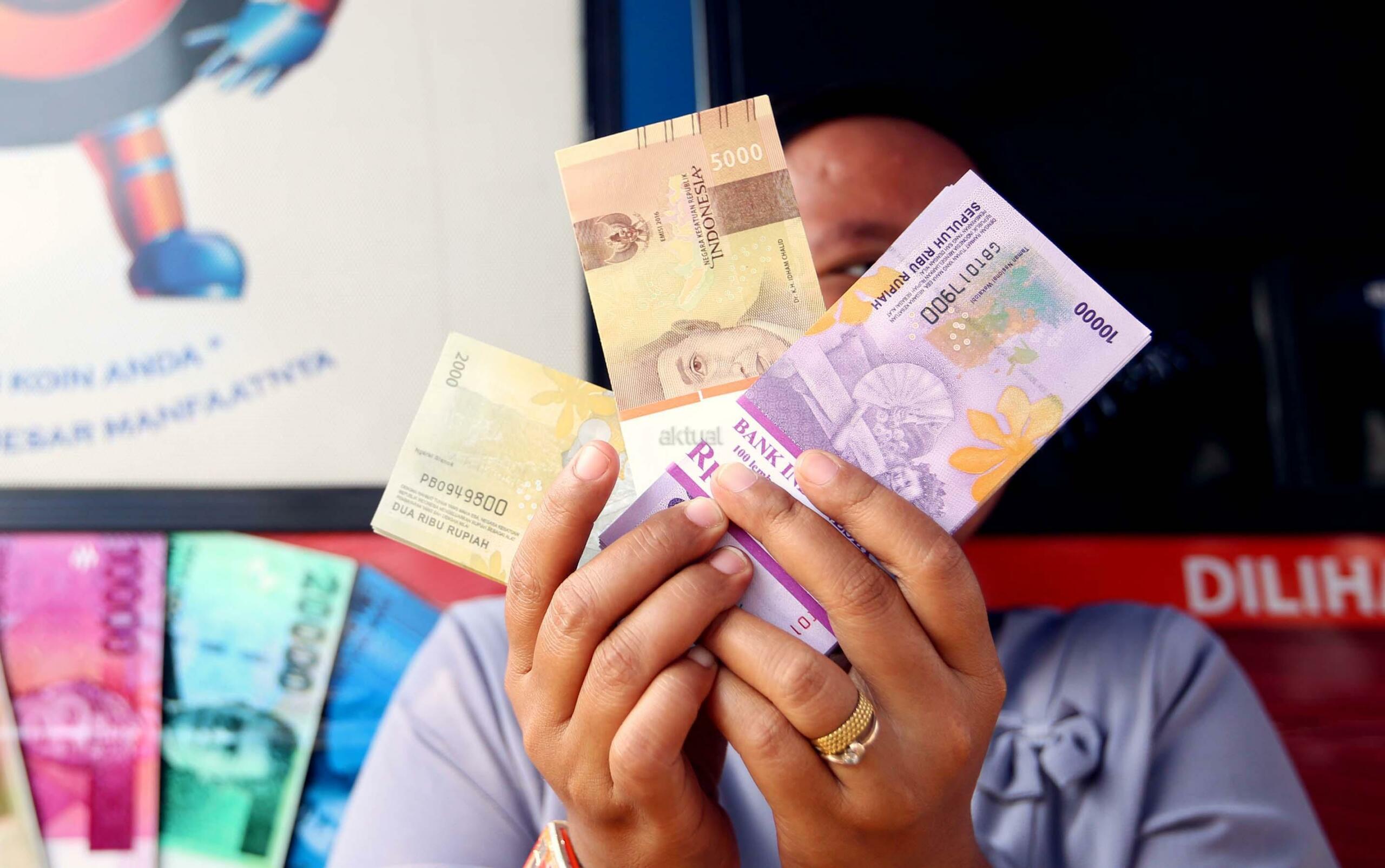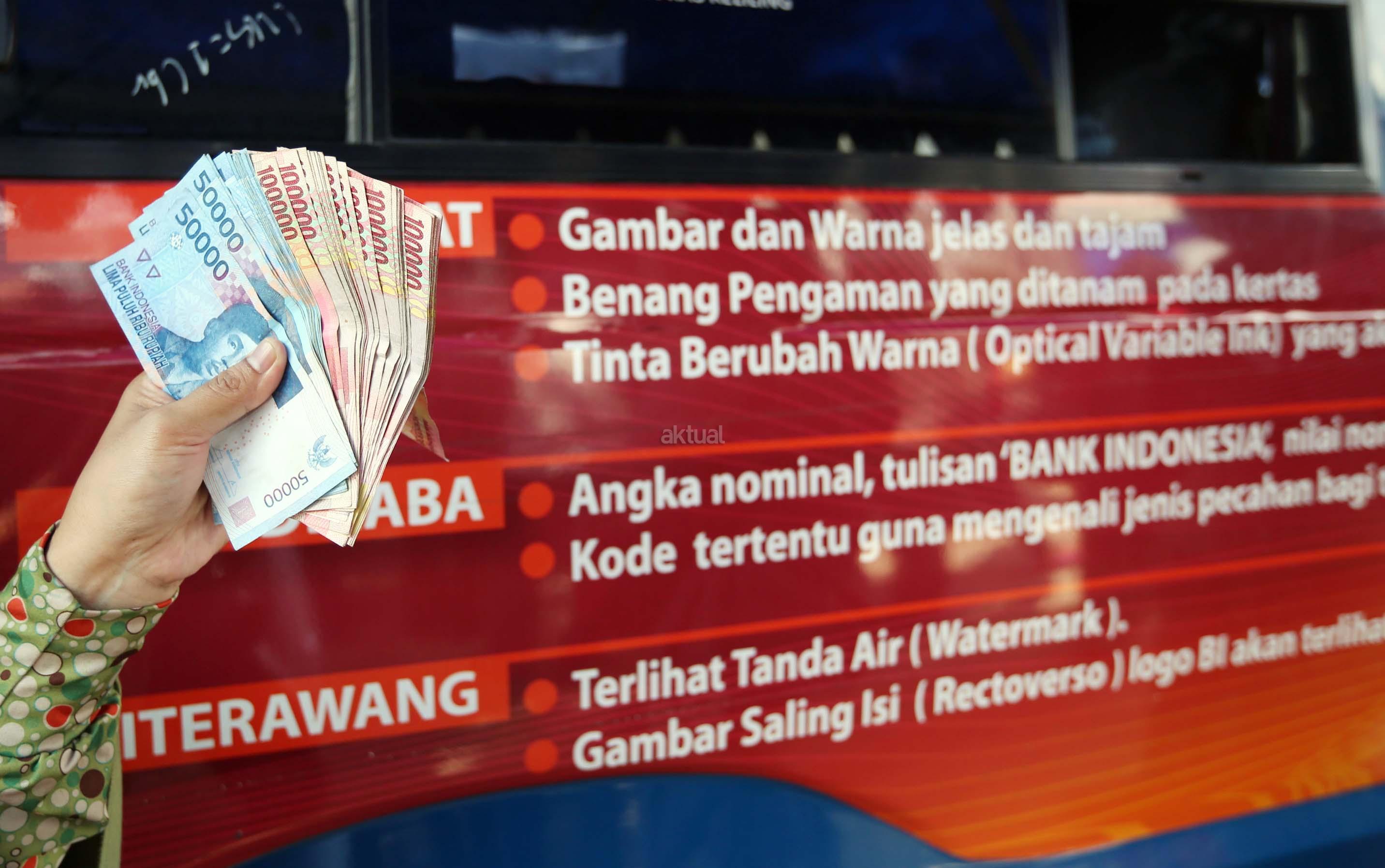 Warga menunjukkan uang pecahan yang ditukarkan dari mobil kas keliling Bank Indonesia di Lapangan IRTI, Monas, Jakarta, Selasa (13/6/2017). Bank Indonesia bersama 13 bank umum membuka gerai penukaran uang pecahan dengan penukaran maksimal Rp3,7 juta per orang hingga 16 Juni dalam rangka melayani kebutuhan masyarakat akan uang pecahan selama Ramadan dan hari raya Idul Fitri 2017. AKTUAL/Munzir
