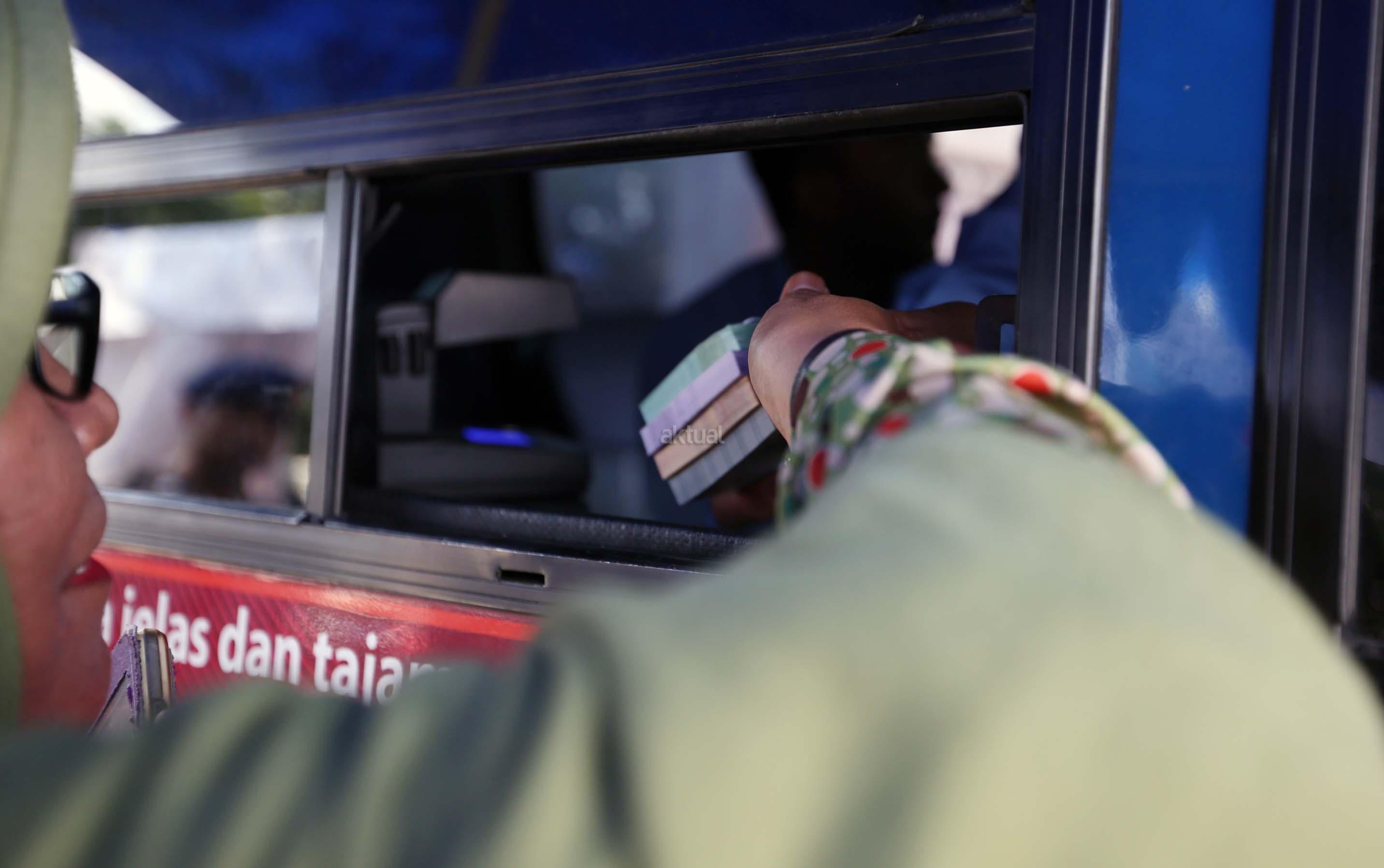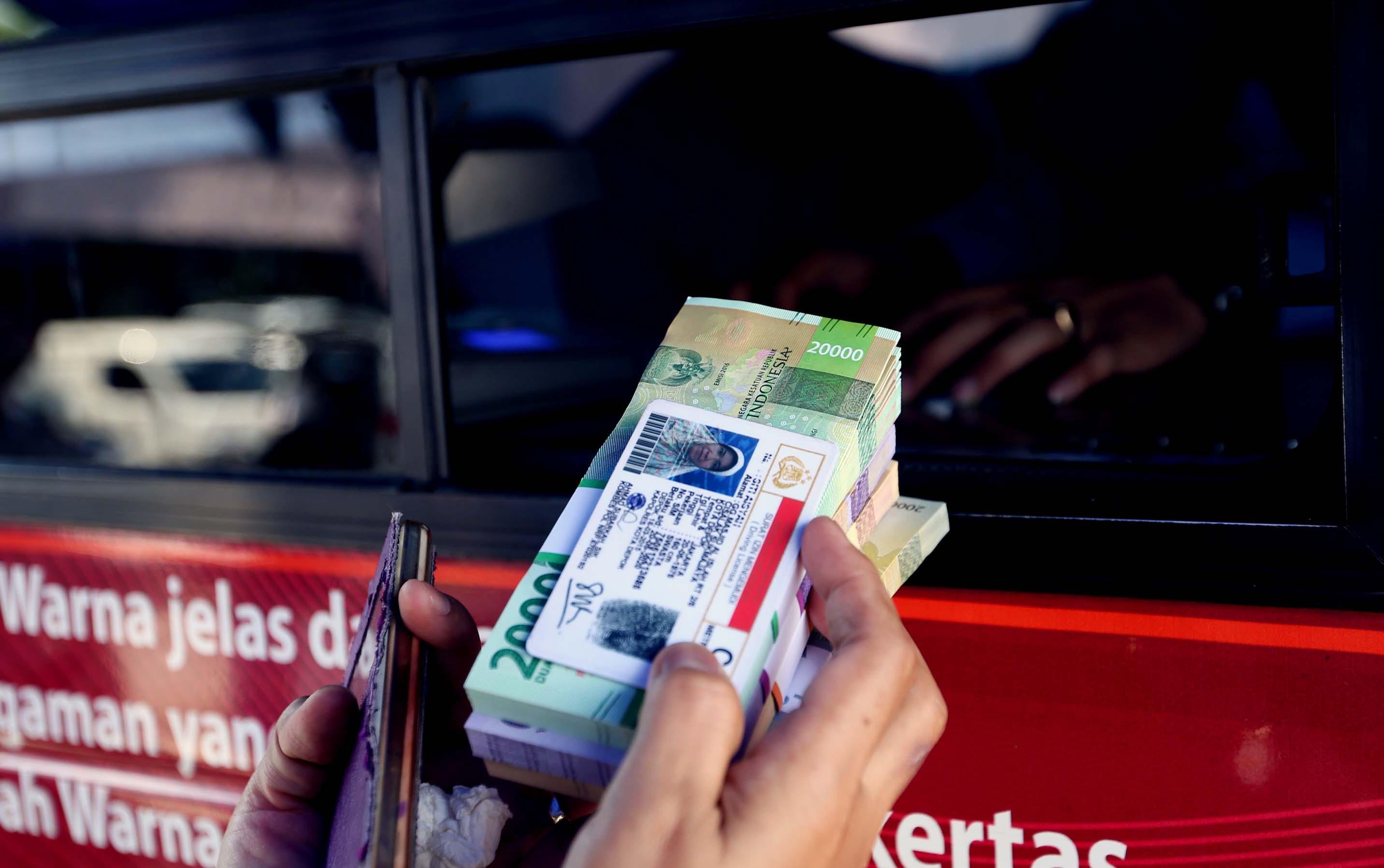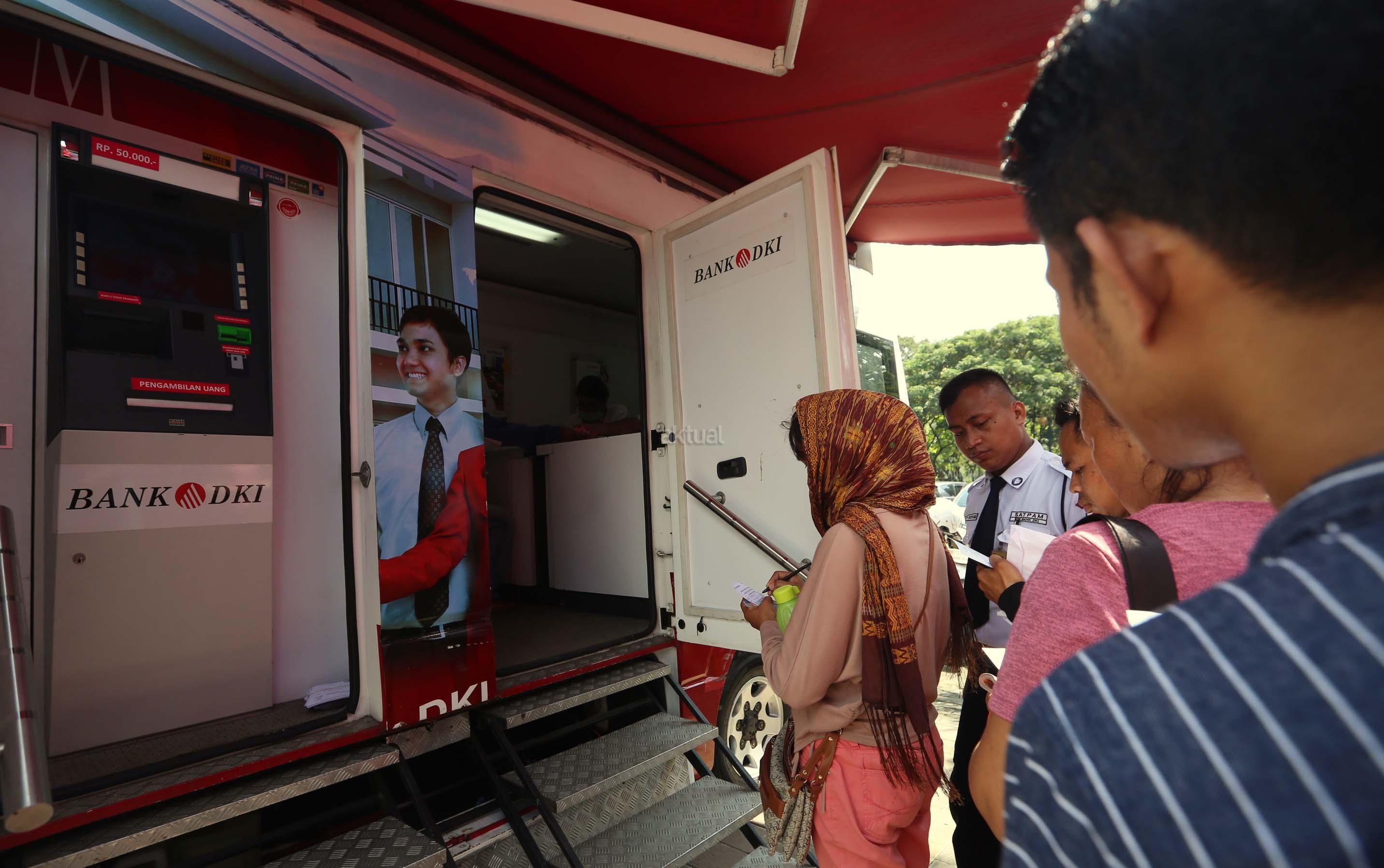 Warga menukarkan uang di lapangan parkir Irti Monas, Jakarta, Selasa (13/6 /2017). BI bersama 13 bank umum membuka gerai penukaran uang pecahan dalam rangka melayani kebutuhan masyarakat selama Ramadan dan menjelang Idul Fitri 2017 dan penukaran ini rencananya berlangsung hingga 16 Juni mendatang. AKTUAL/Munzir