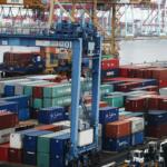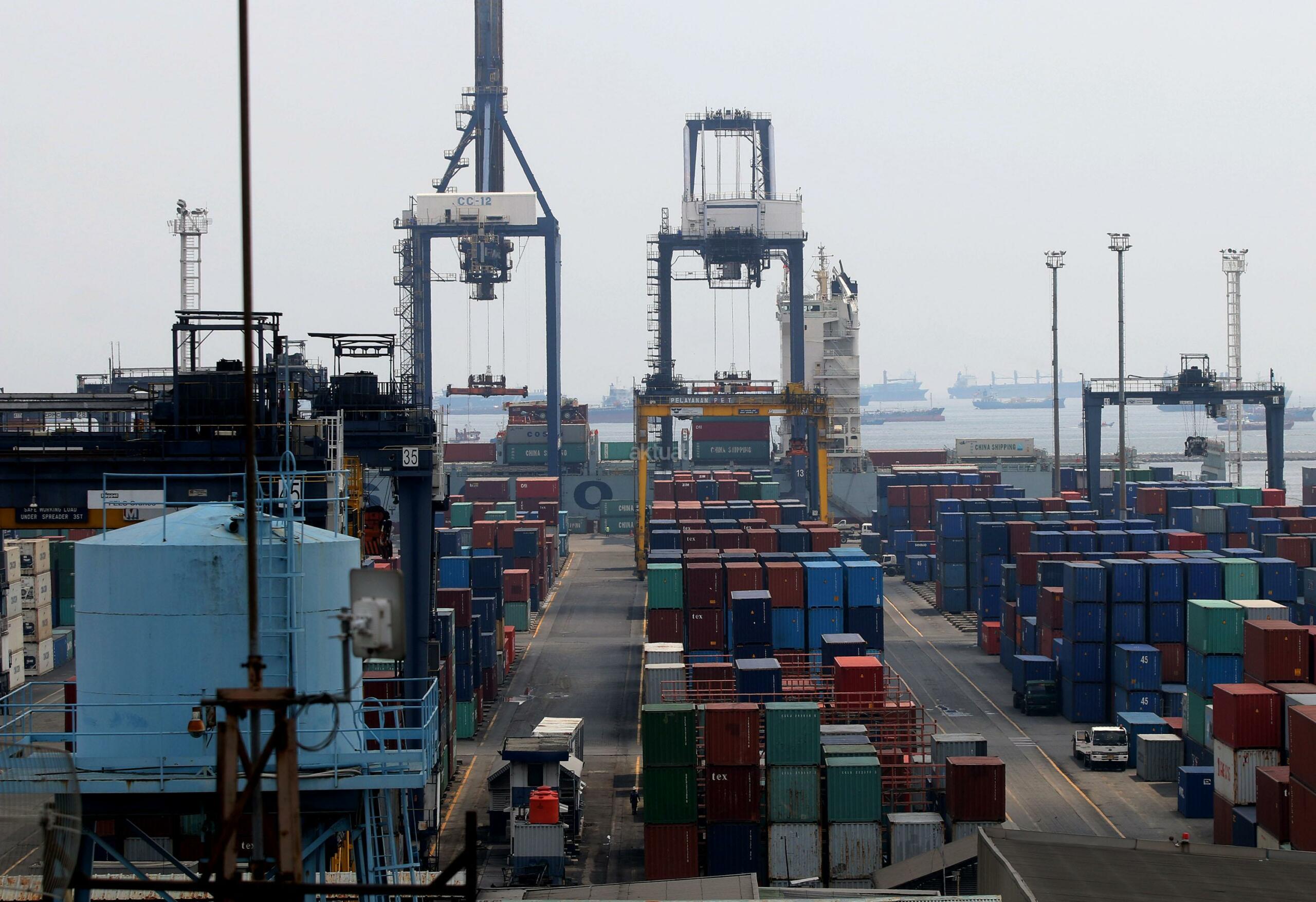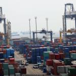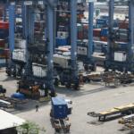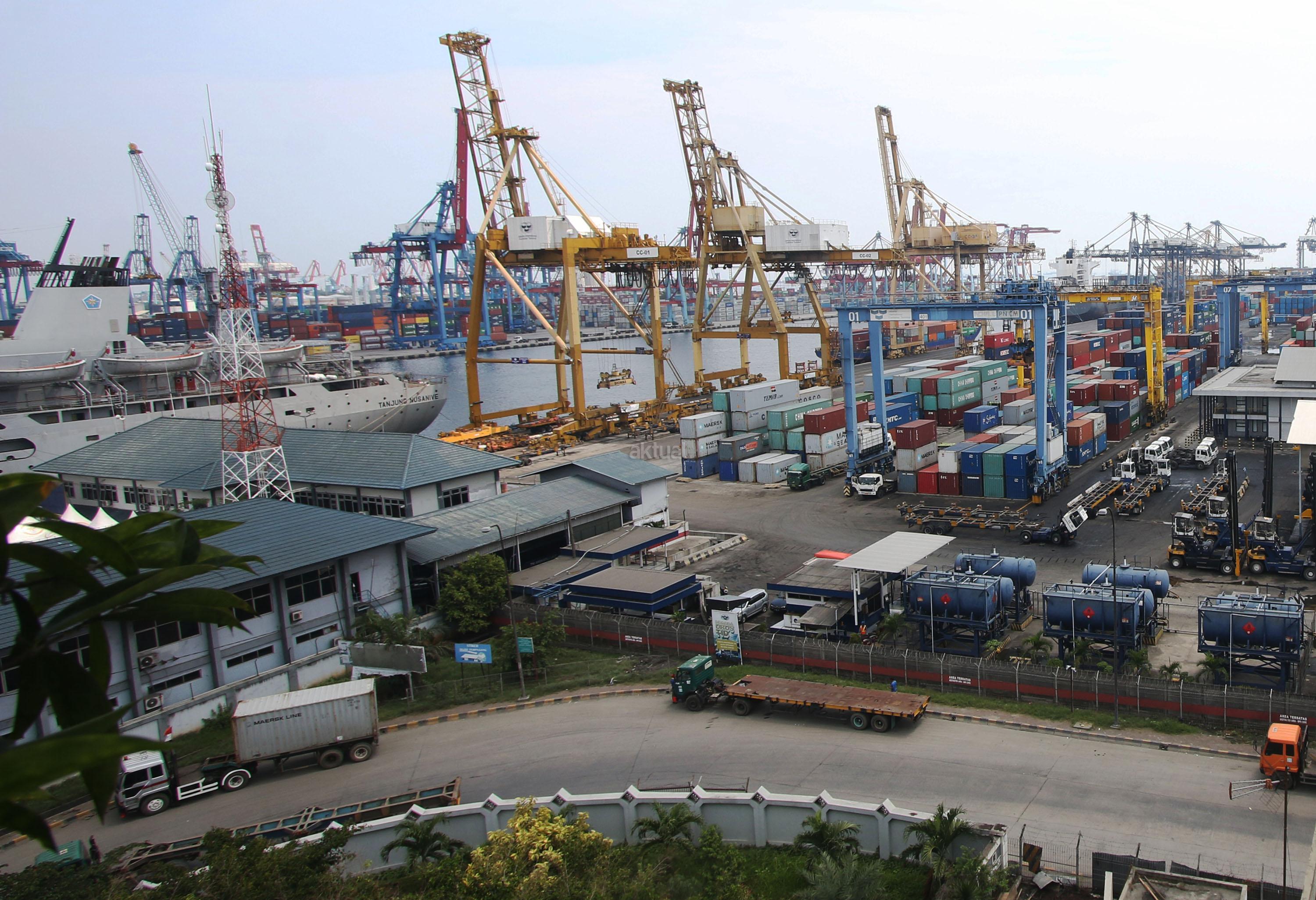 Aktivitas bongkar muat di pelabuhan peti kemas ekspor Impor Jakarta International Container Terminal (JICT) di Jakarta, Jumat (9/9). Dua pengelola terminal peti kemas ekspor impor di Pelabuhan Tanjung Priok yakni Jakarta International Container Terminal (JICT) dan TPK Koja memberlakukan biaya jasa penimbangan peti kemas ekspor pada auto gate JICT-TPK Koja sebesar Rp50.000 per boks. AKTUAL/TINO OKTAVIANO