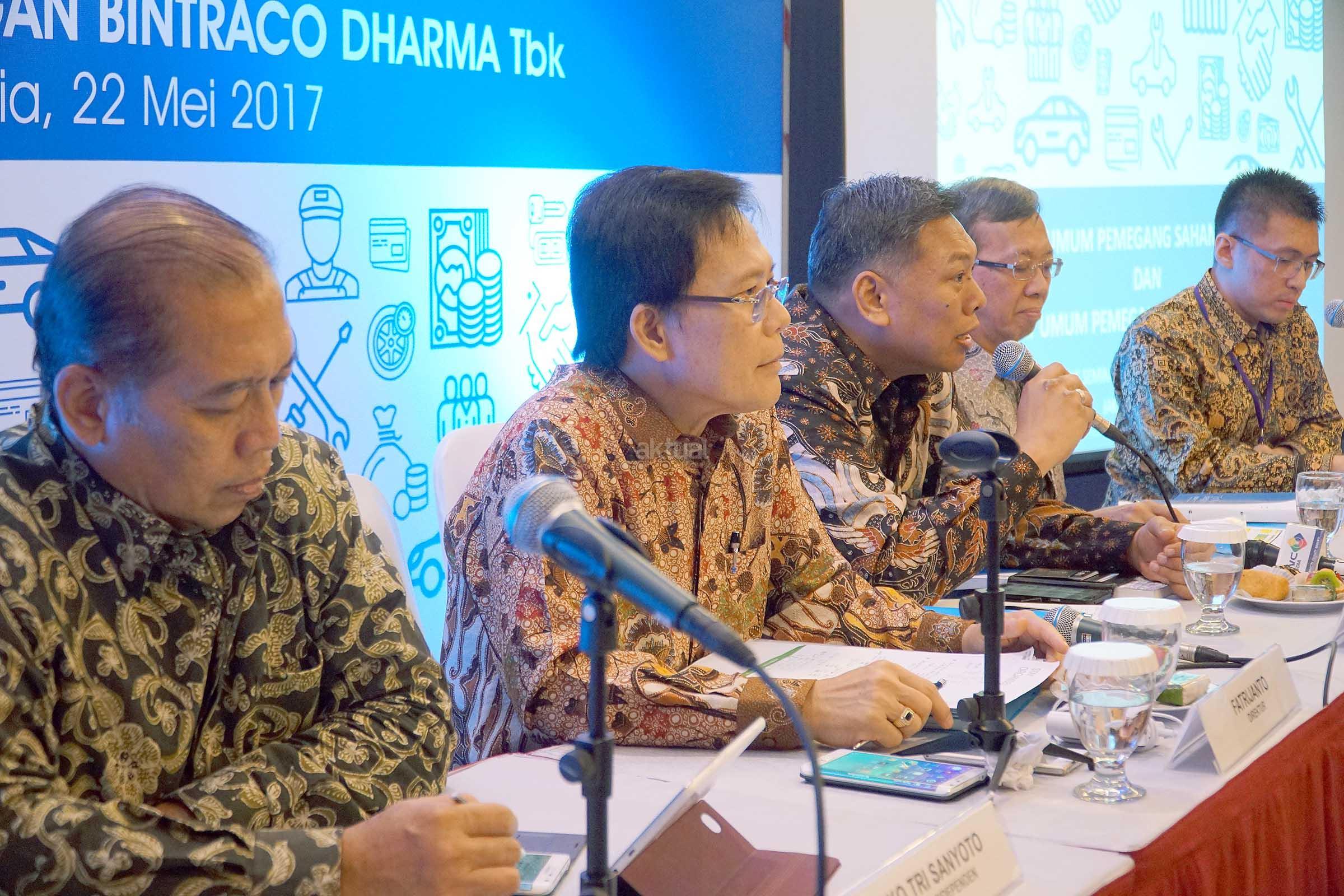 Bintraco membukukan laba bersih sebesar Rp 165 Miliar di tahun 2016 atau meningkat sebesar 52% dari Rp 108 Miliar di tahun 2015.Pendapatan bersih Bintraco tercatat Rp 6,8 triliun atau tumbuh sebesar 20% dari Rp 5,7 triliun di tahun 2015 yang terutama didorong oleh pertumbuhan unit penjualan mobil Toyota,sejalan dengan diluncurkannya model model mobil baru di penghujung tahun 2015 dan selama tahun 2016.Dalam RUPS, disetujui penggunaan laba bersih sebagai dividen tunai dengan nilai sebesar Rp 49,5 miliar atau Rp 33 per lembar saham. AKTUAL/Eko S Hilman
