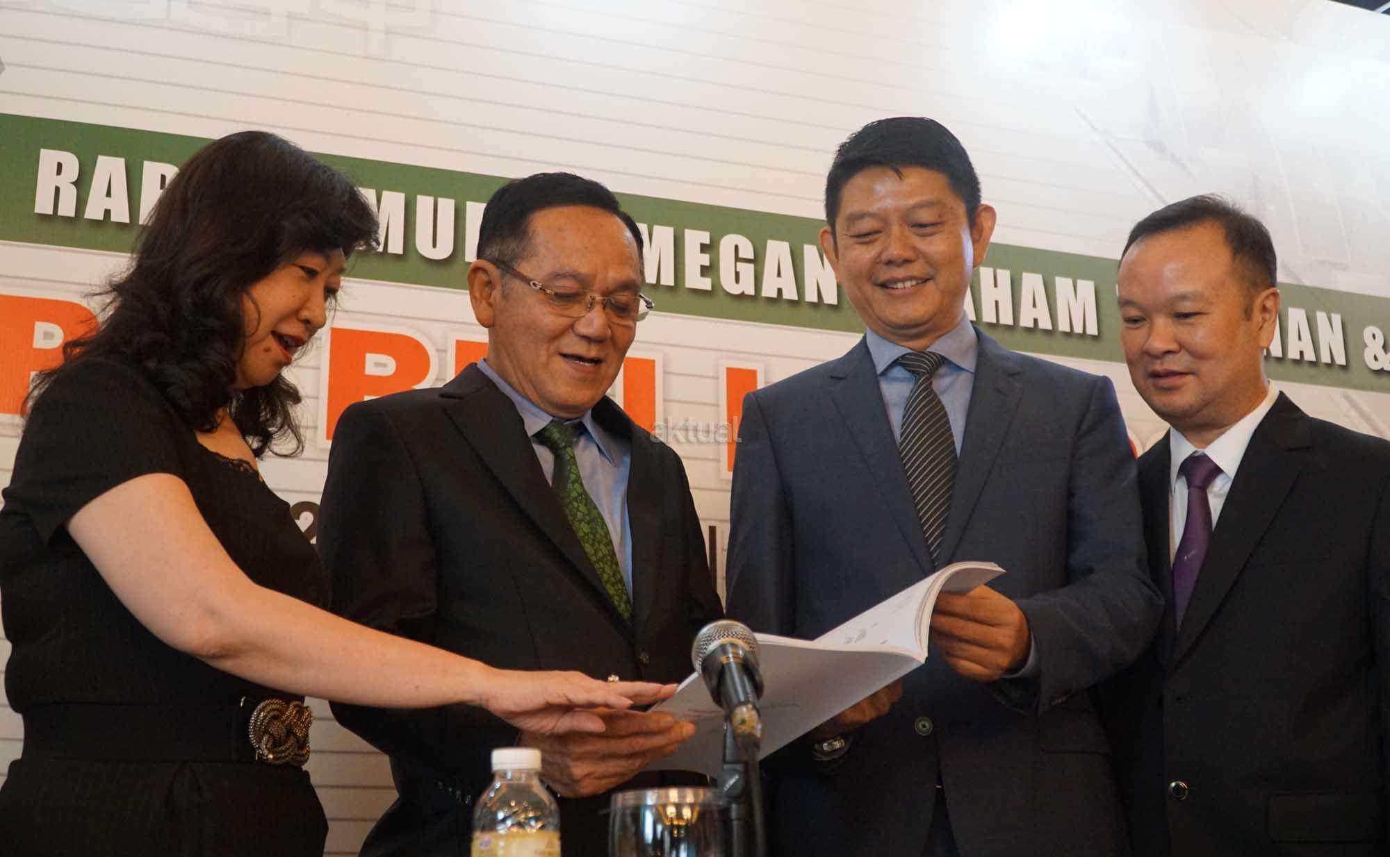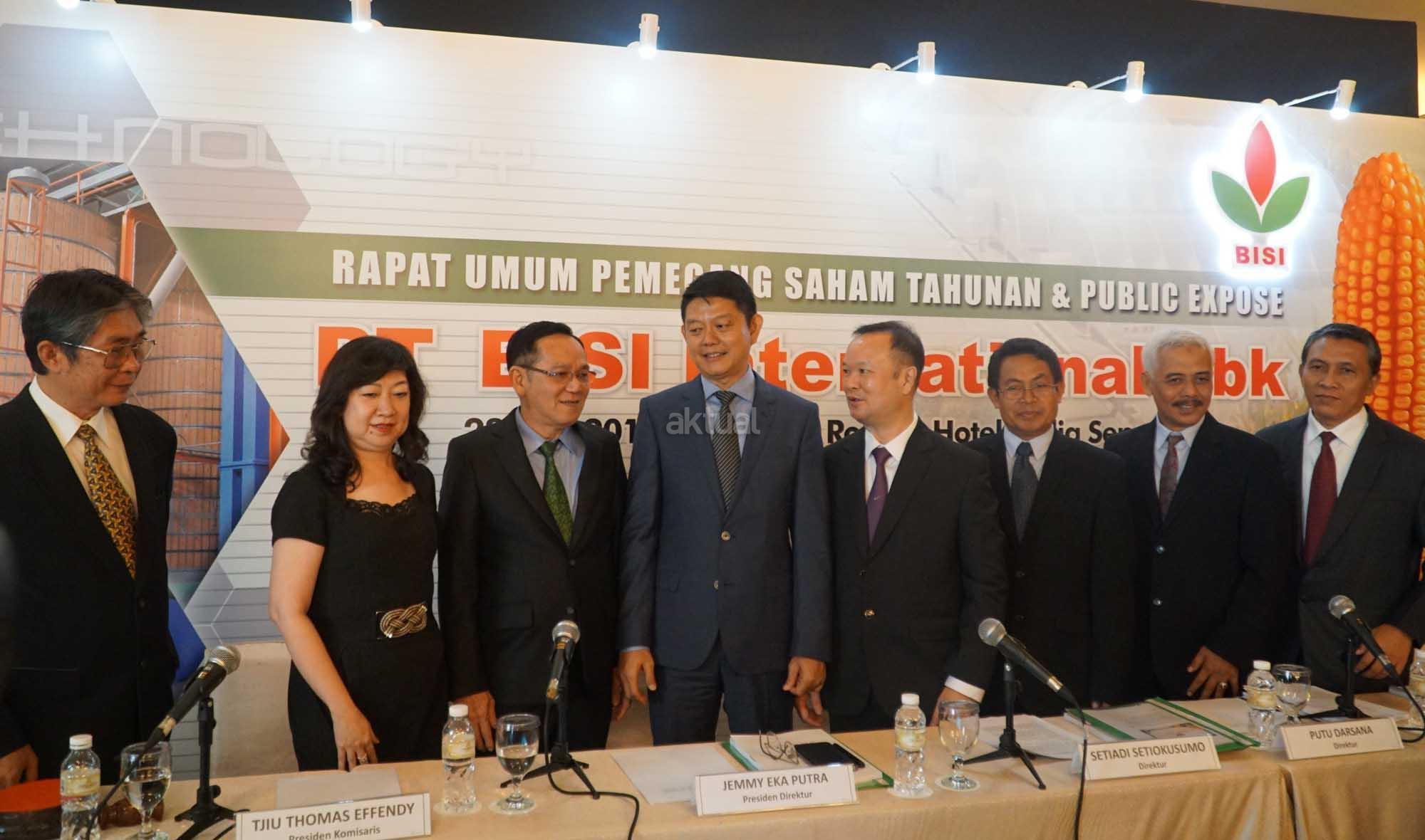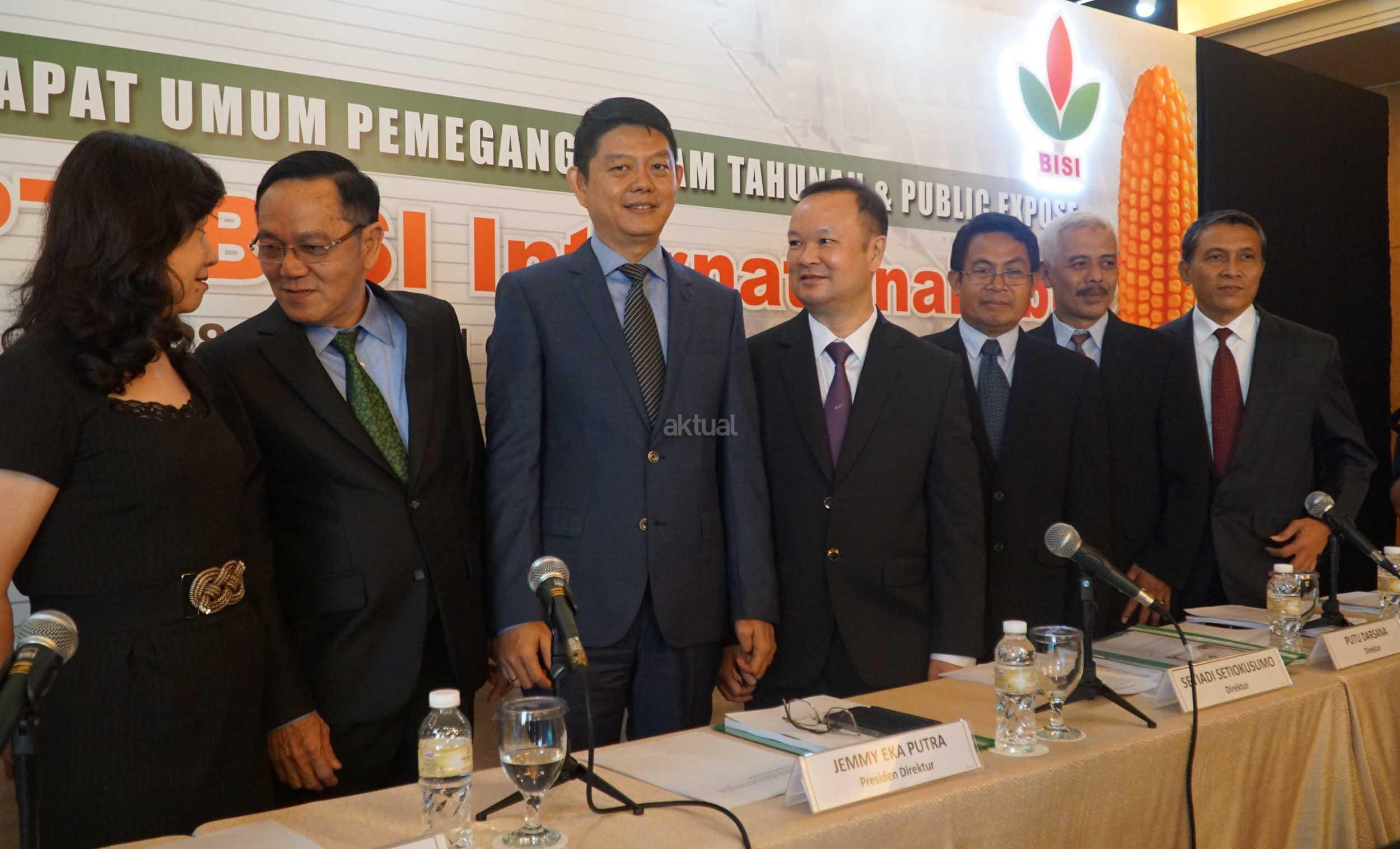 (dari kiri ke kanan) Komisaris Utama, Tjiu Thomas Effendy, Direktur Utama, Jemmy Eka Putra, Direktur, Setiadi Setiokusumo berbincang seusai Rapat Umum Pemegang Saham Tahunan di Jakarta, Senin (28/5).RUPST perusahaan yang merupakan produsen bibit hibrida terbesar di Indonesia untuk tanaman jagung, padi dan holtikura ,serta produsen pestisida dan distributor pupuk terkemuka di Indonesia tersebut memutuskan antara lain membagikan dividen tunai sebesar 74,41% dari laba bersih tahun 2017 atau sebesar Rp 100,- setiap saham atau keseluruhan sebesar Rp 300 miliar.Sementara sepanjang tahun 2017 BISI membukukan penjualan Rp 2,31 triliun , naik 24,74% dibandingkan tahun sebelumnya sebesar Rp 1,85 triliun. AKTUAL/Eko S Hilman