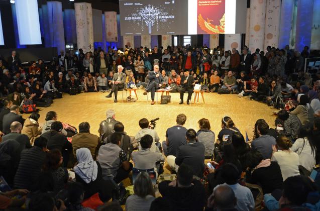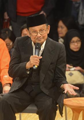 Mantan Presiden BJ Habibie menjadi narasumber dalam bedah buku karya Franz Magnis Suseno pada hari terakhir "Frankfurt Book Fair 2015", di Jerman, Minggu (18/10). Buku Franz Magnis berjudul "Neue Schwingen fur Garuda: Indonesien zwischen Tradition und Moderne" (Garuda Rising - Contemplating Modern Indonesia). ANTARA FOTO/Fanny Octavianus/ama/15.