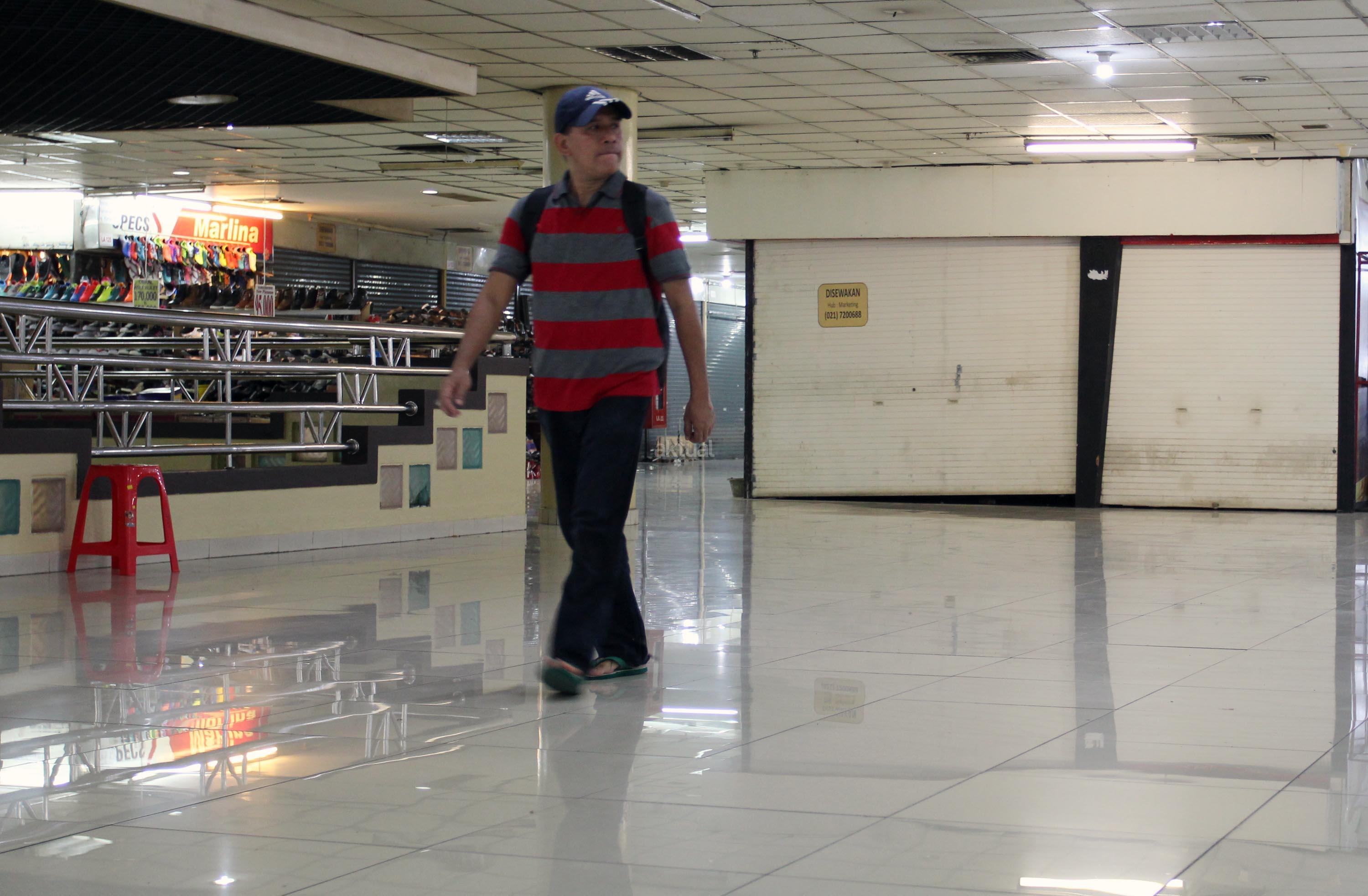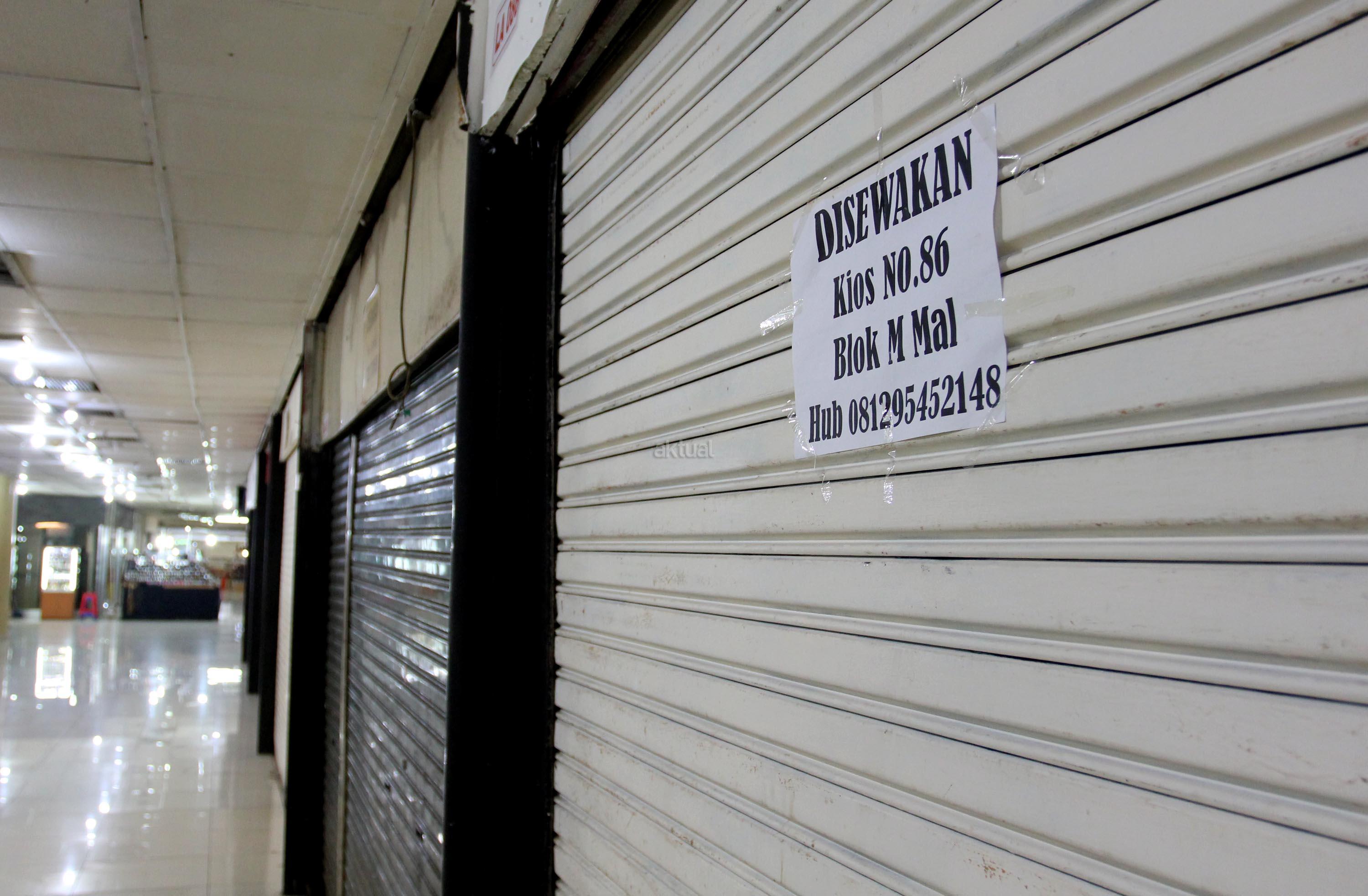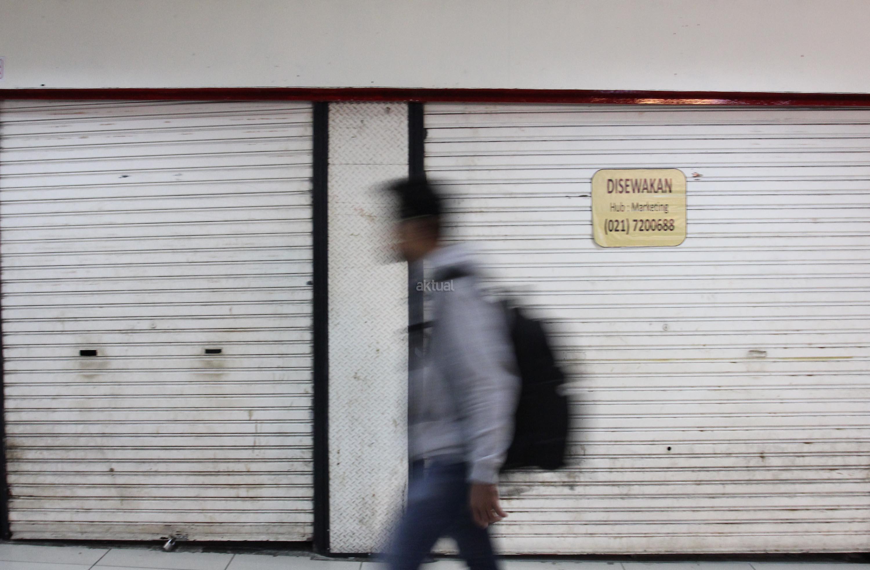 Seorang pengunjung melintas disalah satu toko yang tutup di kawasan Blok M Mal, Jakarta Selatan, Senin (24/7/2017). Banyaknya pusat perbelanjaan di Jakarta dan maraknya penjualan secara online, membuat Blok M Mal sepi. AKTUAL/Munzir