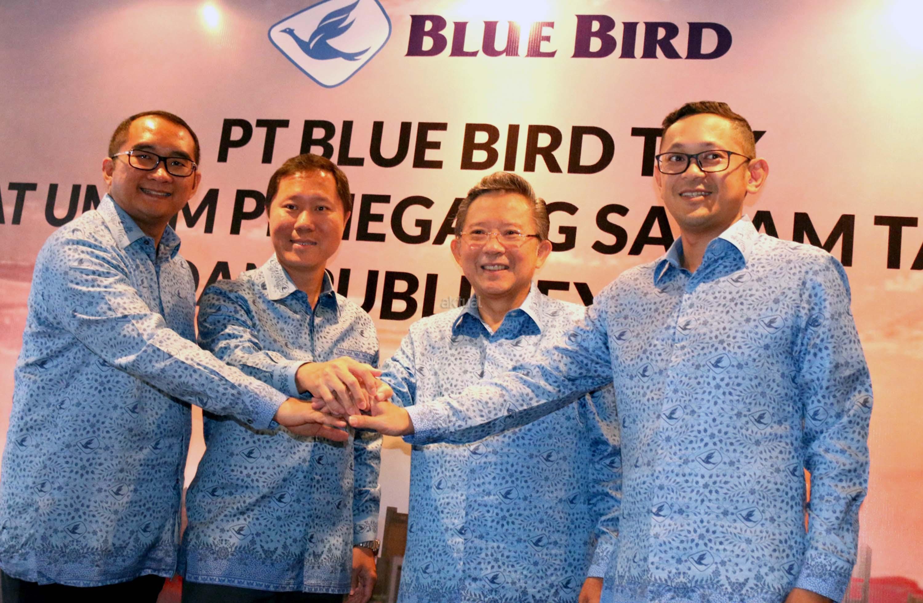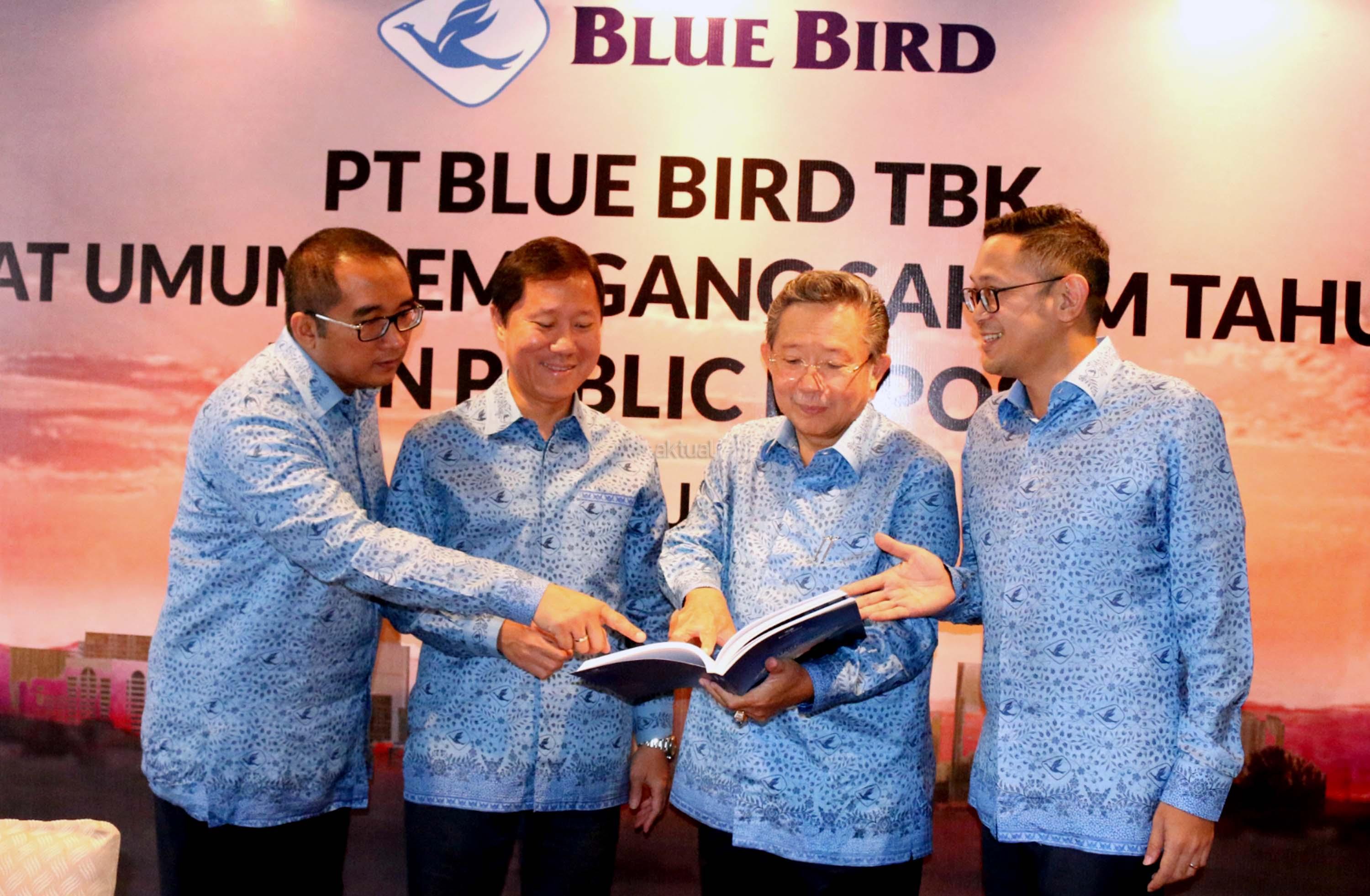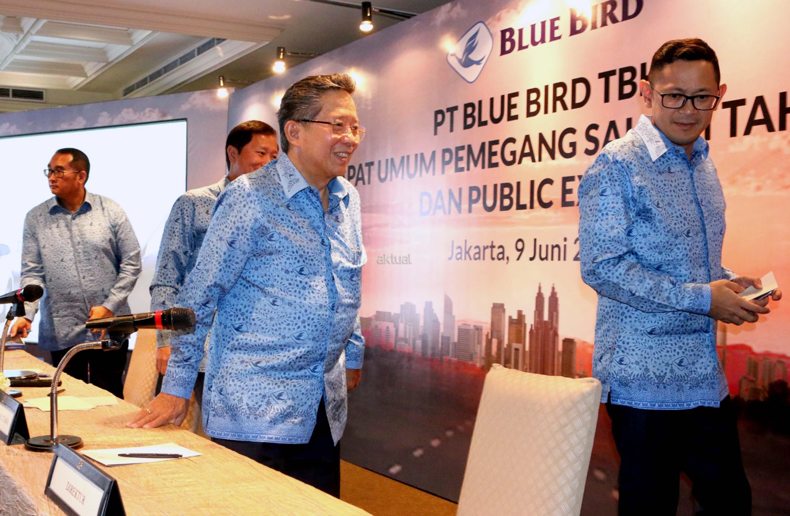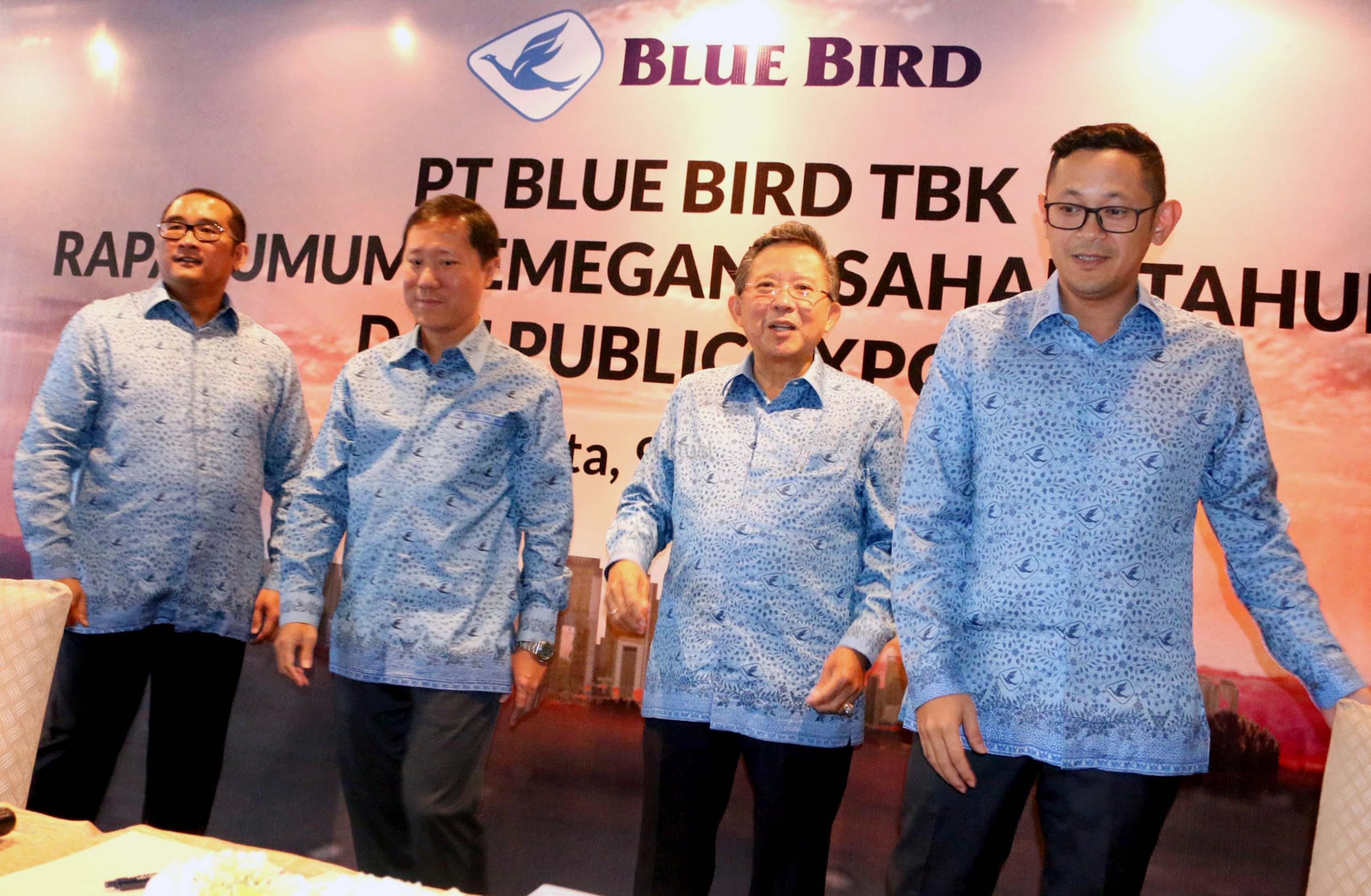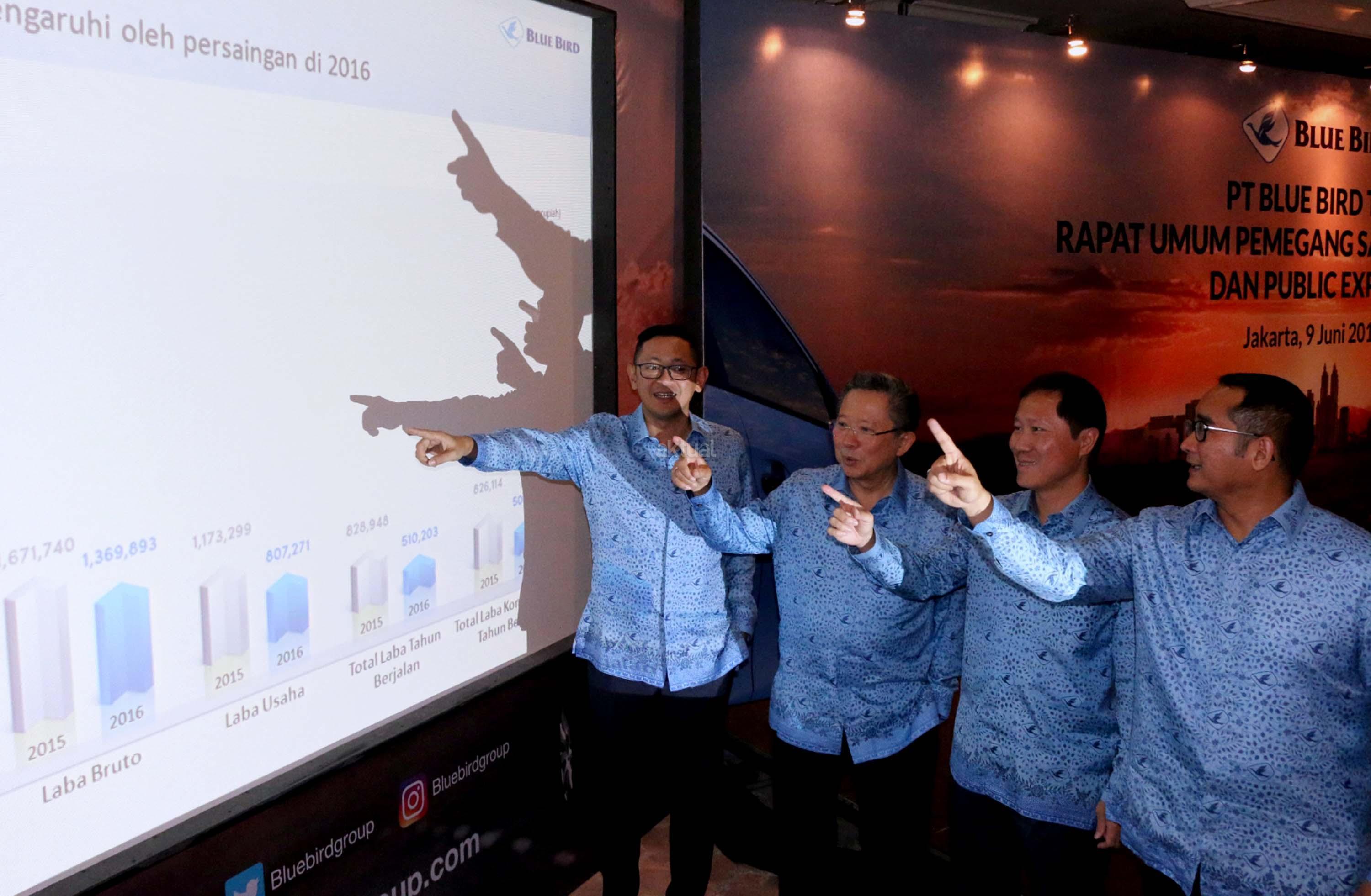 Kiri-kanan ; Direktur Independen Fransetya Hutabarat, Direktur Sigit Priawan Djokosoetono, Direktur Utama Purnomo Prawiro dan Direktur Adrianto Djokosoetono berbincang pada Public Expose 2017 dan RUPST PT Blue Bird Tbk di Jakarta. Jumat (9/6/2017). Salah satu keputusan dalam rapat adalah pembagian dividen sebesar Rp 152,6 milyar atau setara dengan Rp 61 per lembar saham. Pemegang saham PT Blue Bird Tbk (BIRD) menyetujui pembagian dividen sebesar Rp152,6 miliar. Besaran dividen tersebut setara dengan 30,09% dari laba bersih tahun 2016 sebesar Rp507,28 miliar, lebih besar dibandingkan dividen pay out ratio tahun lalu sebesar 20%. AKTUAL/Munzir